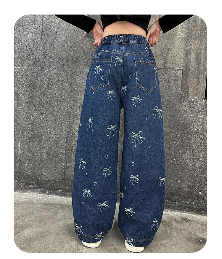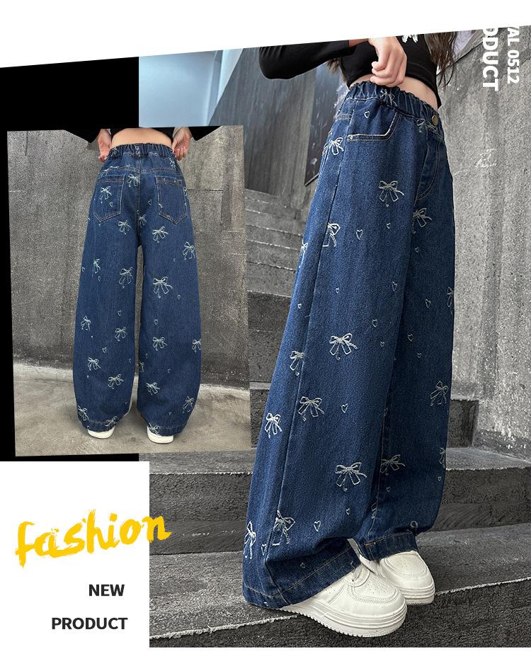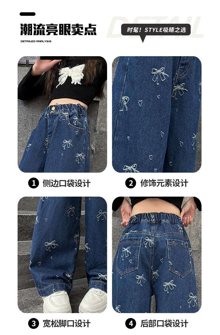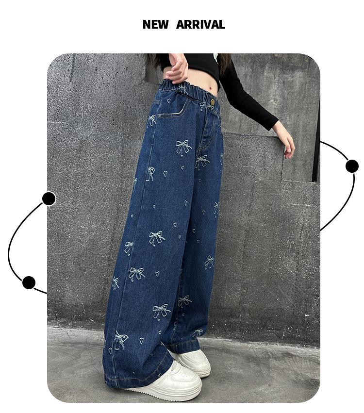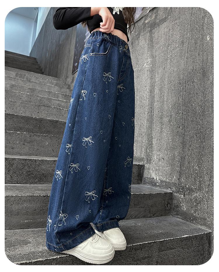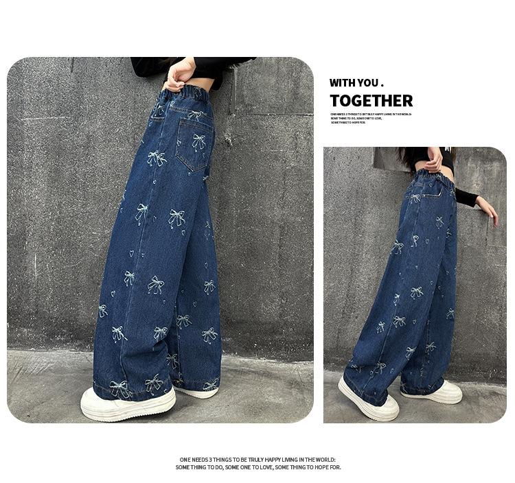 Pantalones vaqueros de otoño para niñas 2024, nuevos pantalones de pierna recta con estilo a la moda para niñas, pantalones de primavera y otoño para niños.