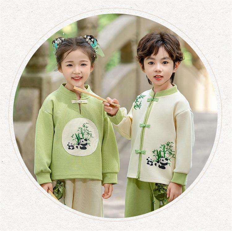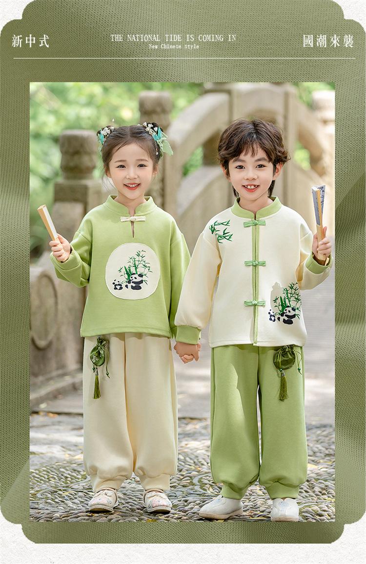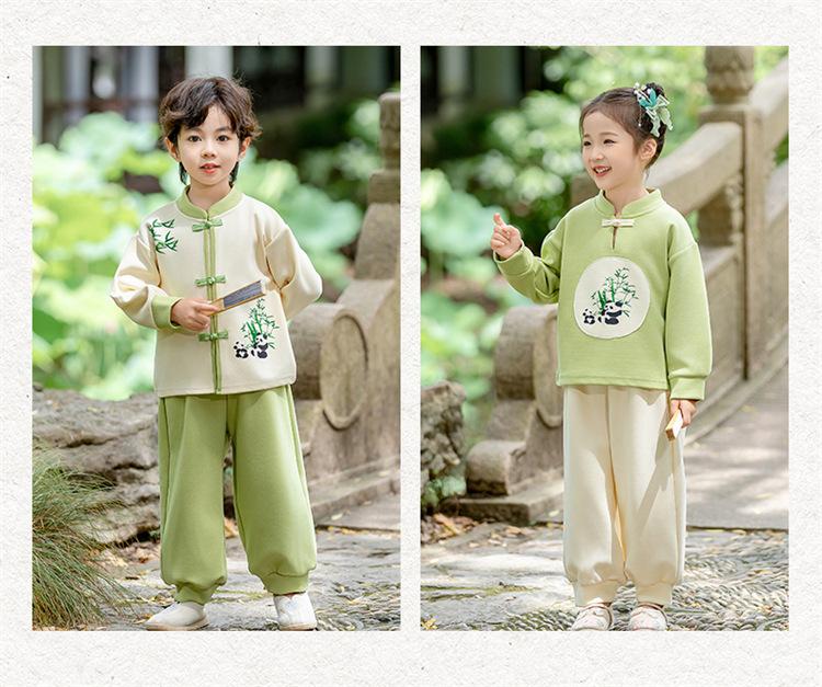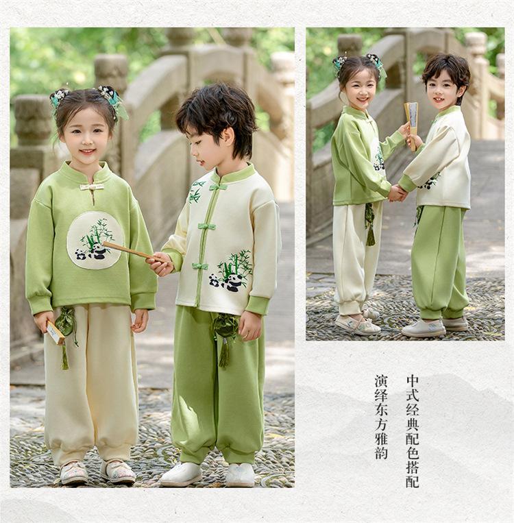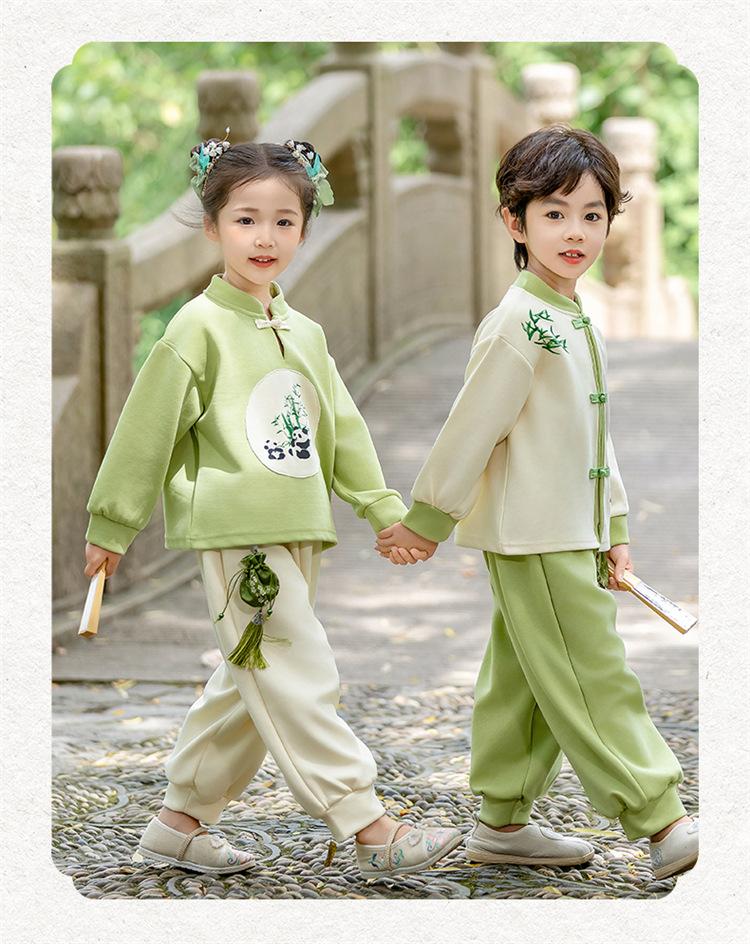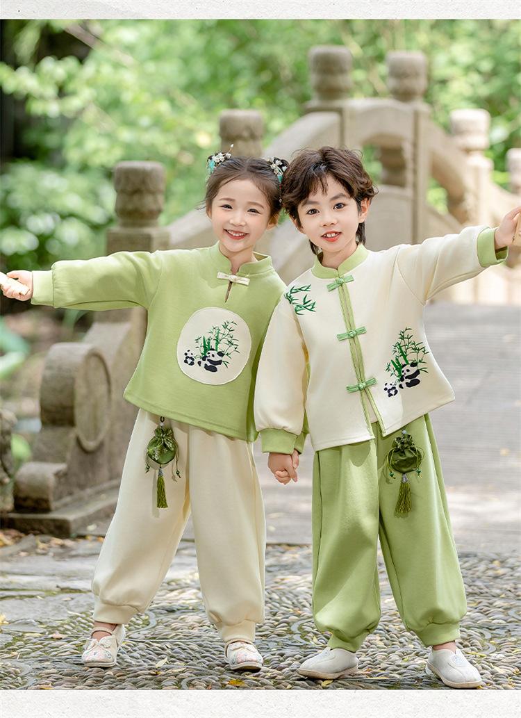 Jardín de Niños Primavera y Otoño Estilo Nacional Estilo Nuevo Traje Hanfu Chino de Bambú Verde Temperamento Elegante de Estudiantes de Primaria Ropa de Actuación Traje Tang Moda