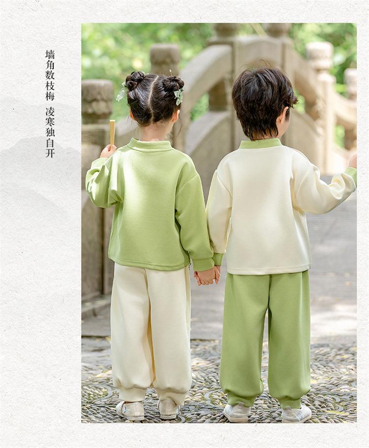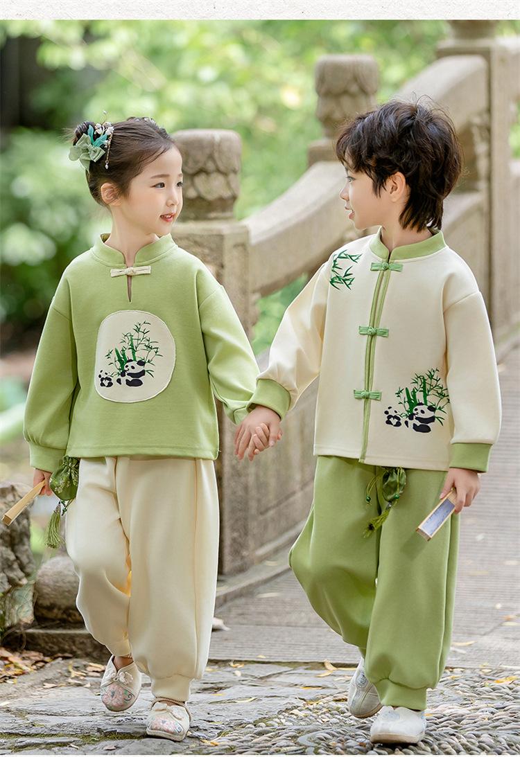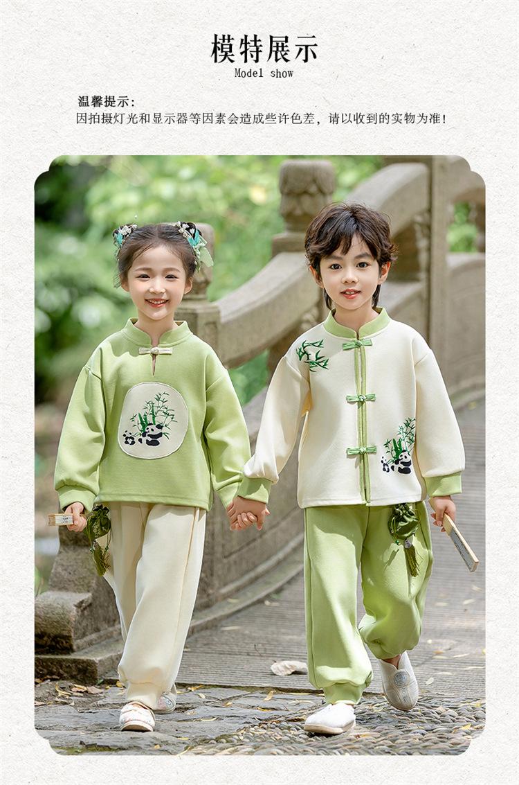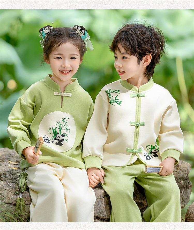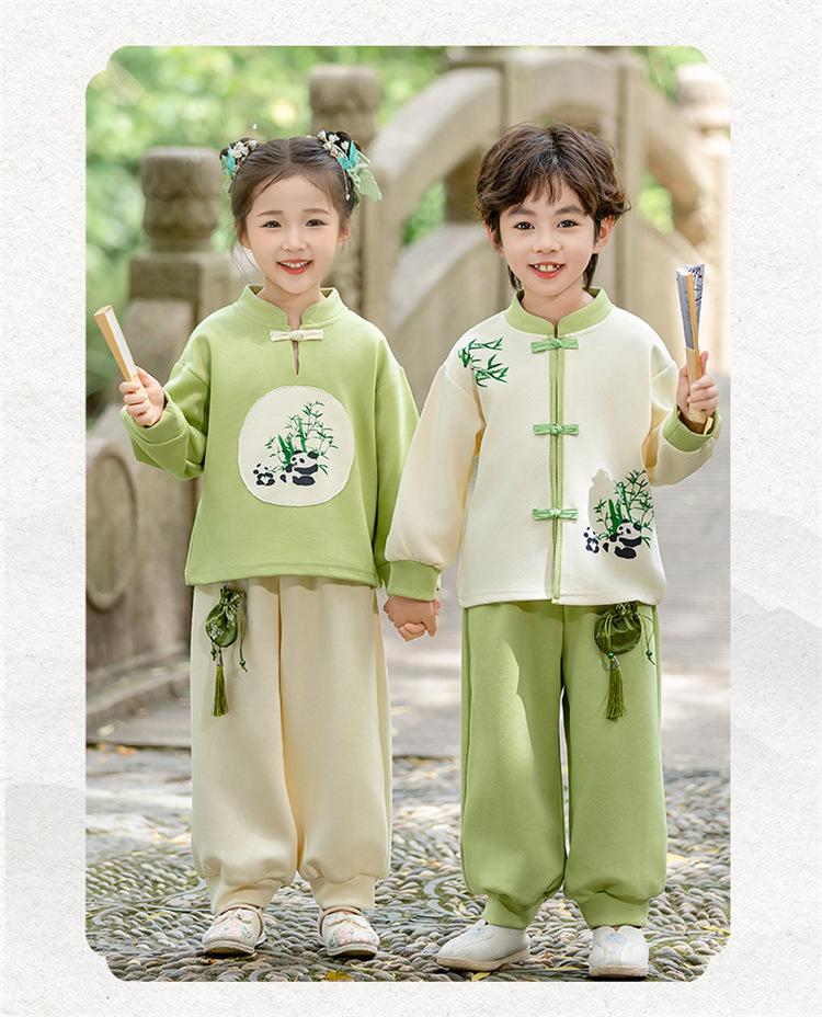 Jardín de Niños Primavera y Otoño Estilo Nacional Estilo Nuevo Traje Hanfu Chino de Bambú Verde Temperamento Elegante de Estudiantes de Primaria Ropa de Actuación Traje Tang Moda