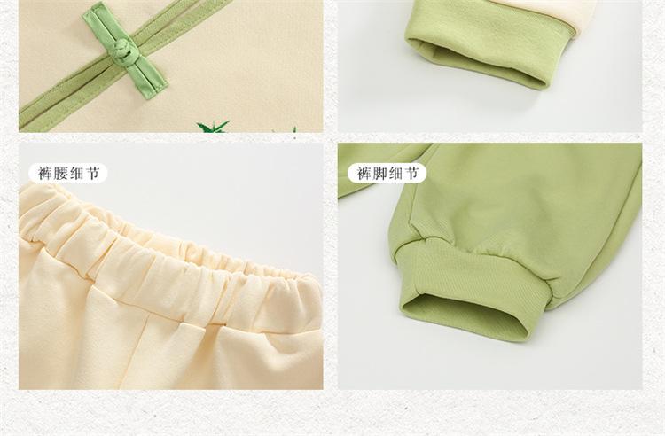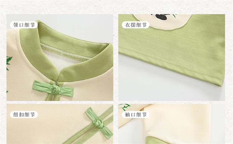 Boys' long-sleeved green bamboo suit, Long-sleeved green bamboo suit for girls