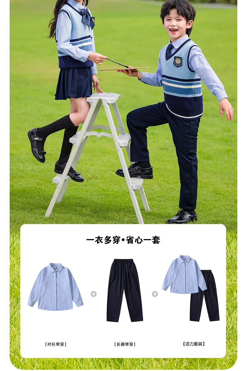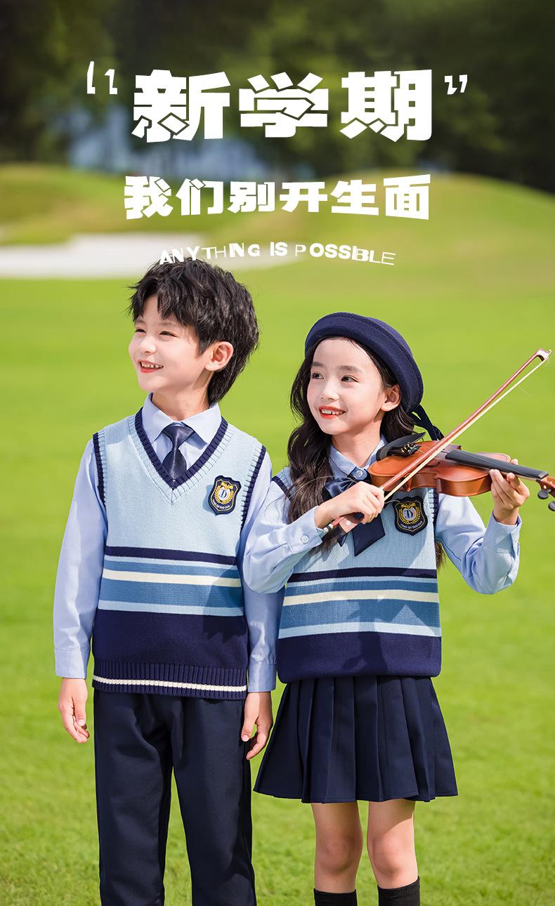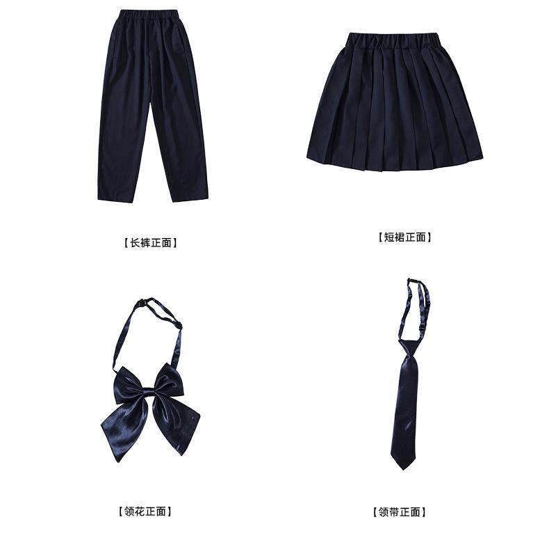 Boys (sweater + white shirt + trousers + tie), Girls (sweater + white shirt + skirt + bow tie)