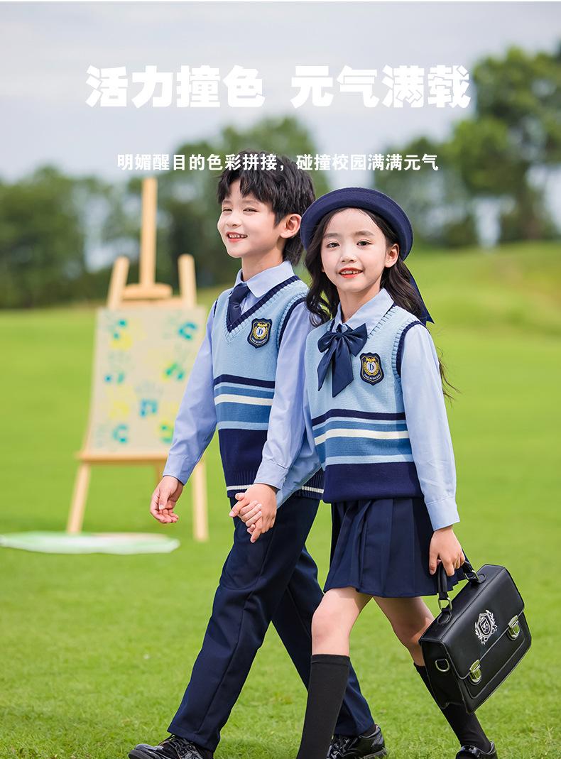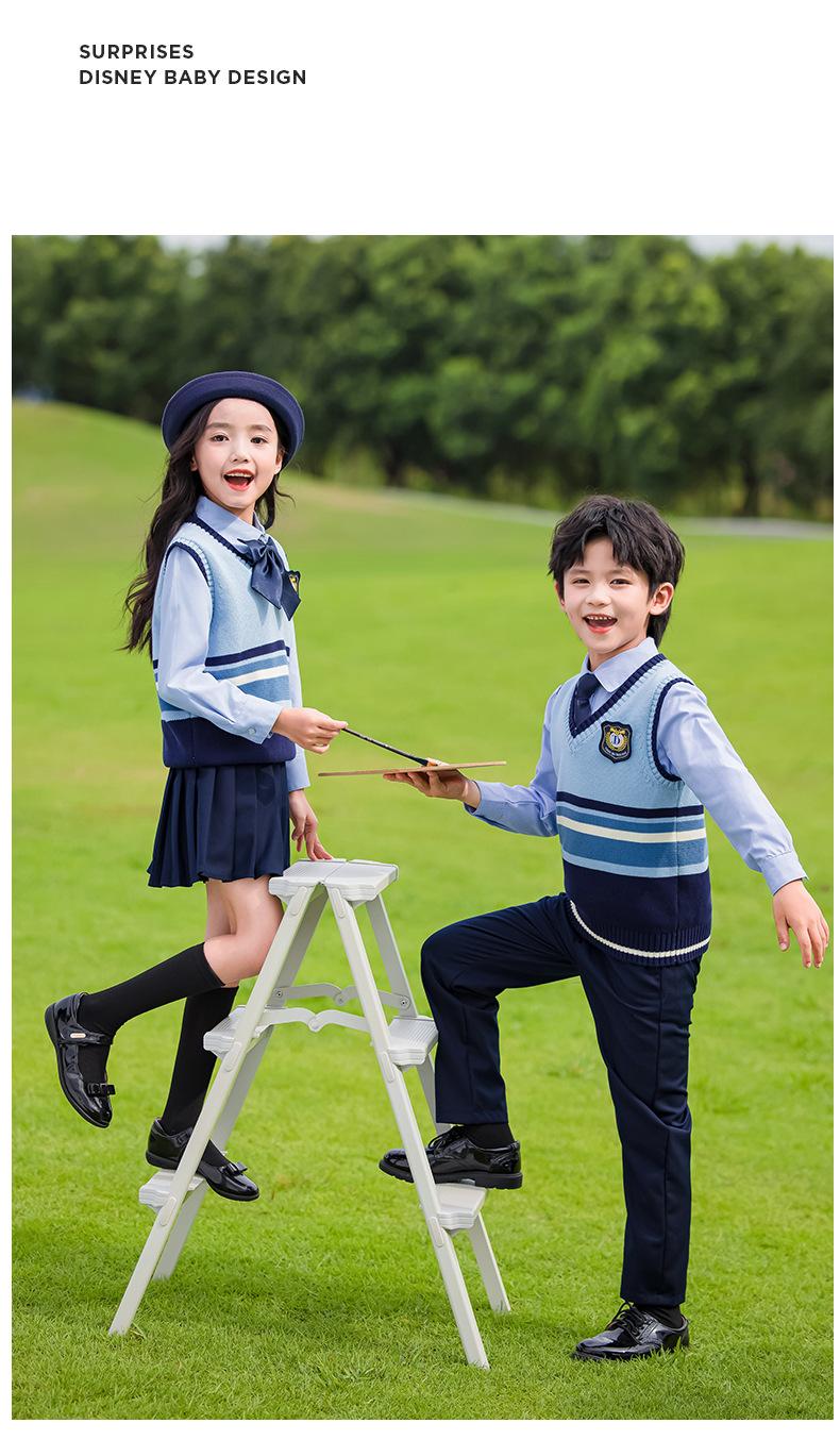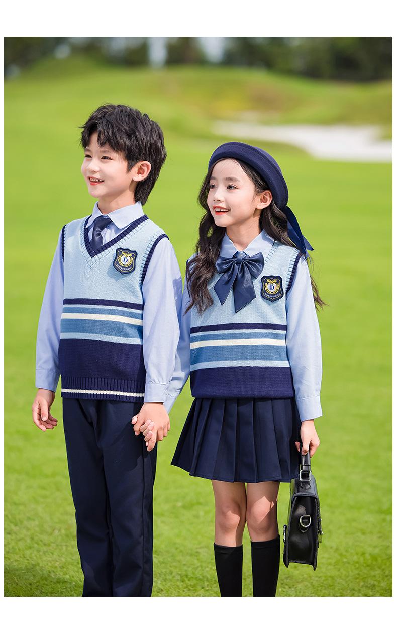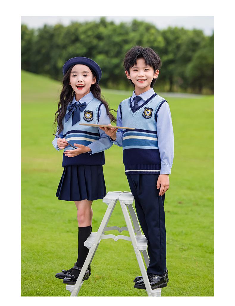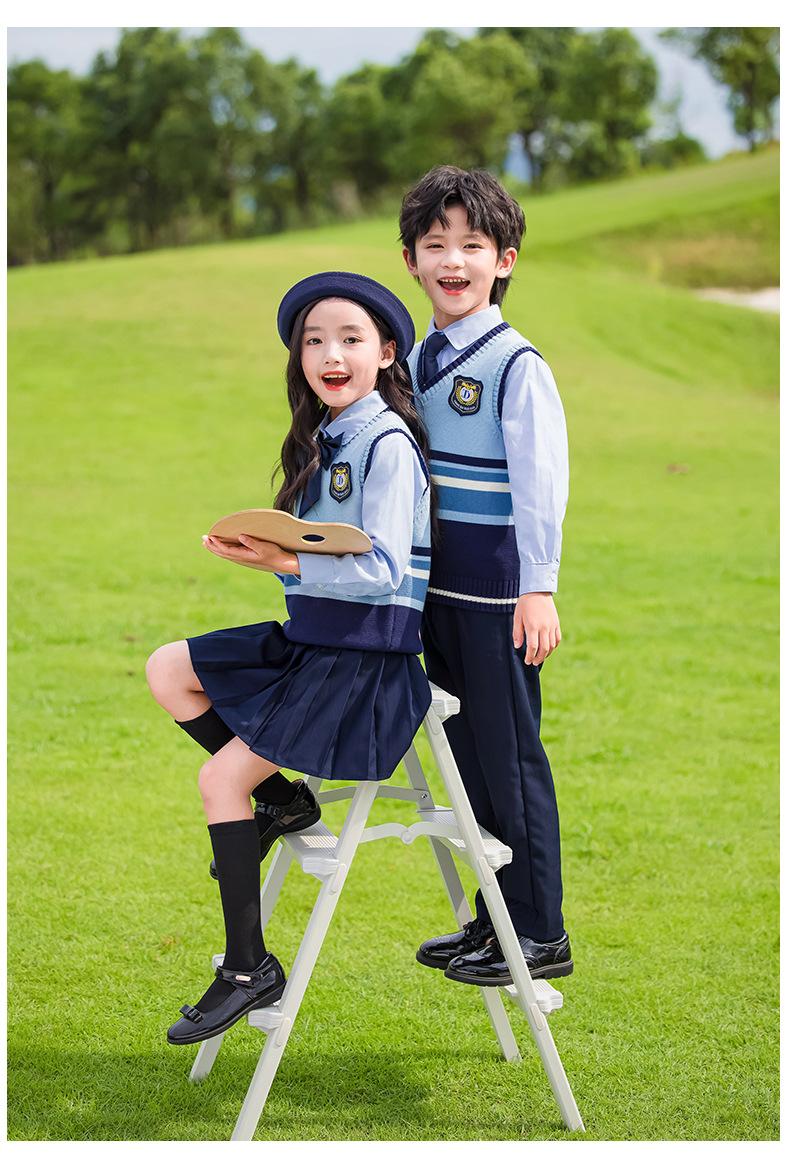 Suéter estilo universitario de otoño e invierno, uniforme escolar, uniforme de jardín de infantes, uniforme de escuela primaria de estilo inglés para niños, uniforme escolar aristocrático, conjunto de tres piezas
