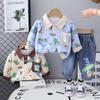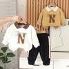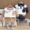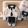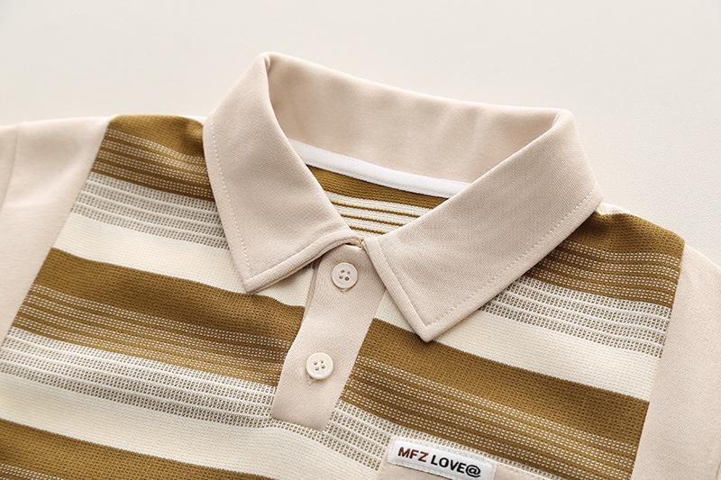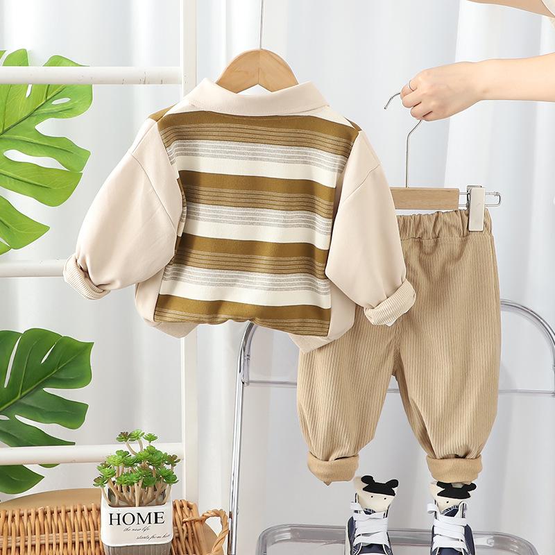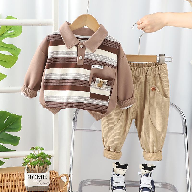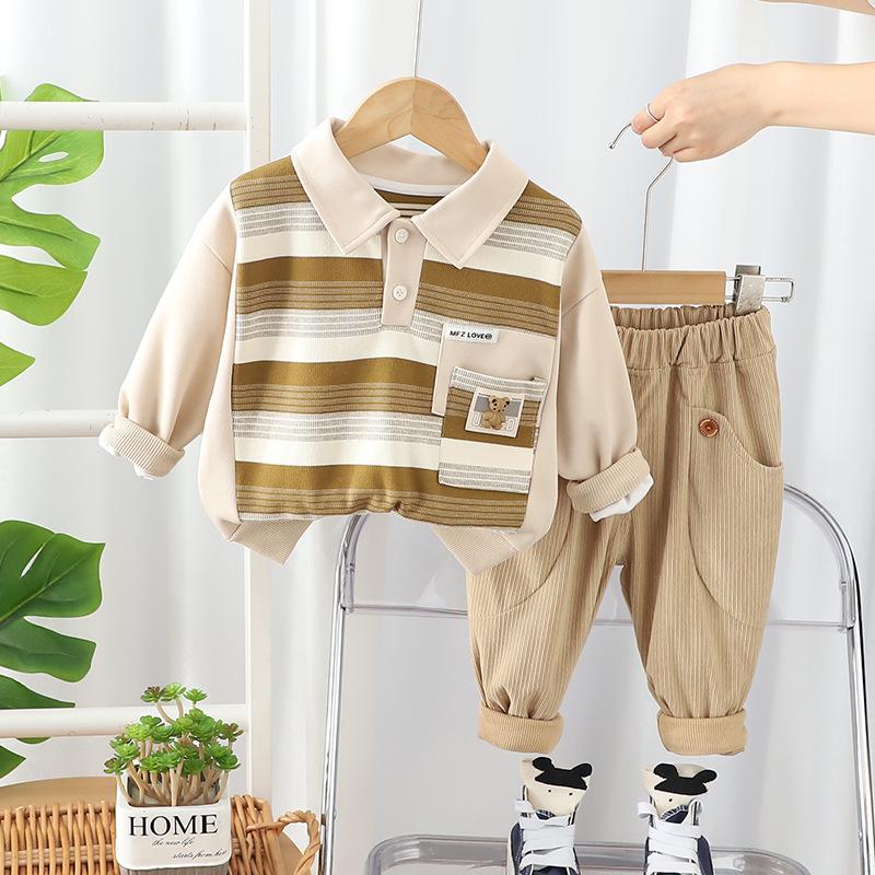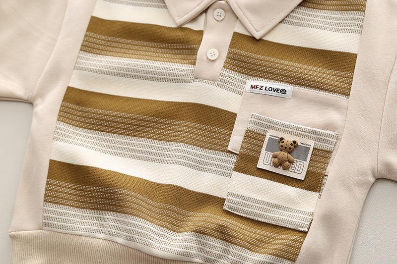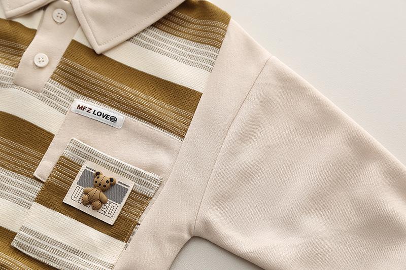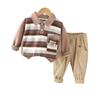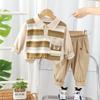 Traje de manga larga con solapa para niños de primavera y otoño 2024, nuevo conjunto de dos piezas de camisa polo a rayas de estilo coreano para bebé niño