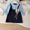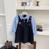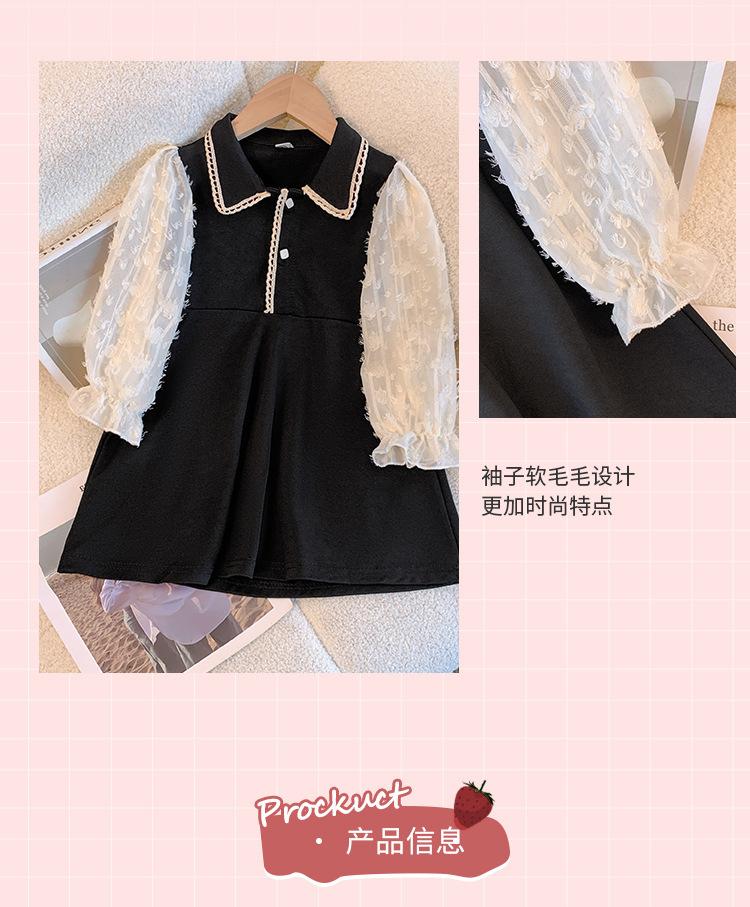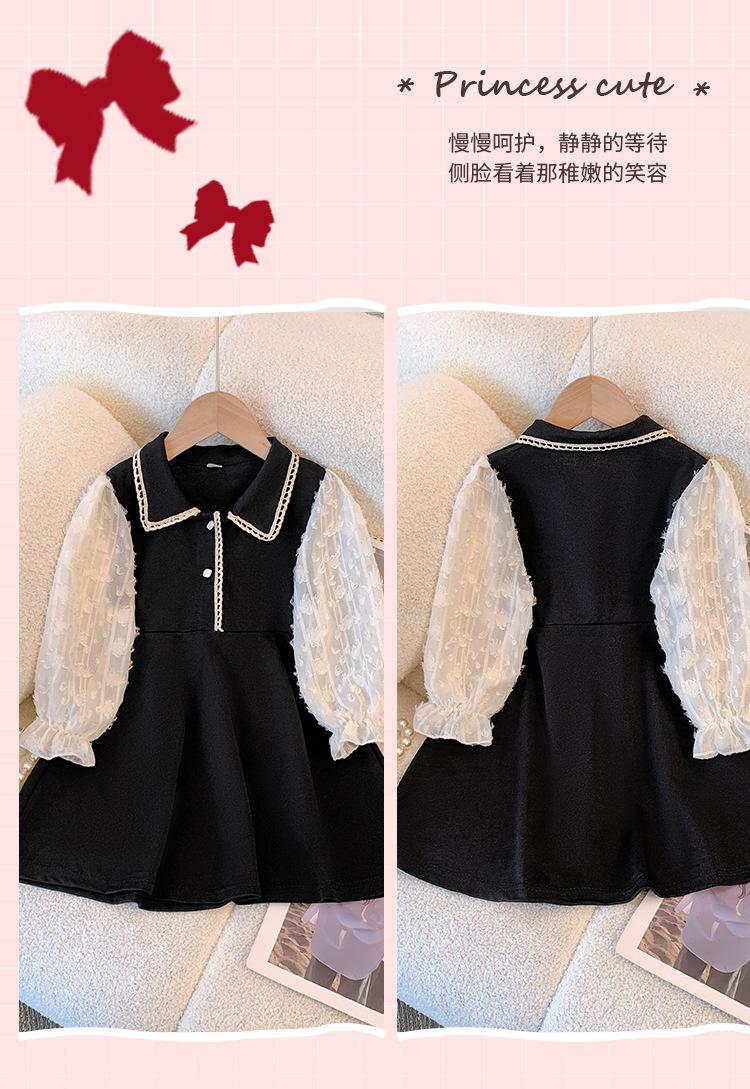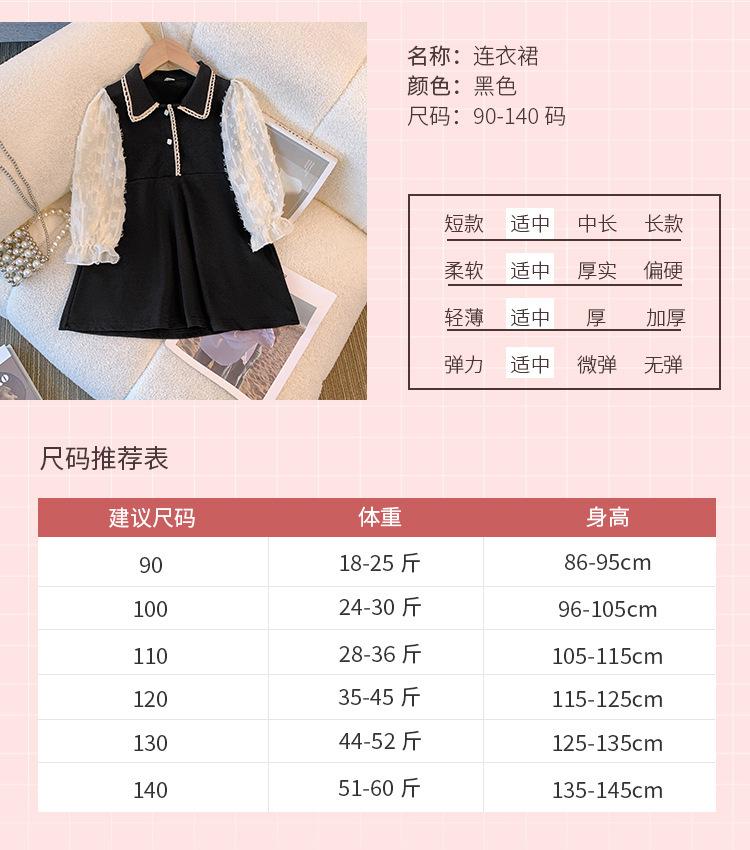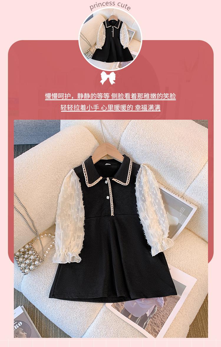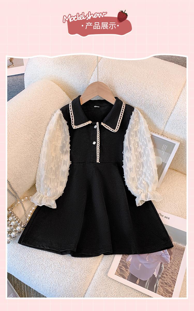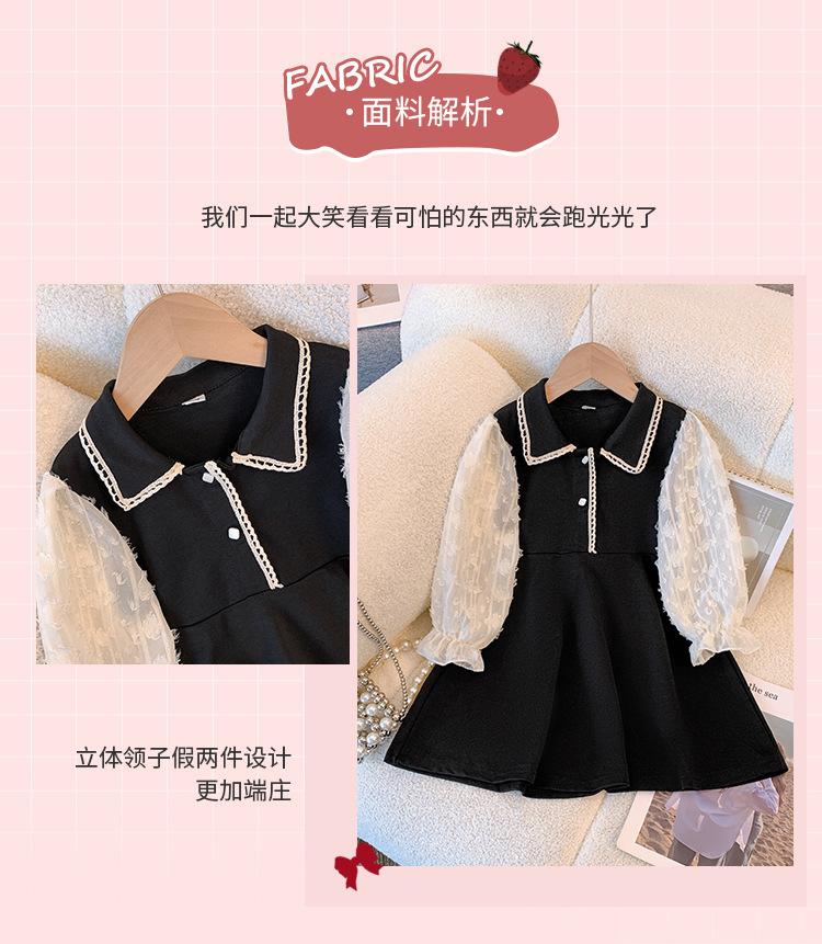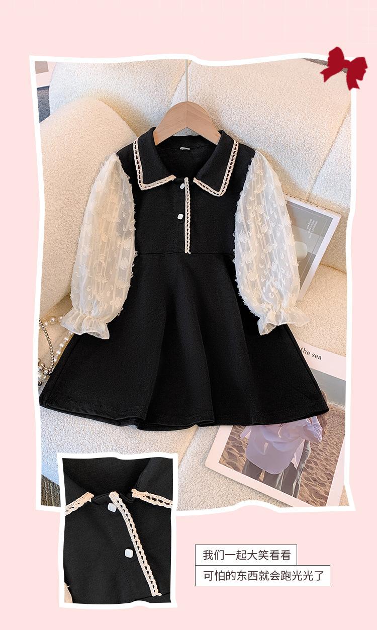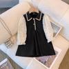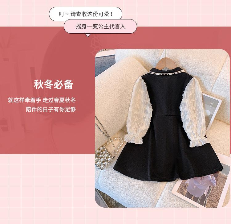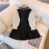 Vestido de dos piezas estilo Chanel para niña, vestido de otoño para mujer, estilo coreano, de manga larga, negro, de moda, de princesa para niña.