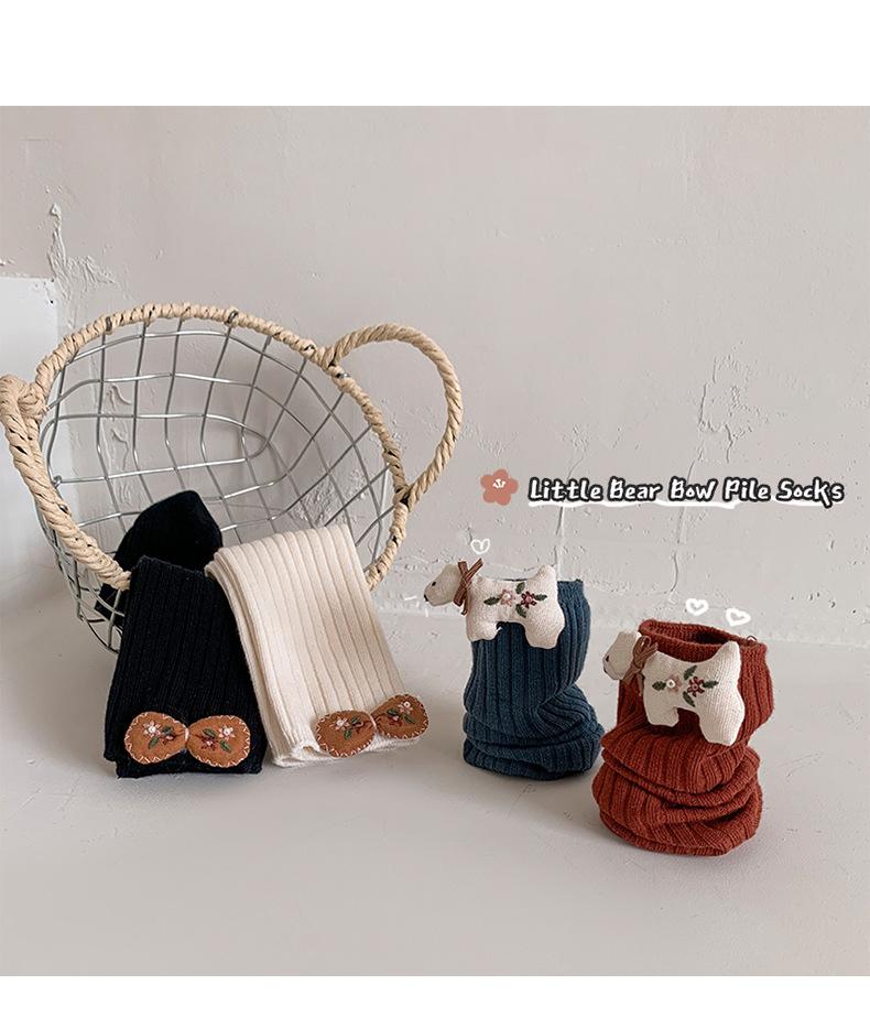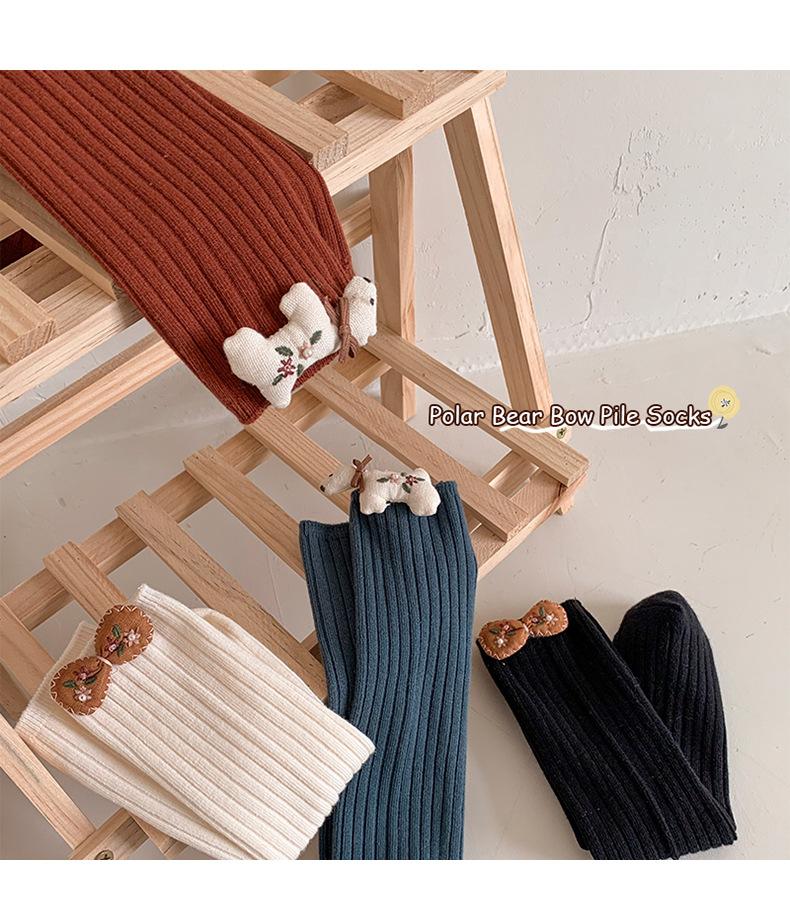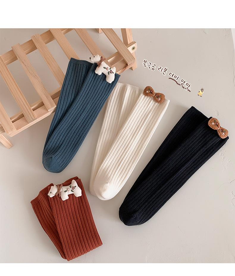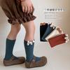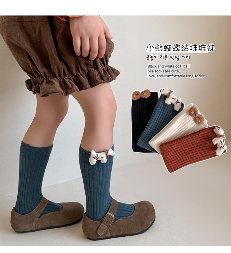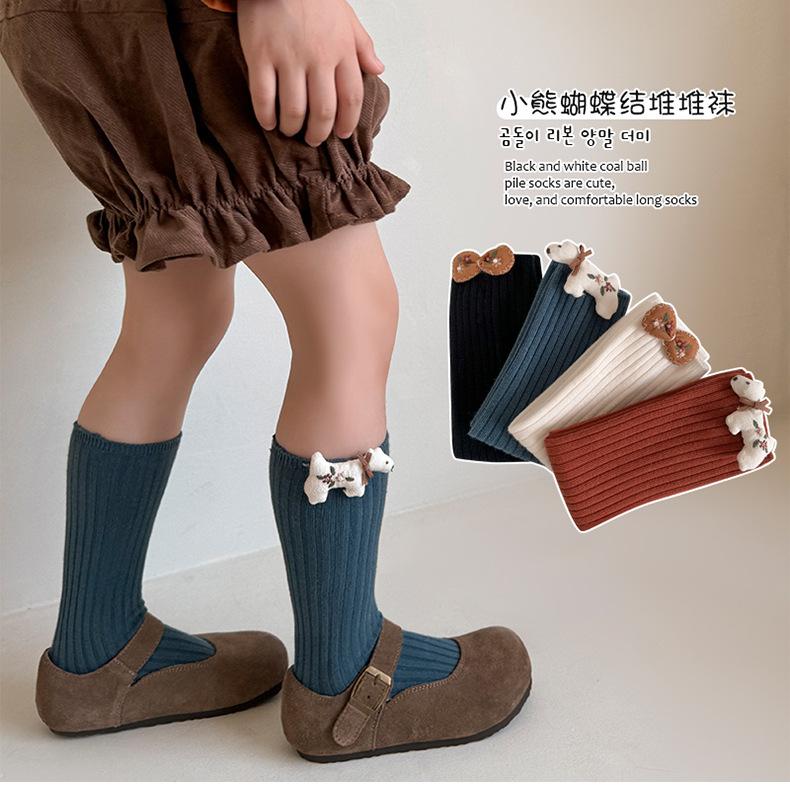 Calcetines apilados para niñas, calcetines lindos con lazo de cachorro, calcetines coreanos para niños, calcetines coreanos sólidos hasta la pantorrilla al por mayor