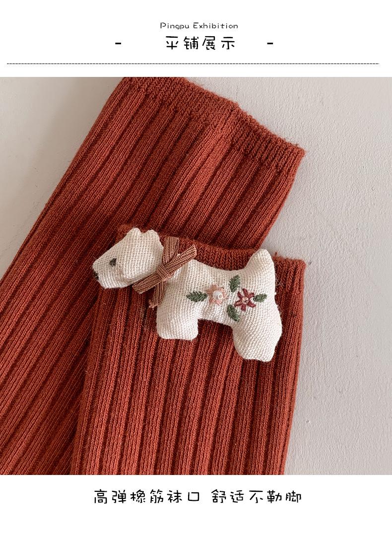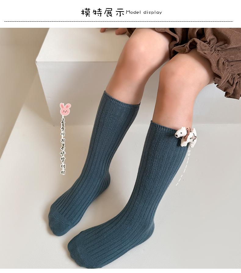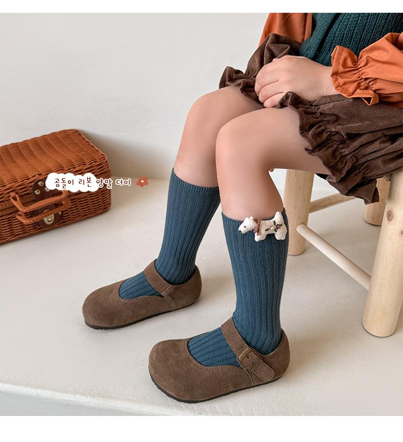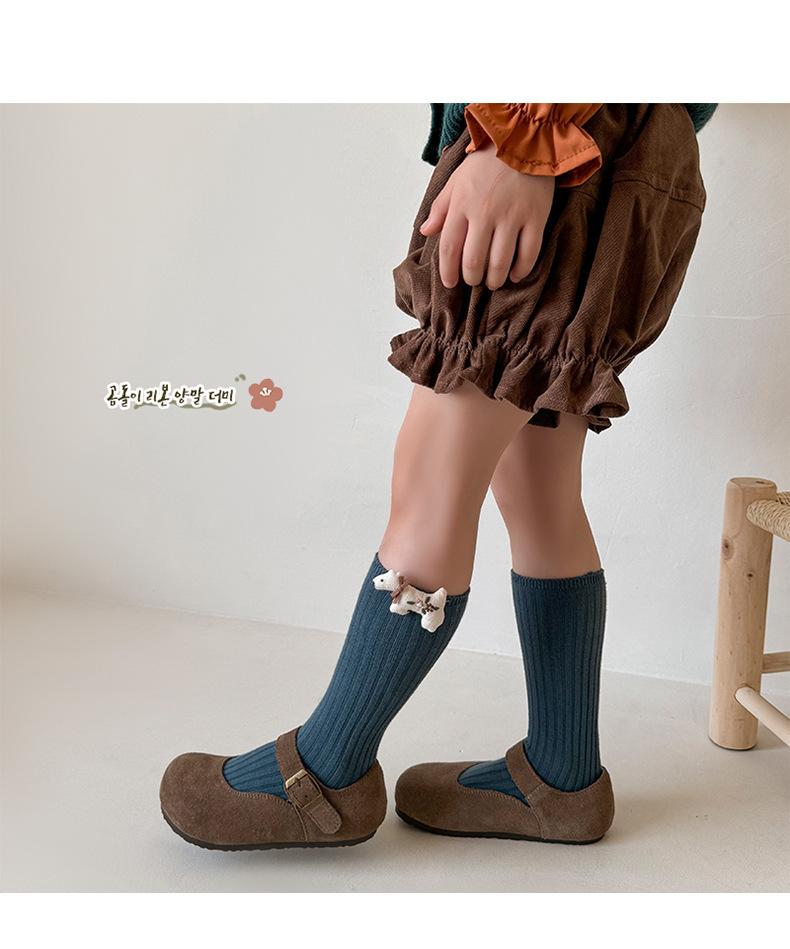 Calcetines apilados para niñas, calcetines lindos con lazo de cachorro, calcetines coreanos para niños, calcetines coreanos sólidos hasta la pantorrilla al por mayor