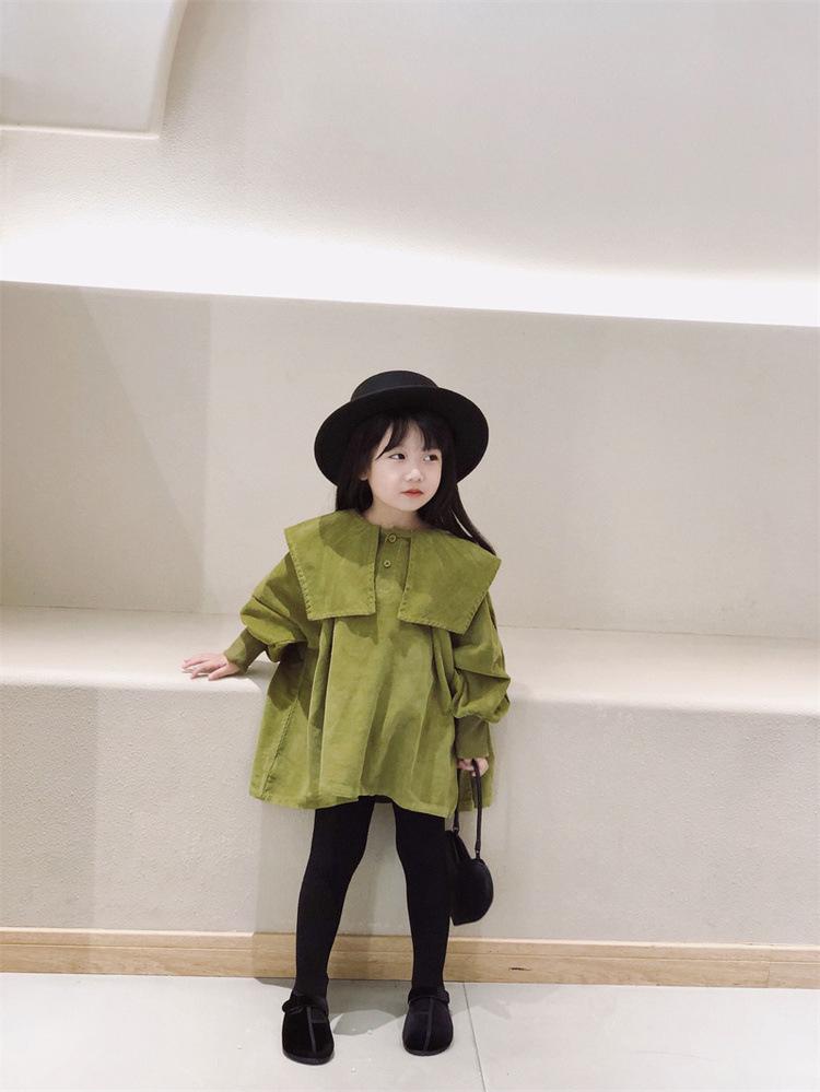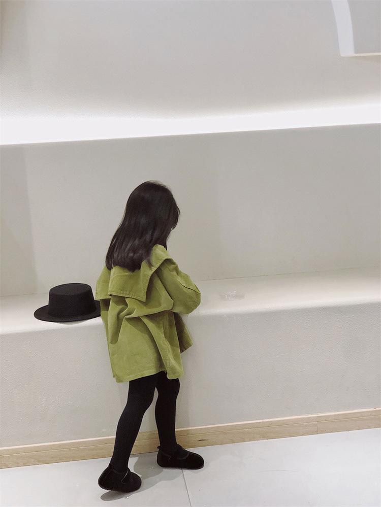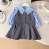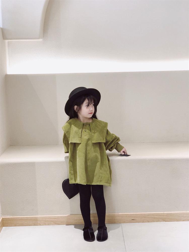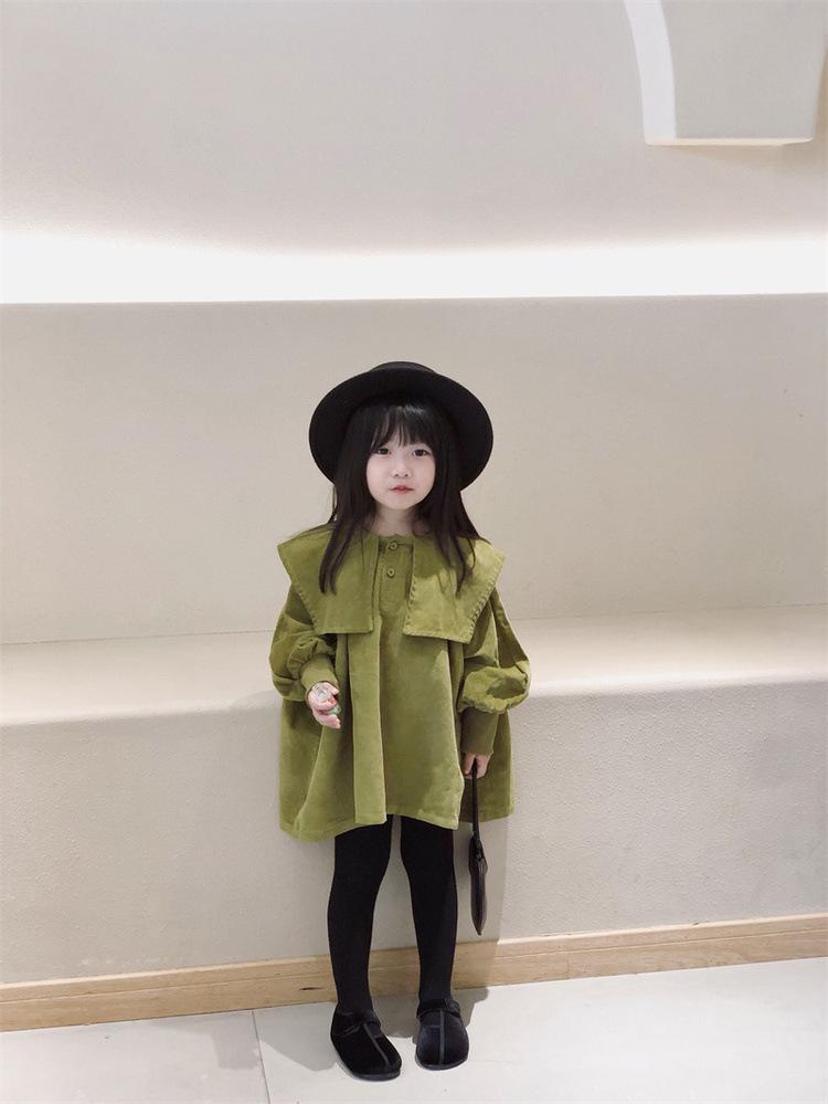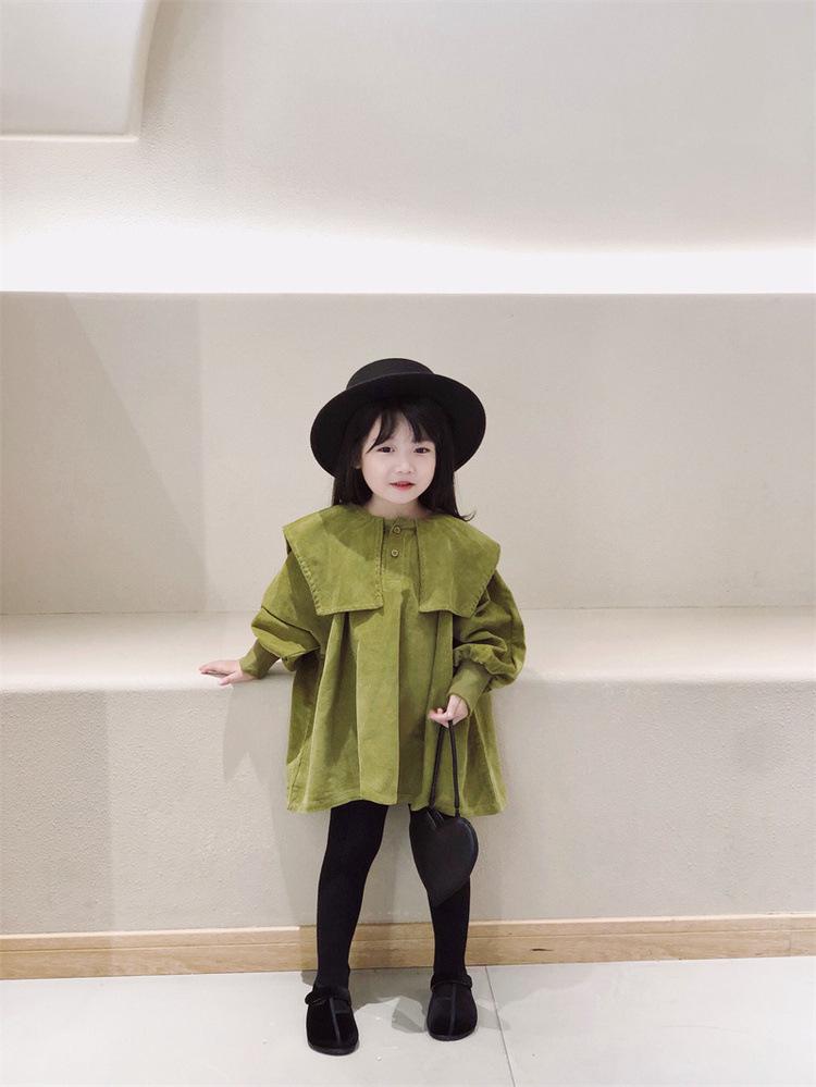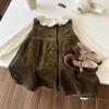 2024 Nuevo Vestido de niñas de primavera lindo con solapa grande de color sólido vestido de bebé de pana para niños moda