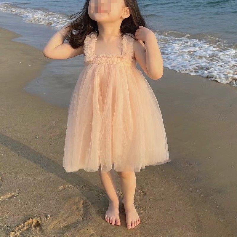 Vestido de Verano Nuevo de Alas para Niñas 2025 Nuevo Estilo Vestido de Princesa de Tirantes Rosa a la Moda para Bebé