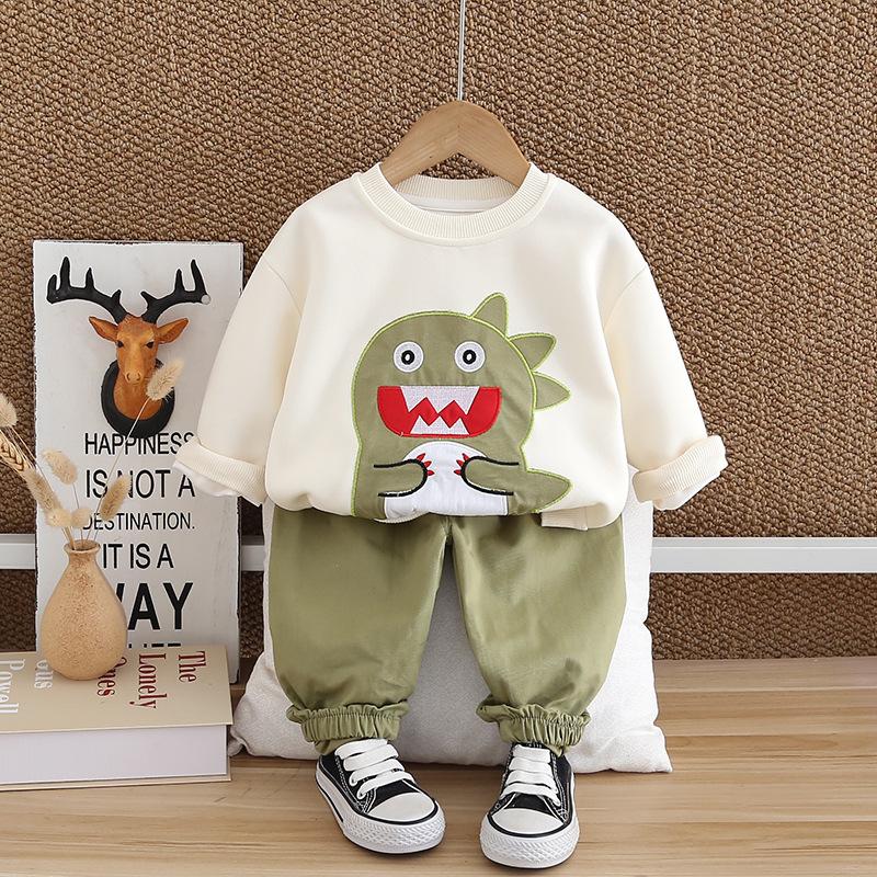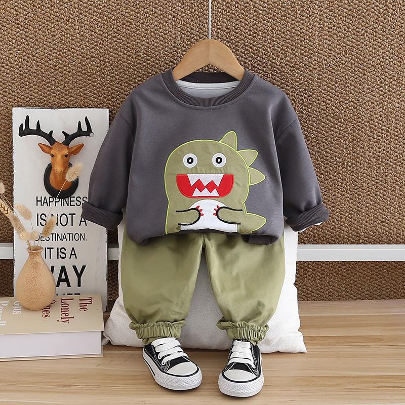 Long Sleeve Dinosaur Sweatshirt suit creamy-white, Long sleeve dinosaur sweater suit gray