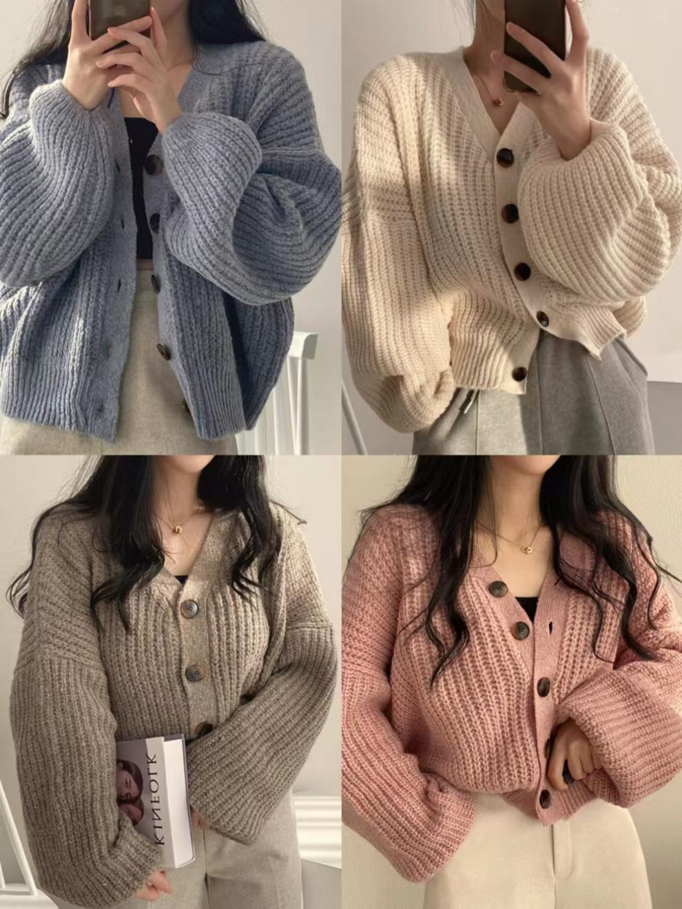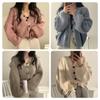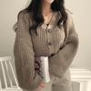 Nuevo Suéter Versátil de Otoño e Invierno Coreano para Mujer Versión Holgada Grande Manga Farol Perezosa Cárdigan de Punto Cálido y Grueso