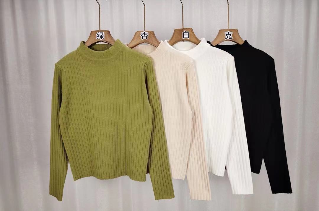 Tejido de Punto Ropa de Punto Nuevo Estilo Manga Larga Ropa de Punto para Fondo Top de Cuello Medio Cuello Alto Interior Ropa de Punto para Mujer Otoño e Invierno Moda para Mujer