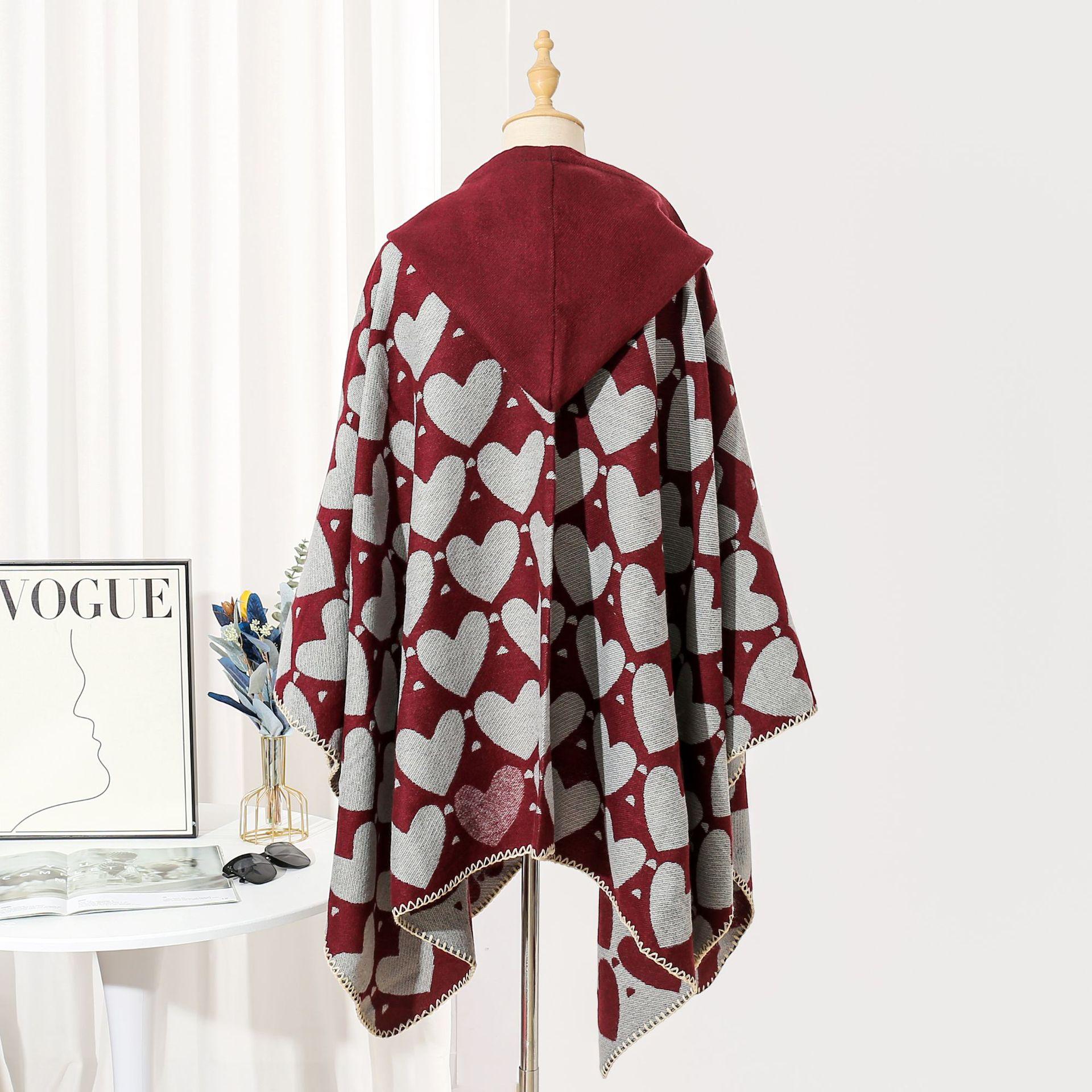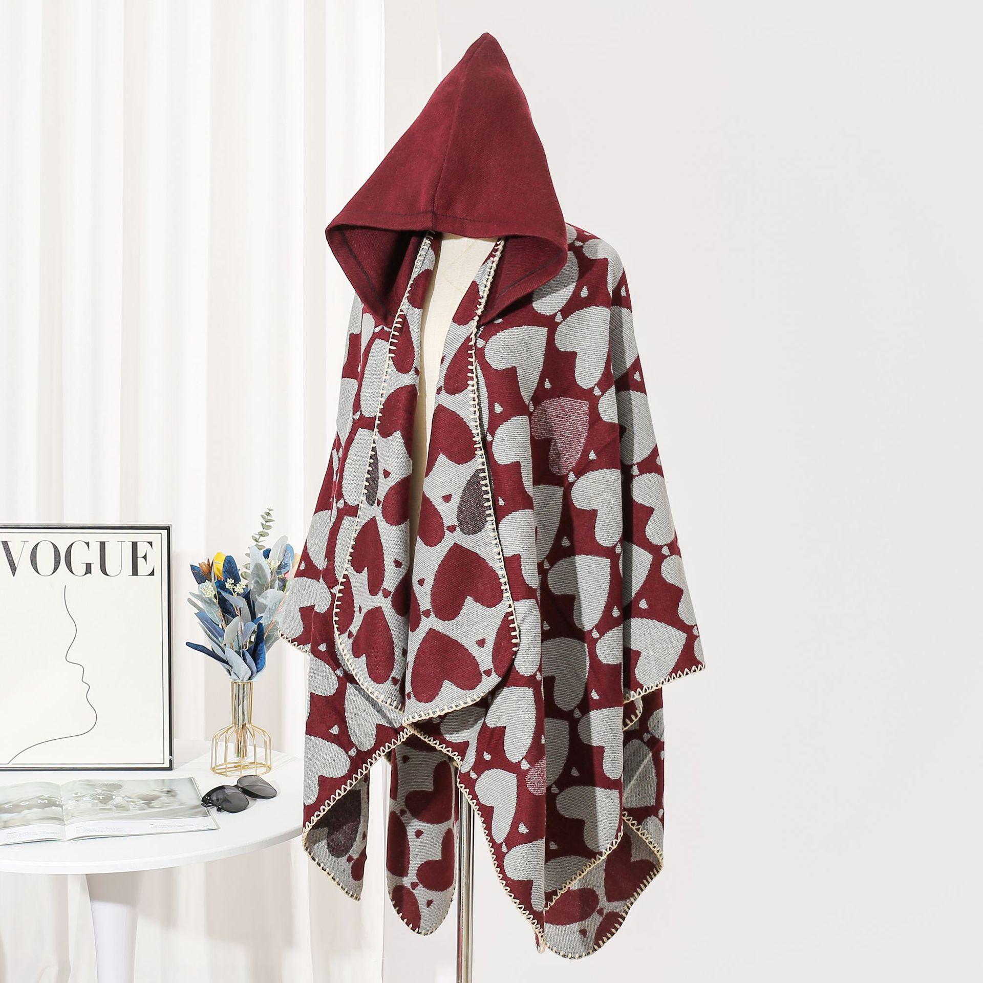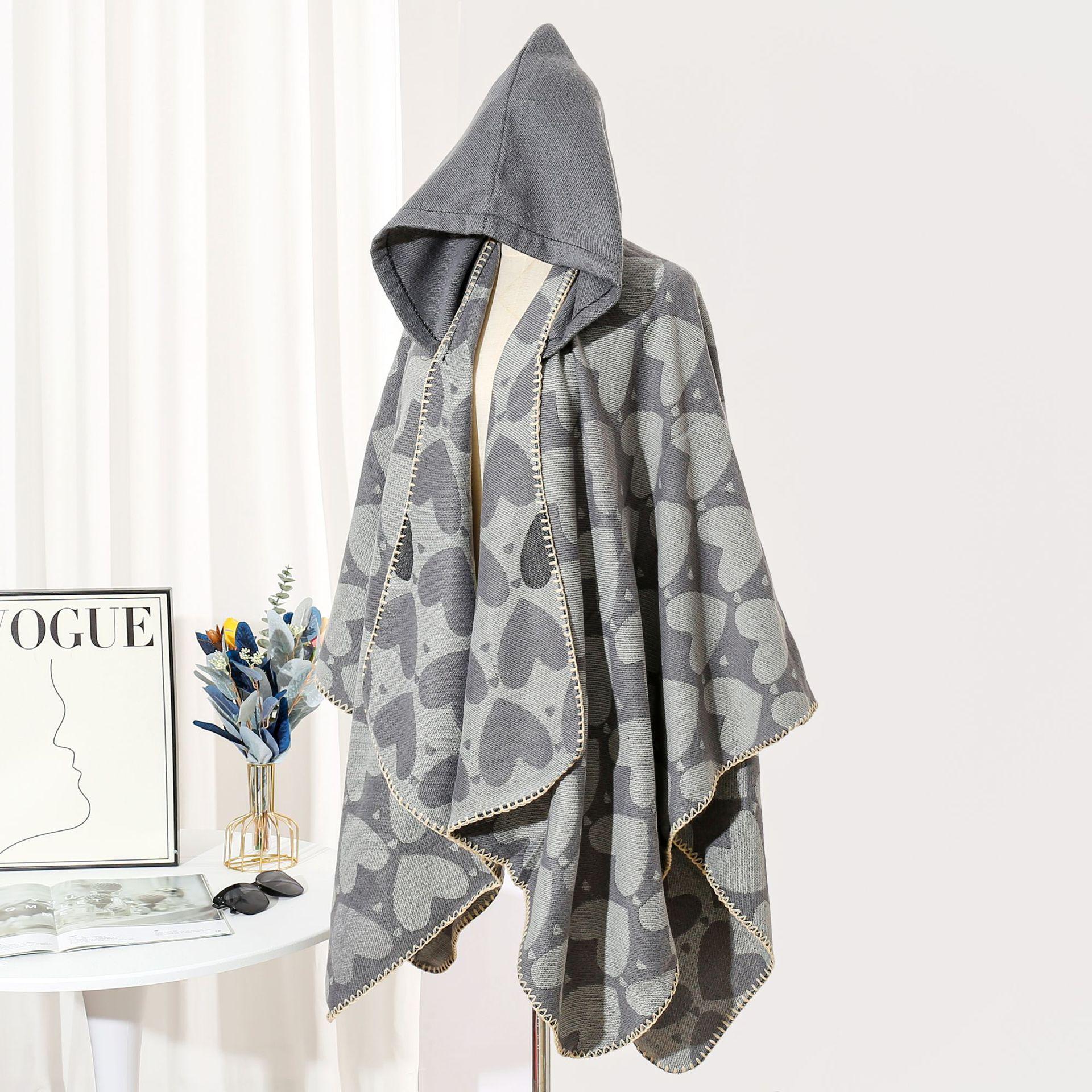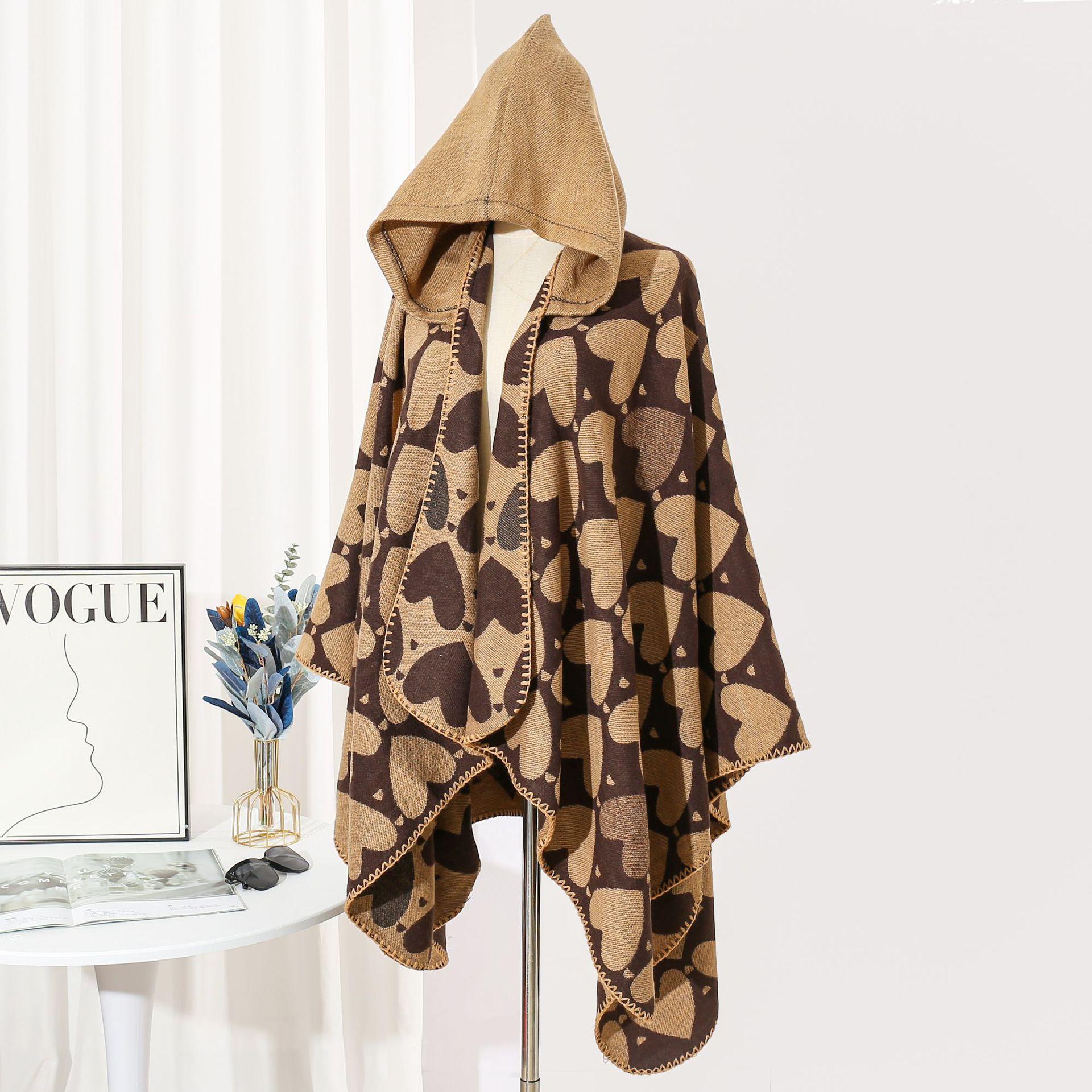 Chal de punto dividido nuevo de otoño e invierno cálido en stock Capa con capucha Capa de cachemira de imitación Chal de punto cruzado para mujer