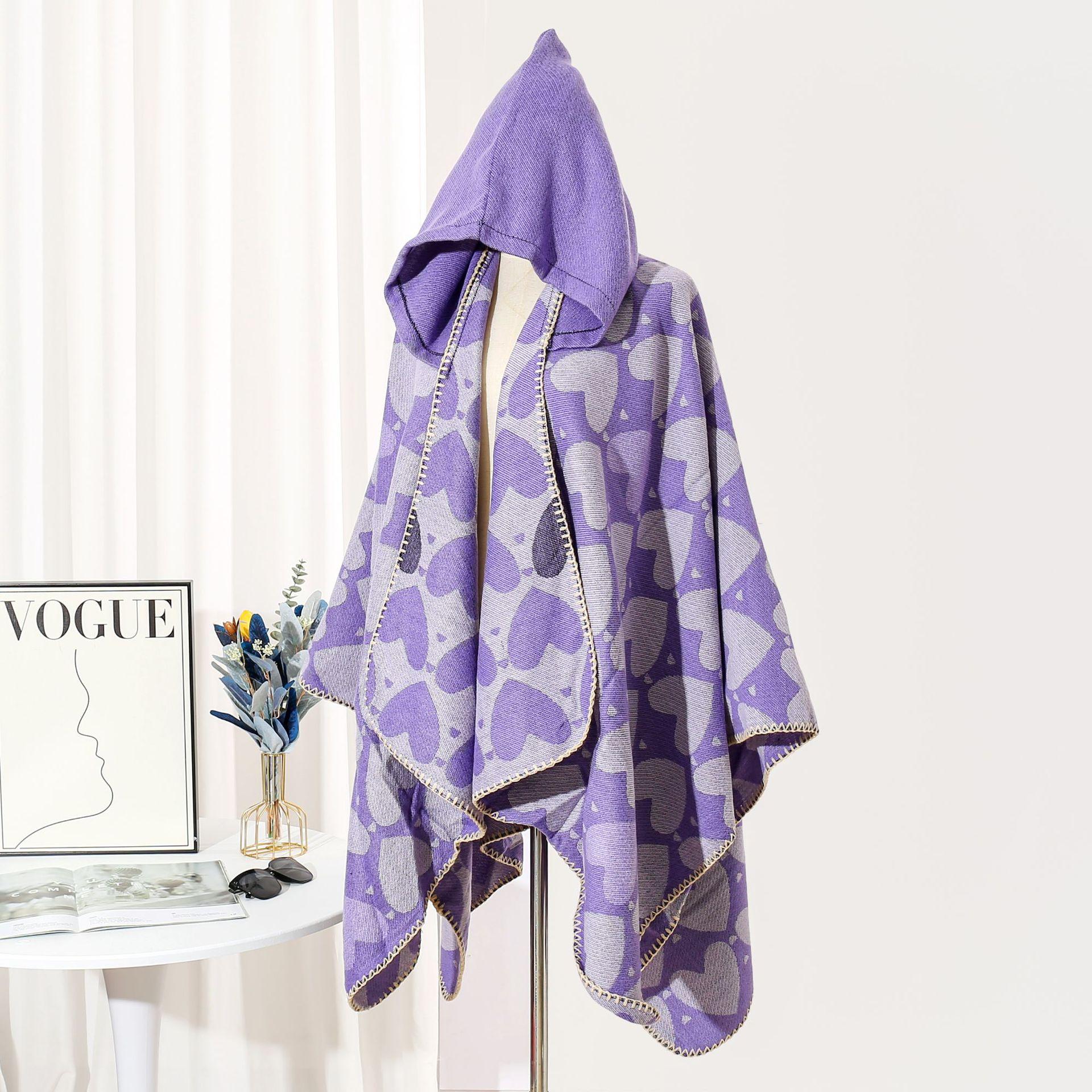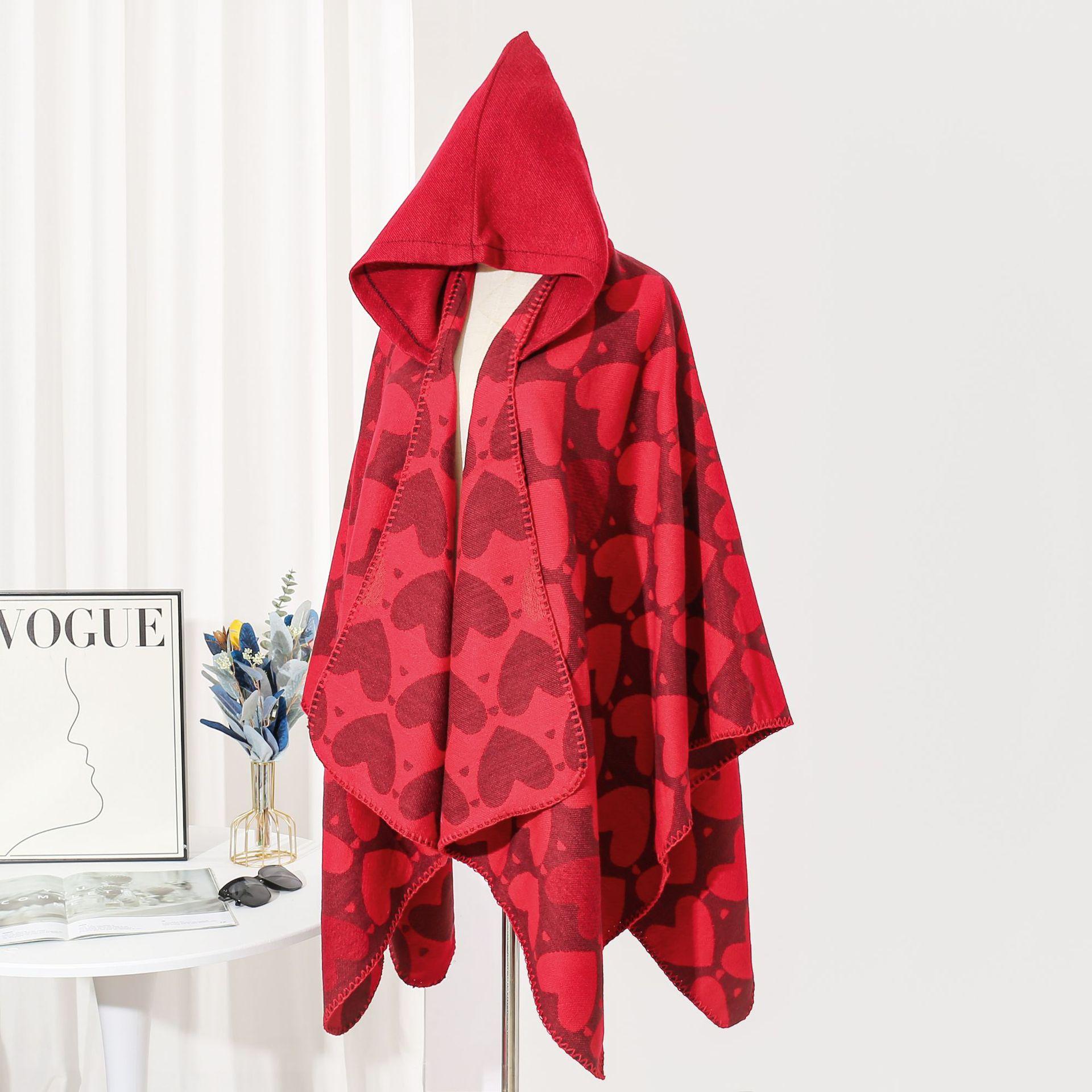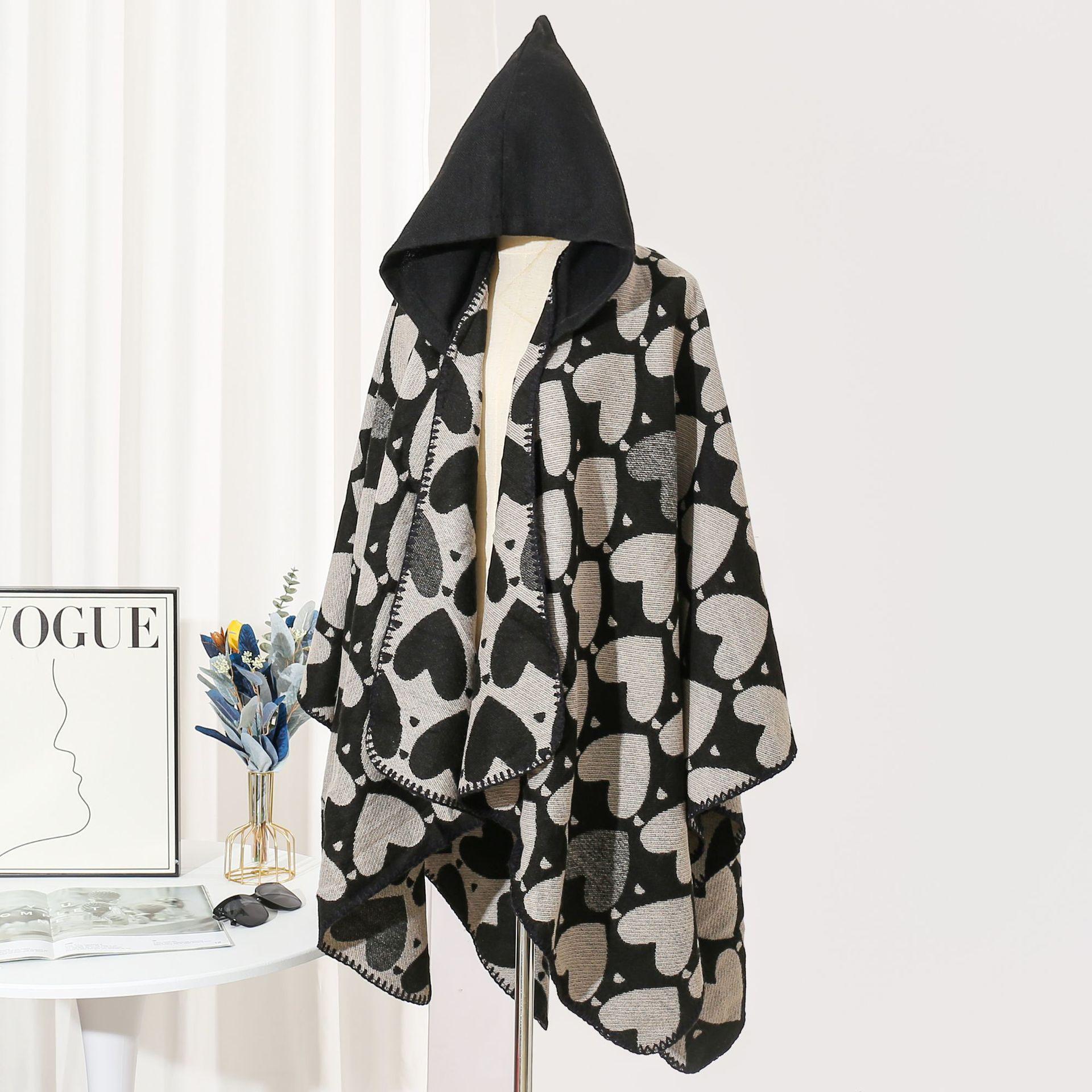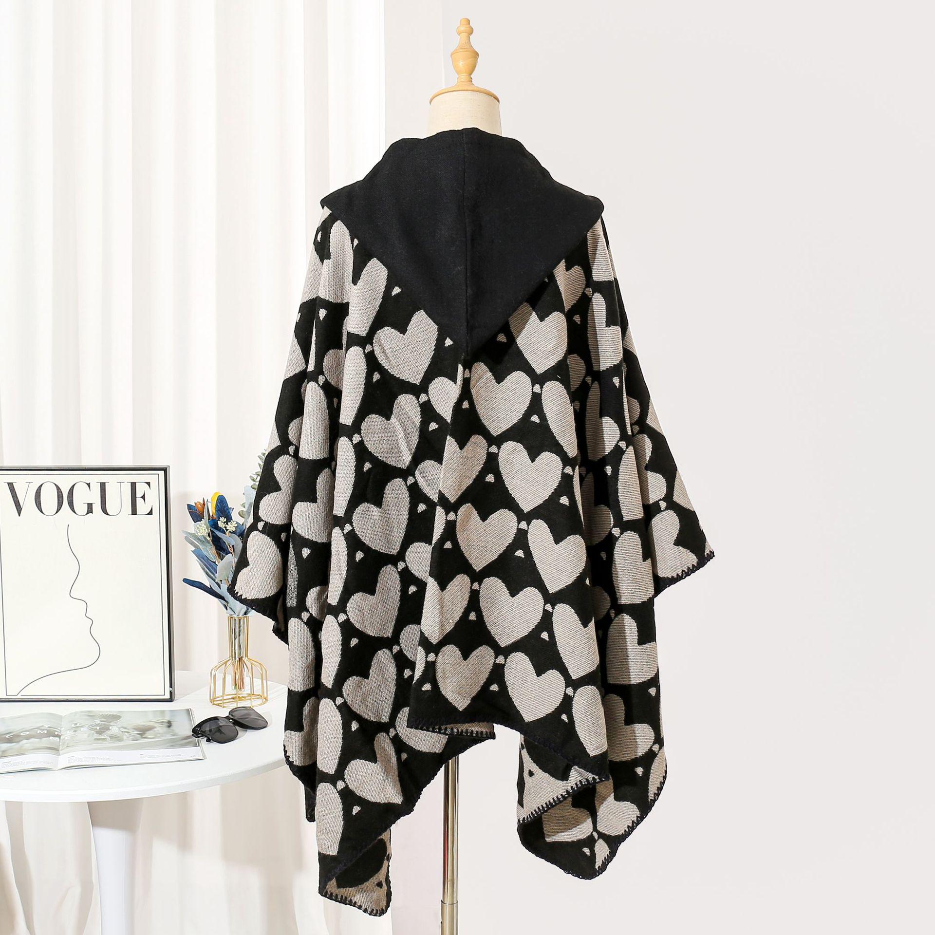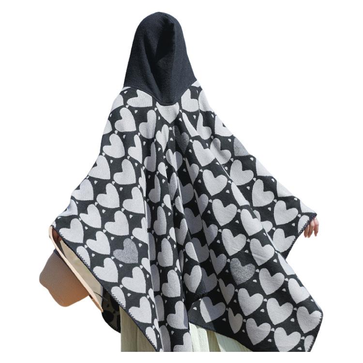 Chal de punto dividido nuevo de otoño e invierno cálido en stock Capa con capucha Capa de cachemira de imitación Chal de punto cruzado para mujer