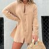 Conjunto de dos piezas informal de moda con camisa de manga larga y pantalones cortos con solapa de tela arrugada para mujer europea y americana transfronteriza de Amazon 2023