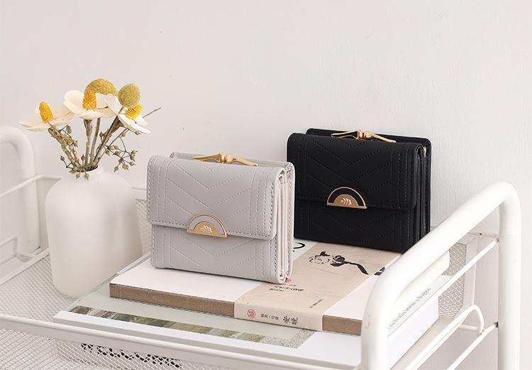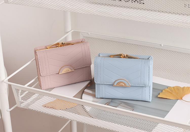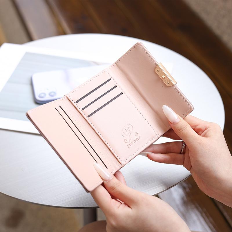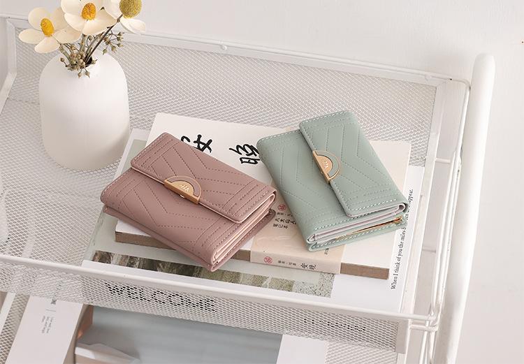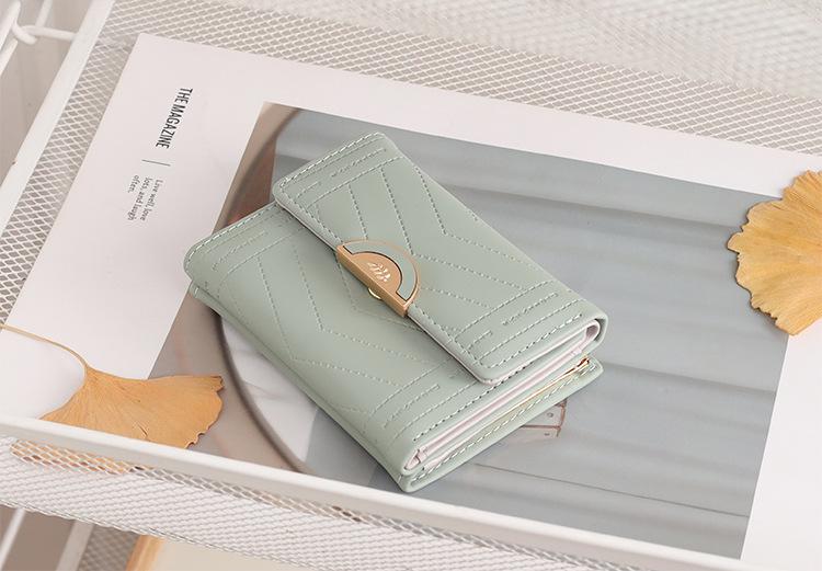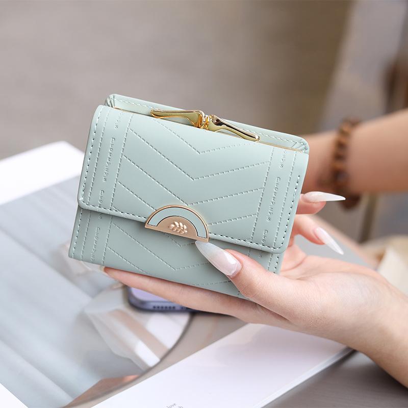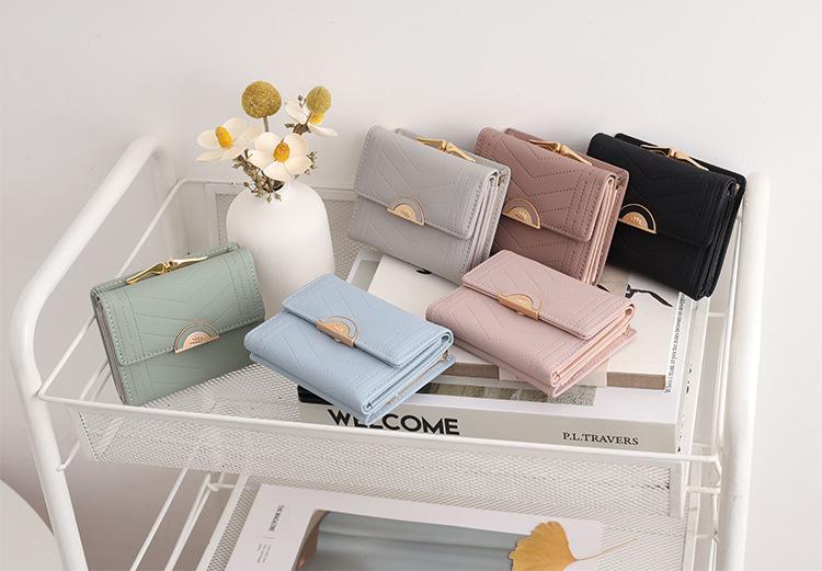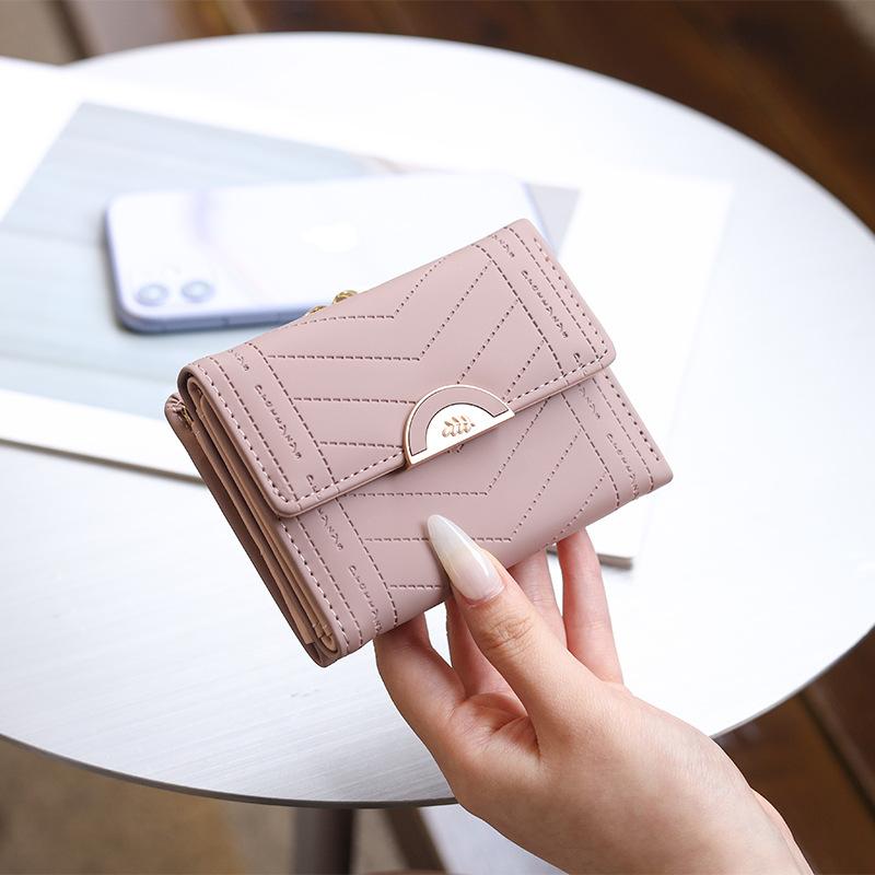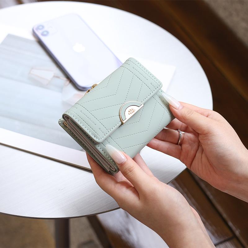 Cartera de mujer 2022, corta, para estudiante, de color sólido, estilo coreano, pequeña, fresca, con tres pliegues, multifunción, monedero