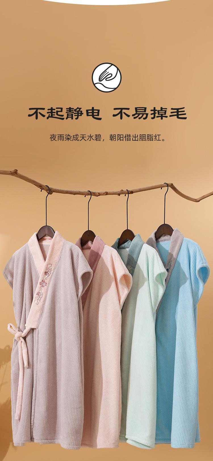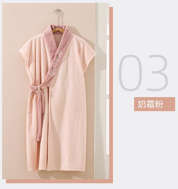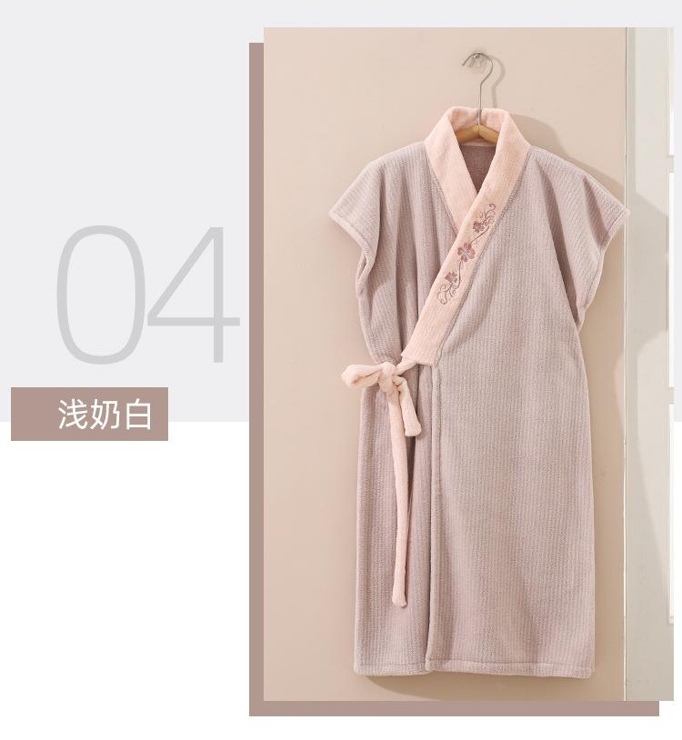 Bata de Noche Nueva de Terciopelo Coral para Mujer para Usar Afuera en Verano, Pijama Absorbente y Transpirable para Adulto para Mujer, Bata de Baño Larga de Alta Gama