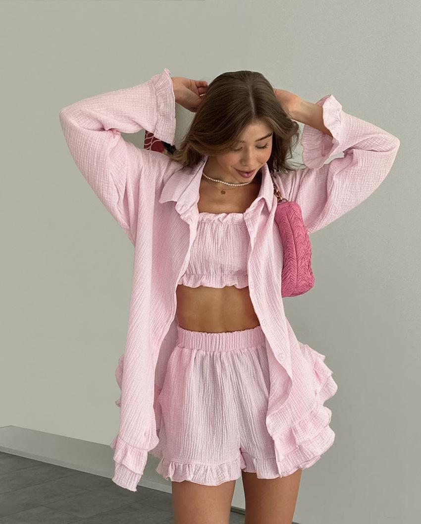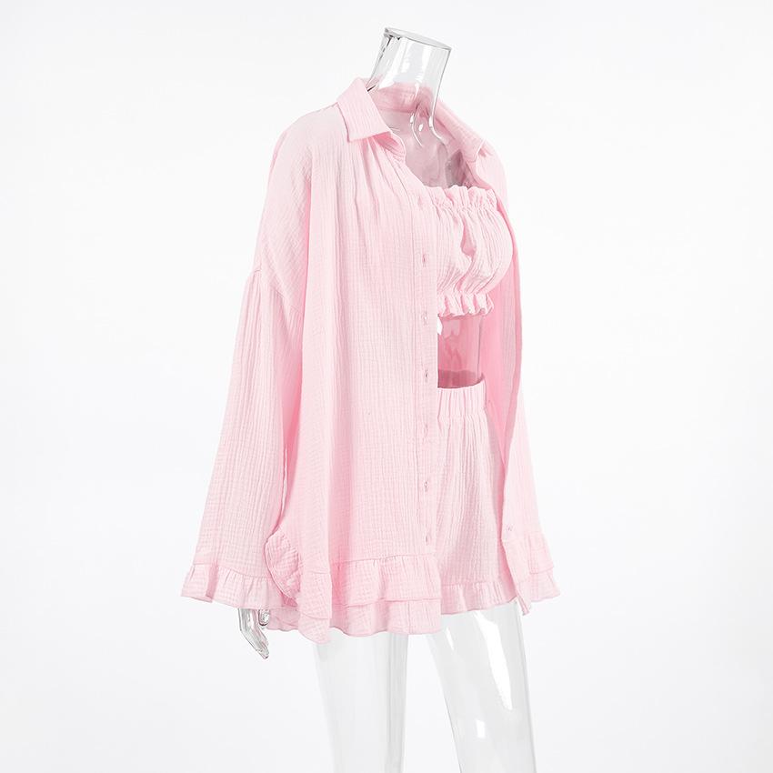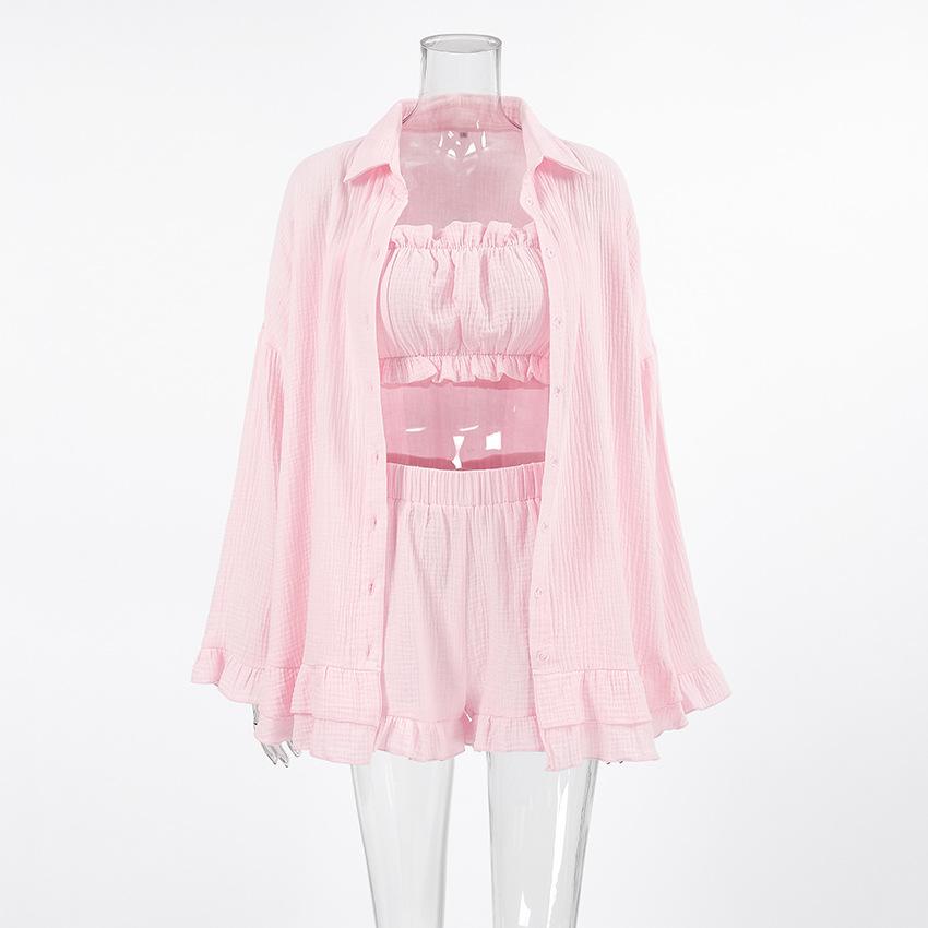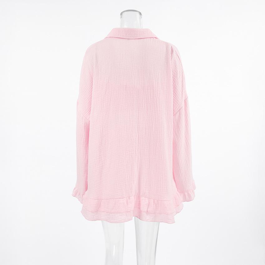 Pijama de manga larga holgado y cómodo para mujer, estilo europeo y americano, de otoño e invierno, informal, de algodón, transpirable, nuevo, con pantalones cortos de manga larga