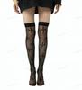 Medias largas de encaje fino con estampado hueco de malla de tubo para primavera y otoño, calcetines por encima de la rodilla, piernas sexys, negras y largas