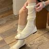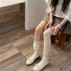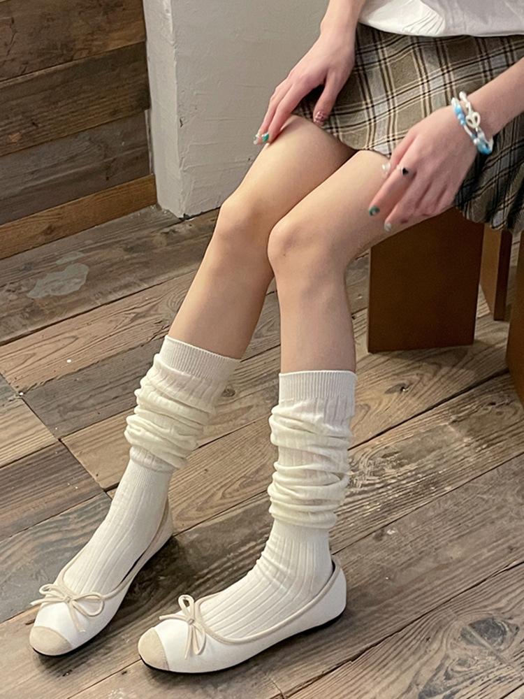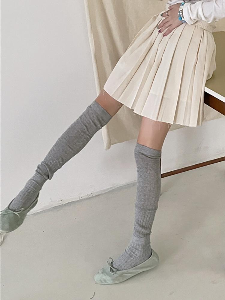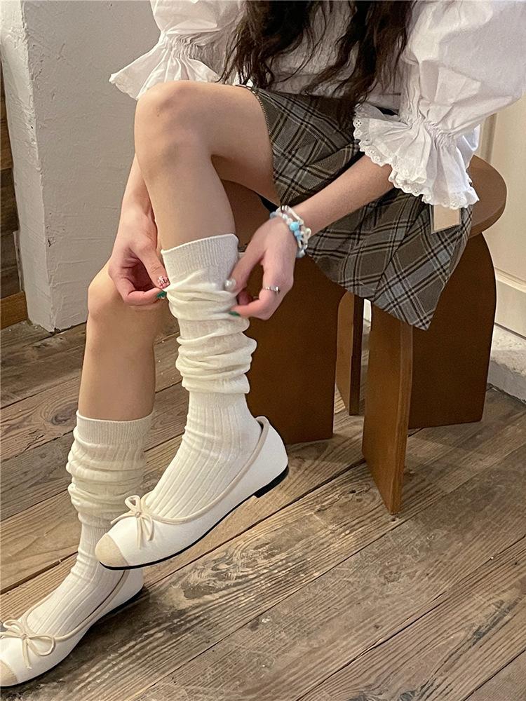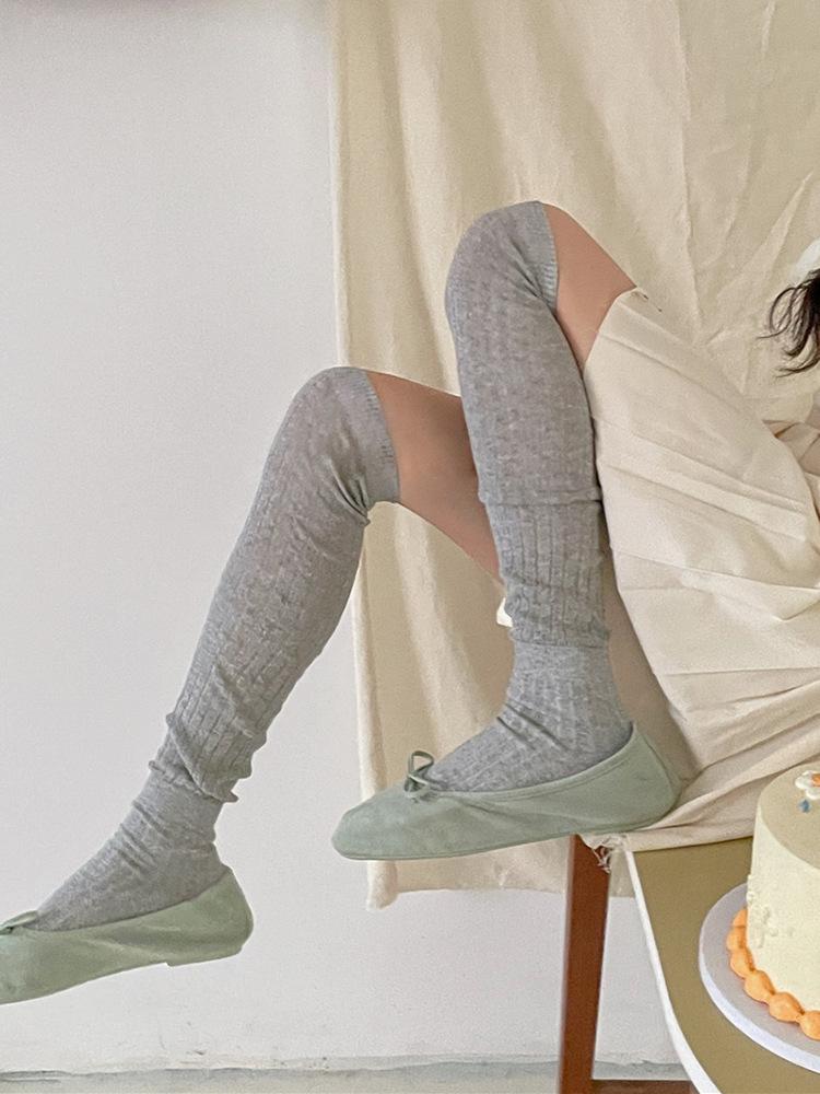 Calcetines largos tipo calcetines altos hasta la rodilla estilo japonés versátiles simples tejidos estilo ballet jk de rayas verticales hasta la pantorrilla de algodón para mujer
