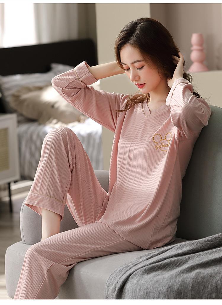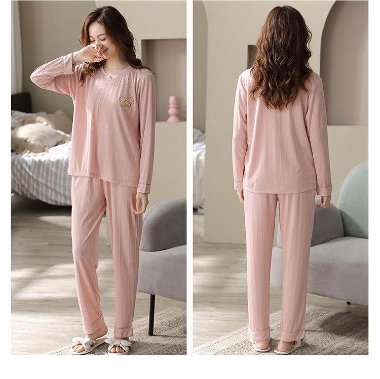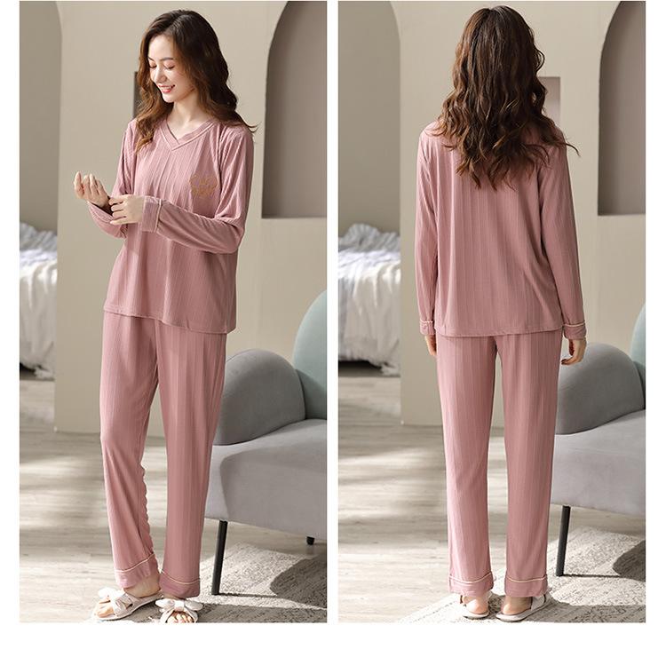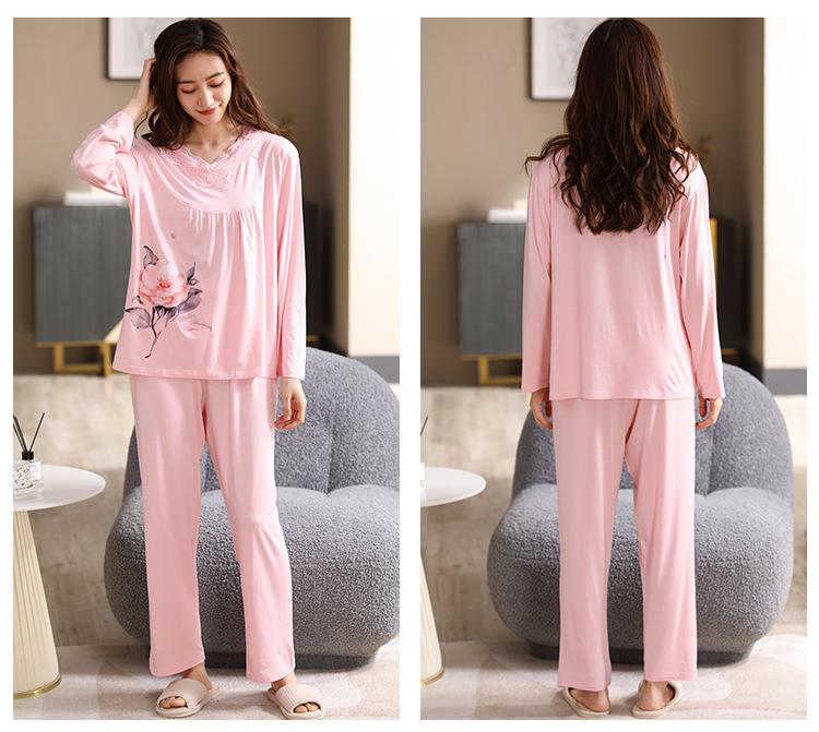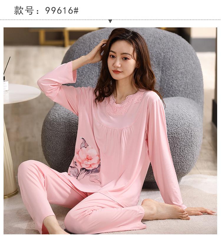 Pijama Modal para Mujer Otoño e Invierno Nuevo Traje de Pantalón de Manga Larga Ropa Casual Holgada para el Hogar Talla Extra para Usar Afuera