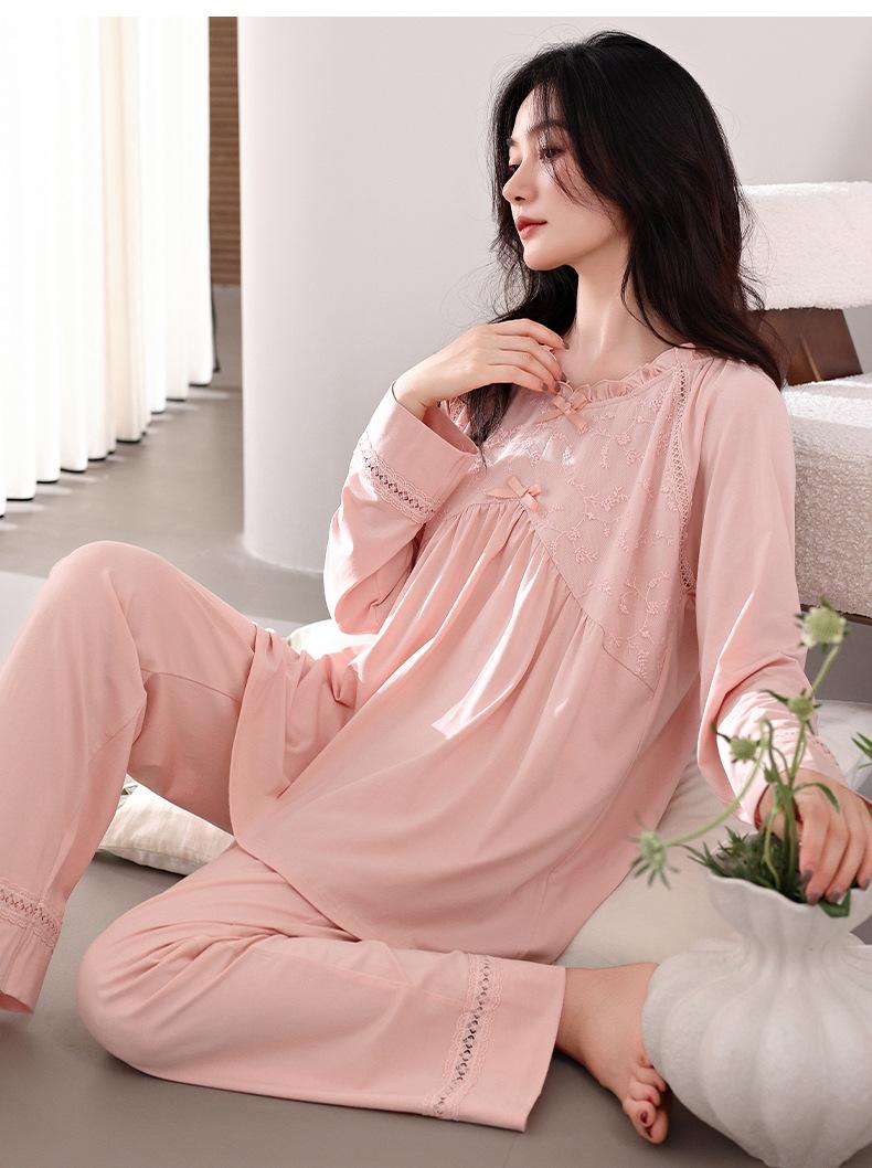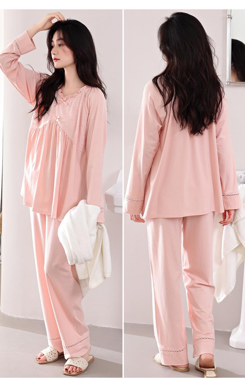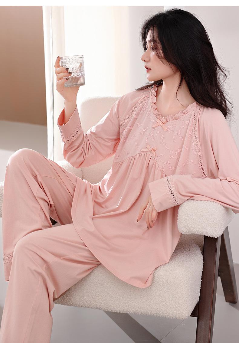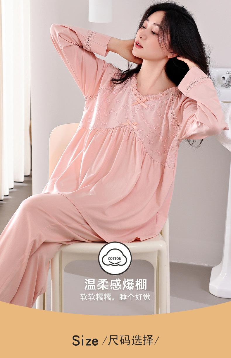 Pijama de algodón puro para mujer, traje de manga larga, color liso, informal, holgado, para primavera y otoño