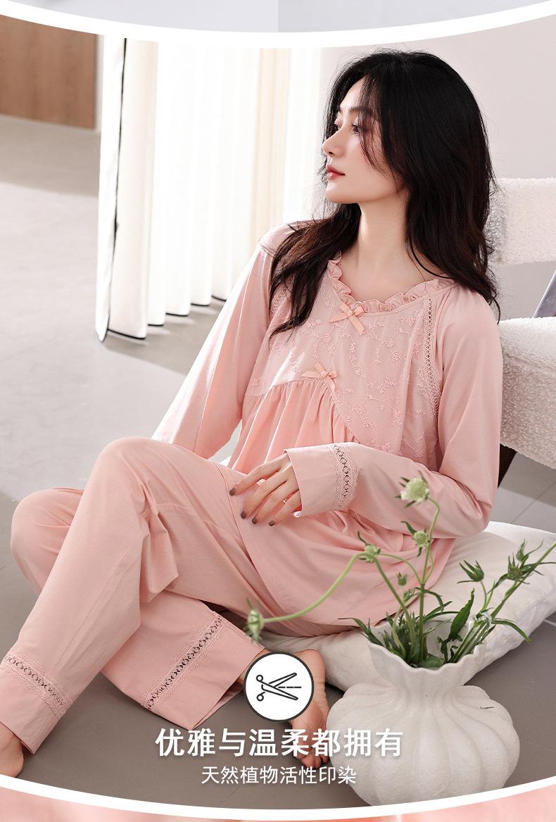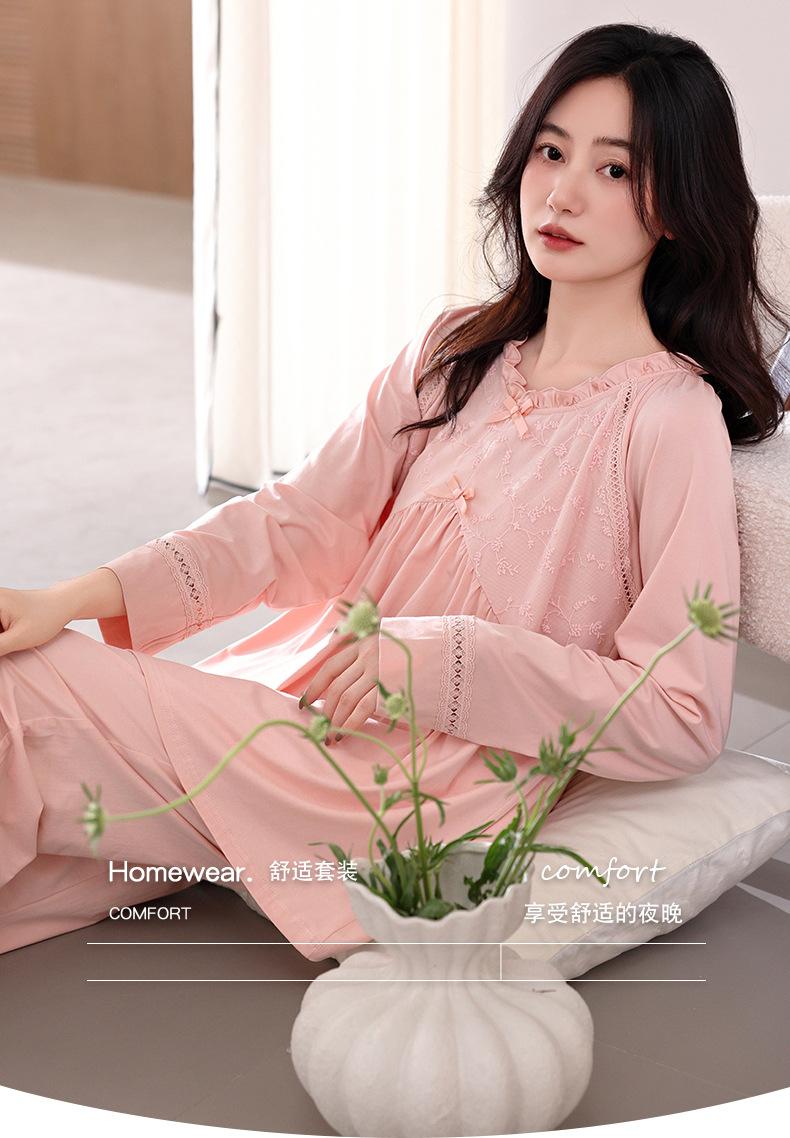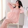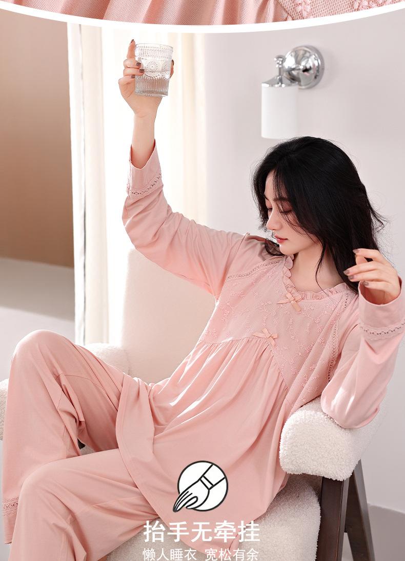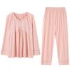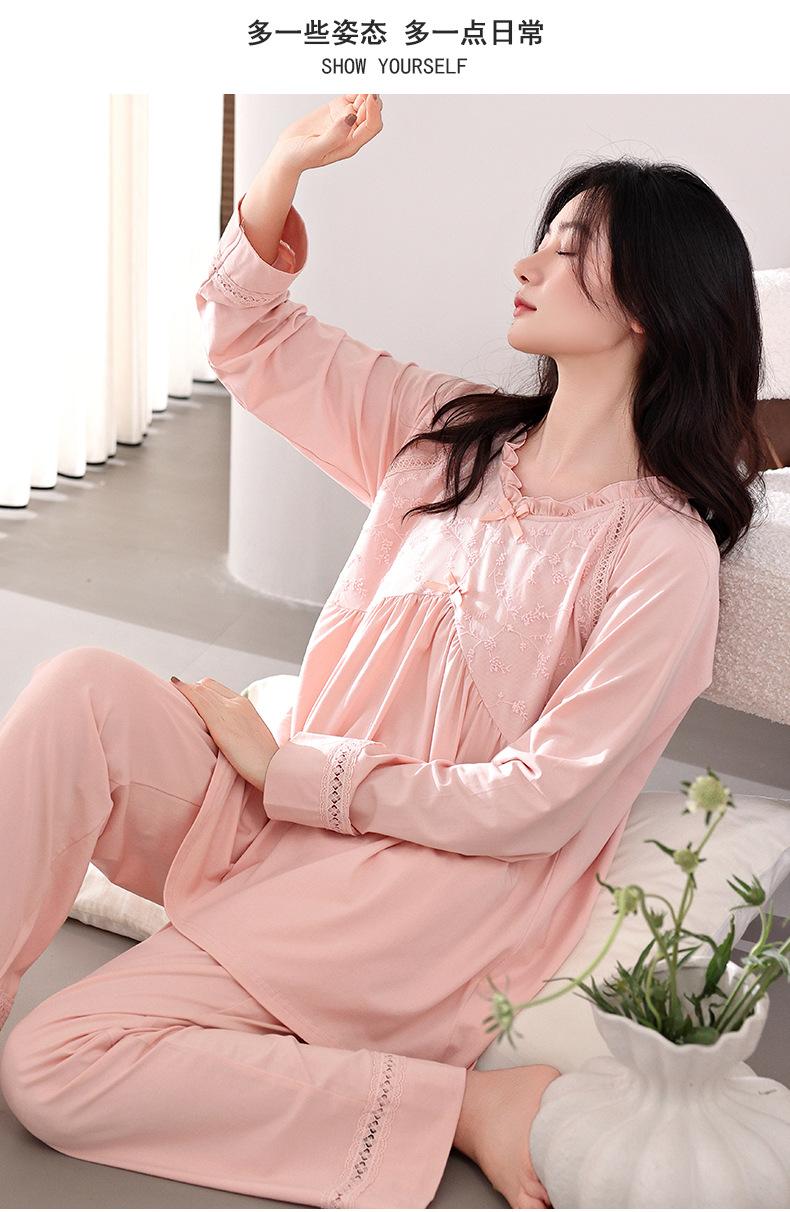 Pijama de algodón puro para mujer, traje de manga larga, color liso, informal, holgado, para primavera y otoño