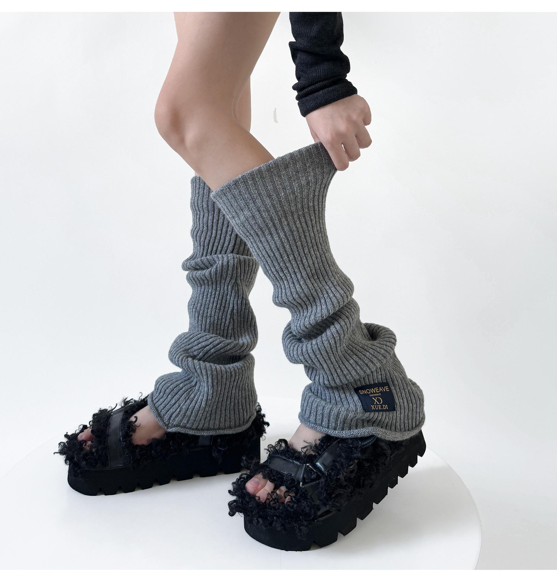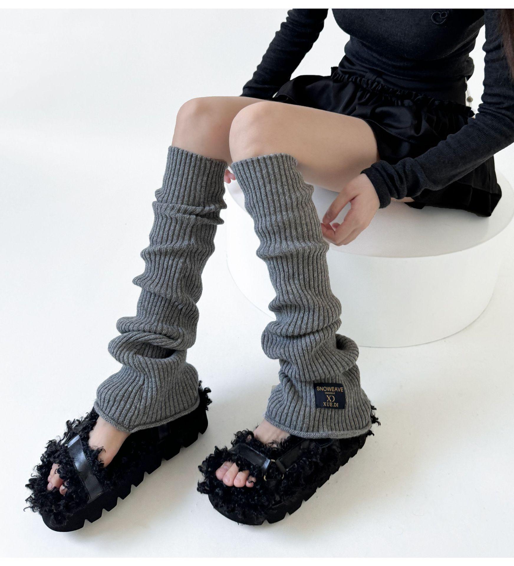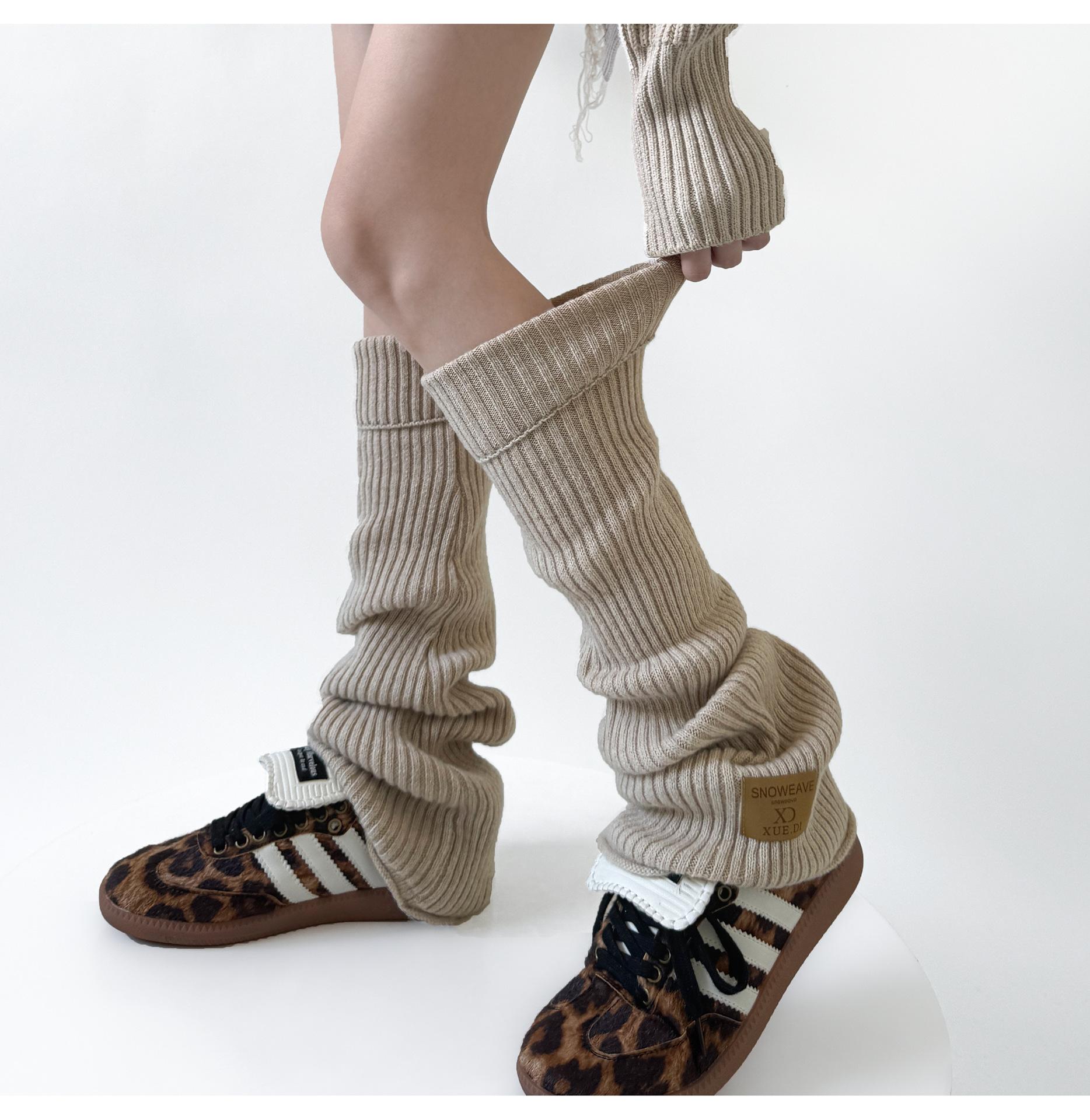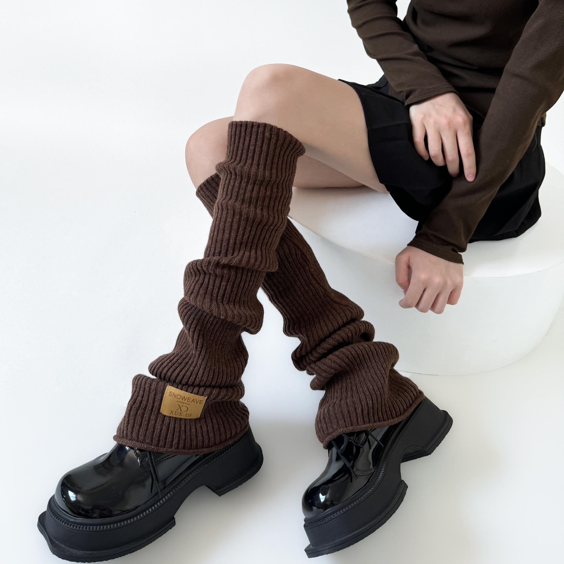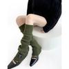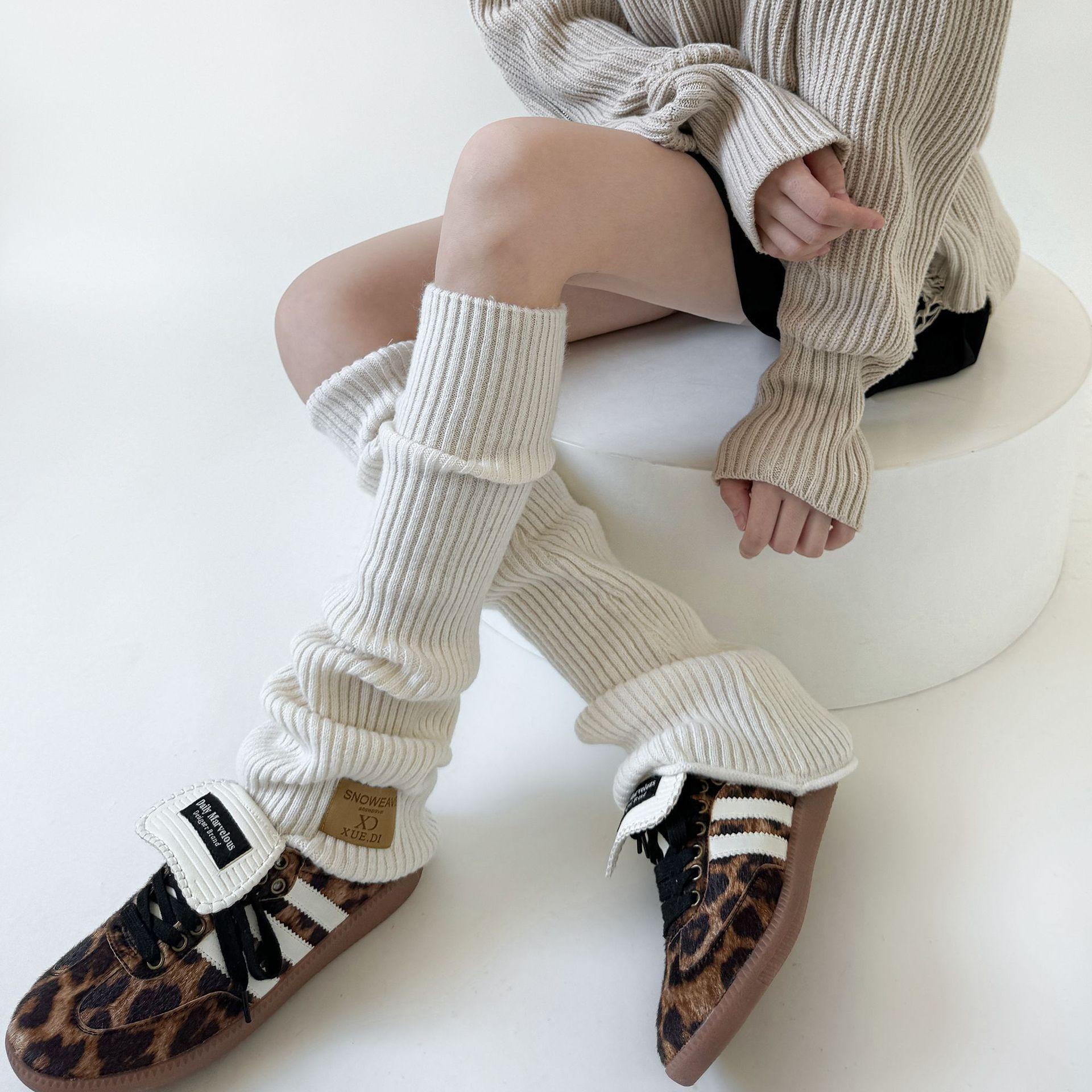 Calcetines largos hasta la rodilla para otoño e invierno, botas de punto para mujer, cálidas hasta la rodilla, etiqueta combinable, color sólido, cubrepiernas sencillo para mujer