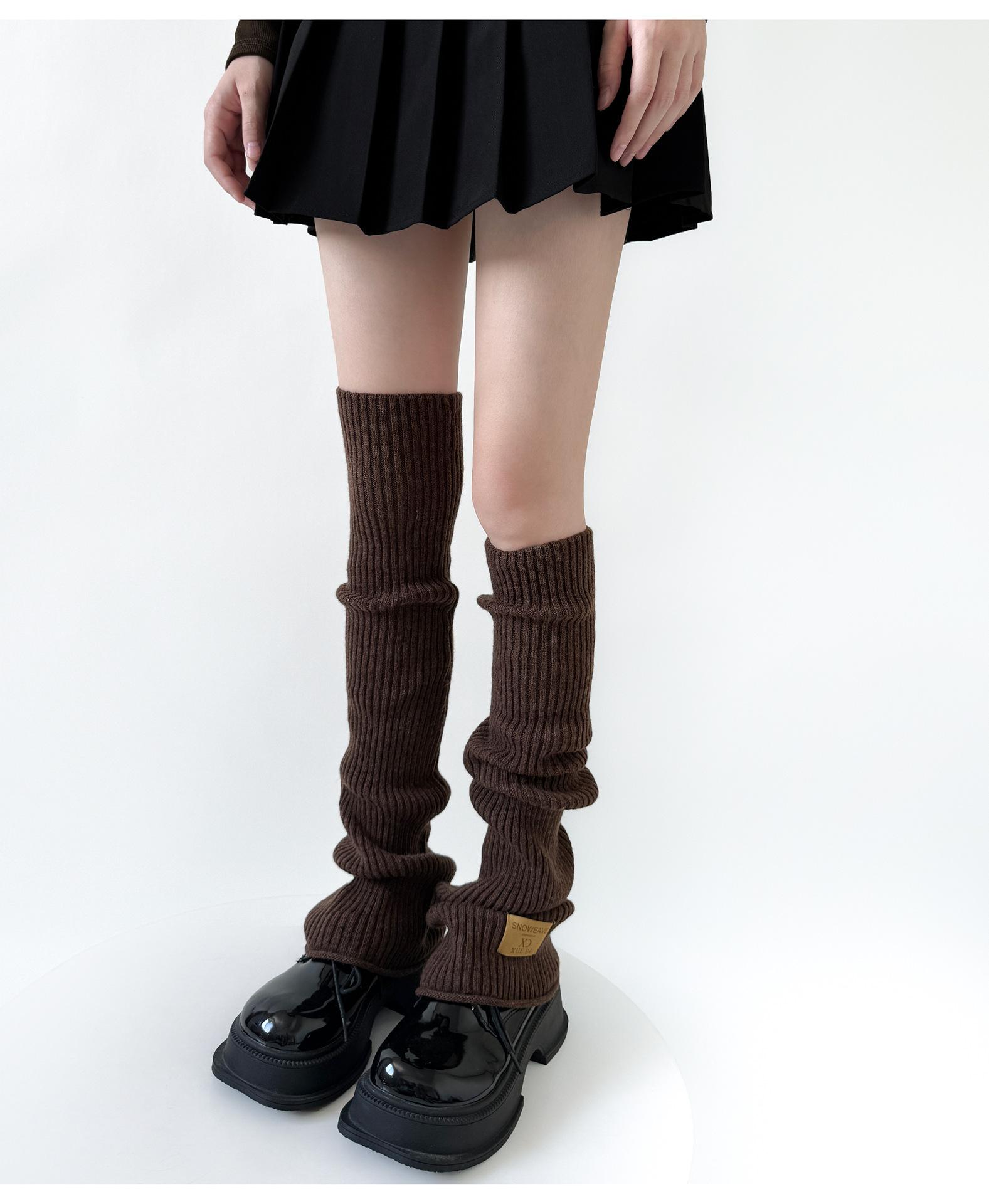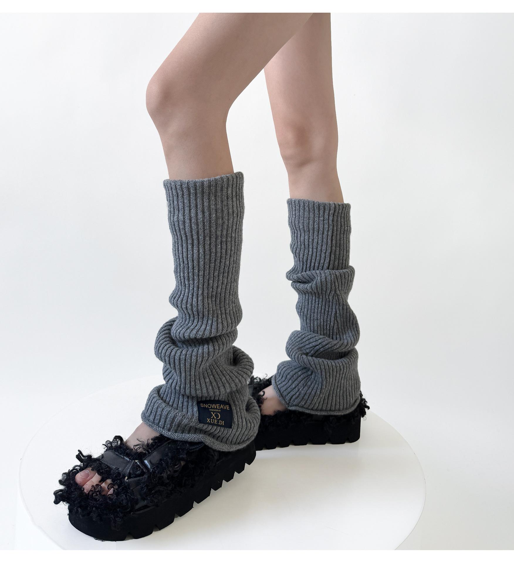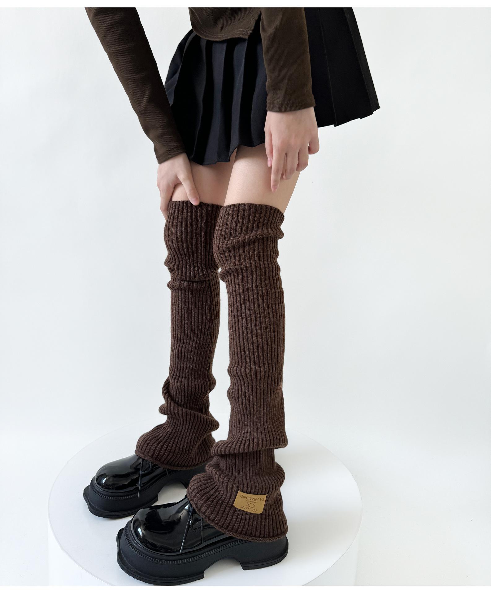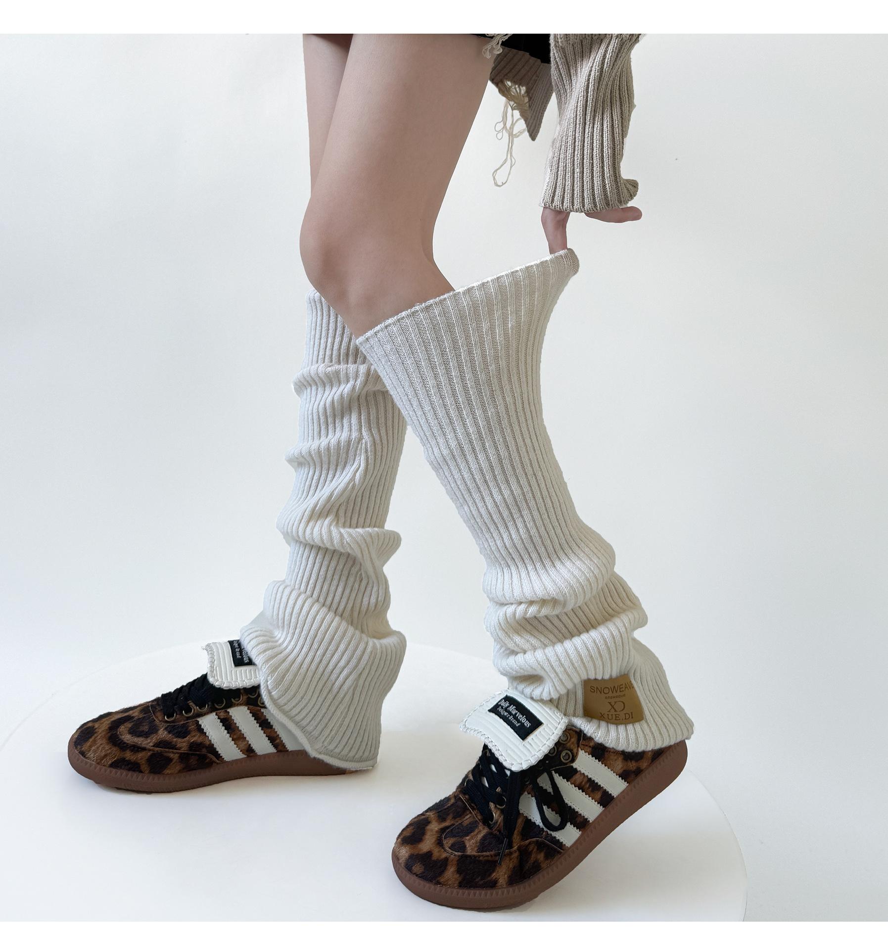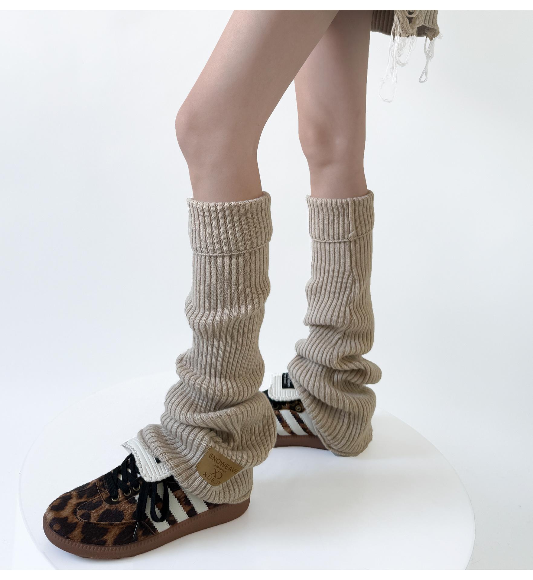 Calcetines largos hasta la rodilla para otoño e invierno, botas de punto para mujer, cálidas hasta la rodilla, etiqueta combinable, color sólido, cubrepiernas sencillo para mujer
