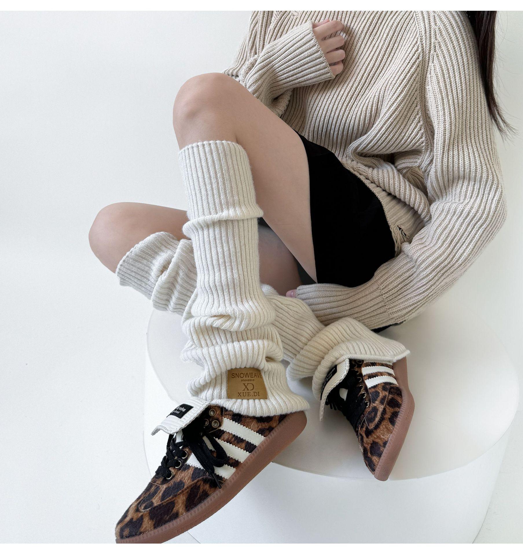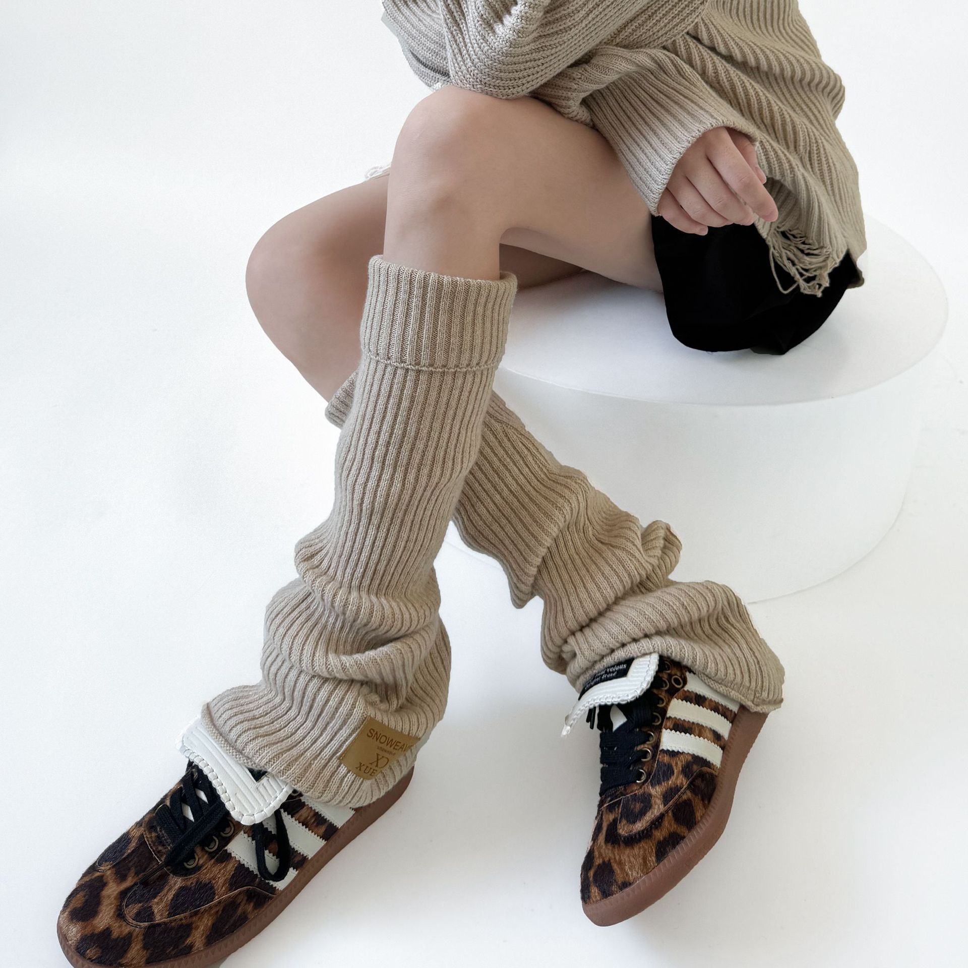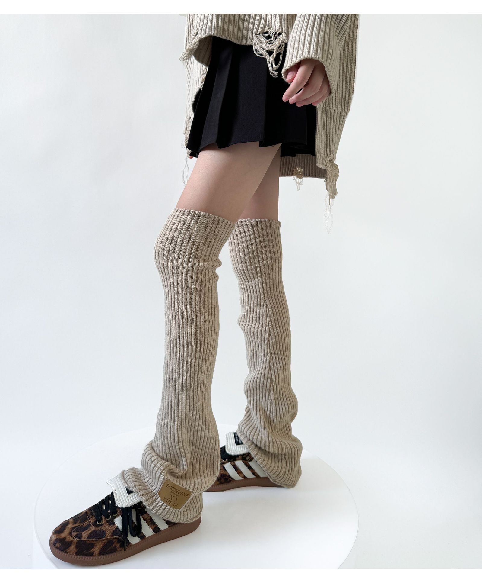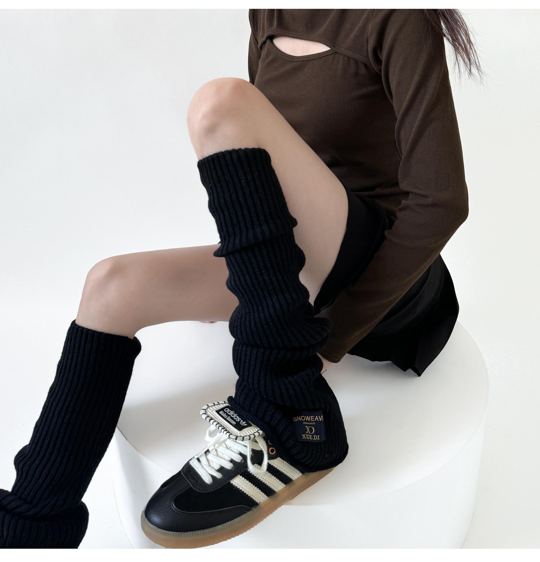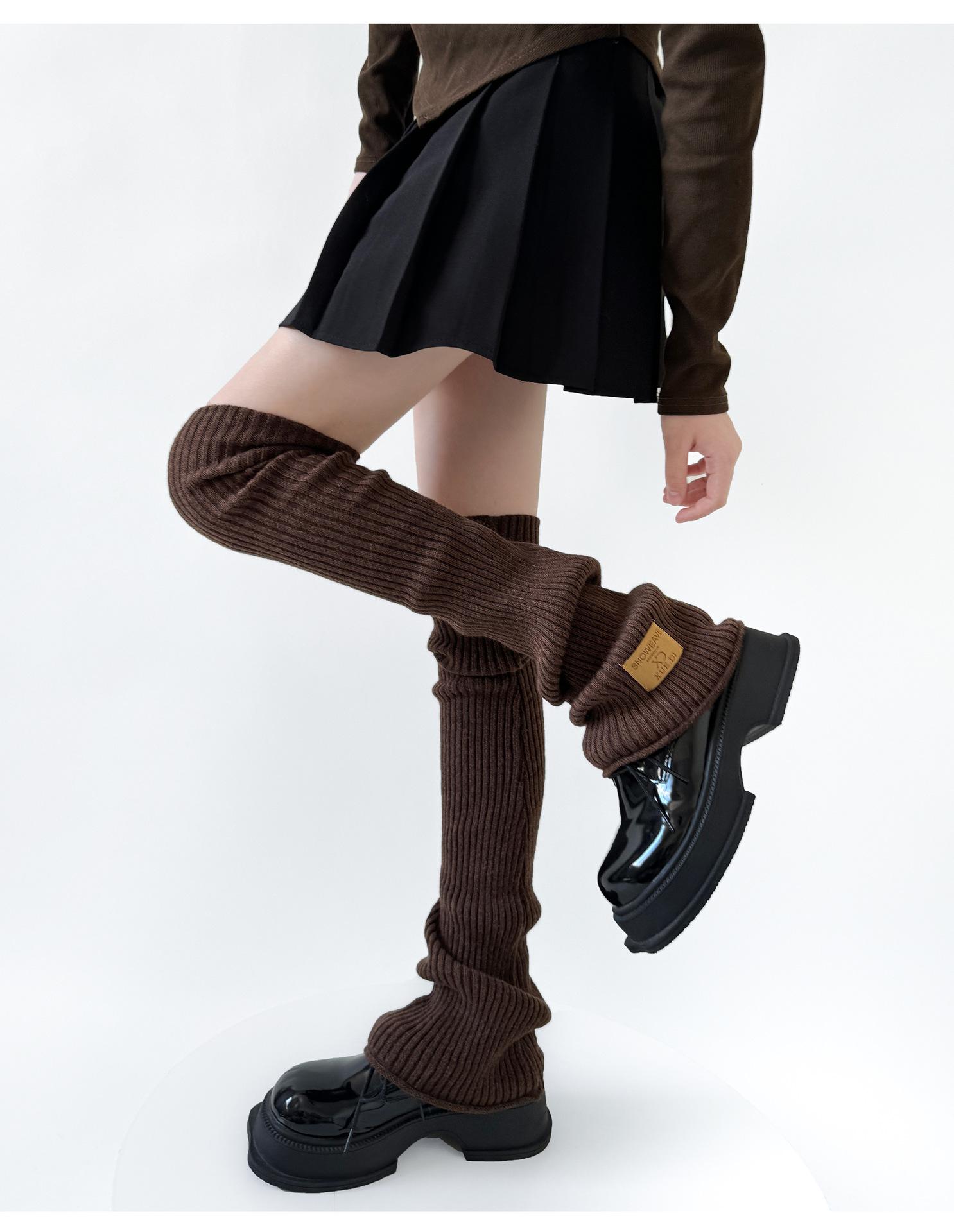 Calcetines largos hasta la rodilla para otoño e invierno, botas de punto para mujer, cálidas hasta la rodilla, etiqueta combinable, color sólido, cubrepiernas sencillo para mujer