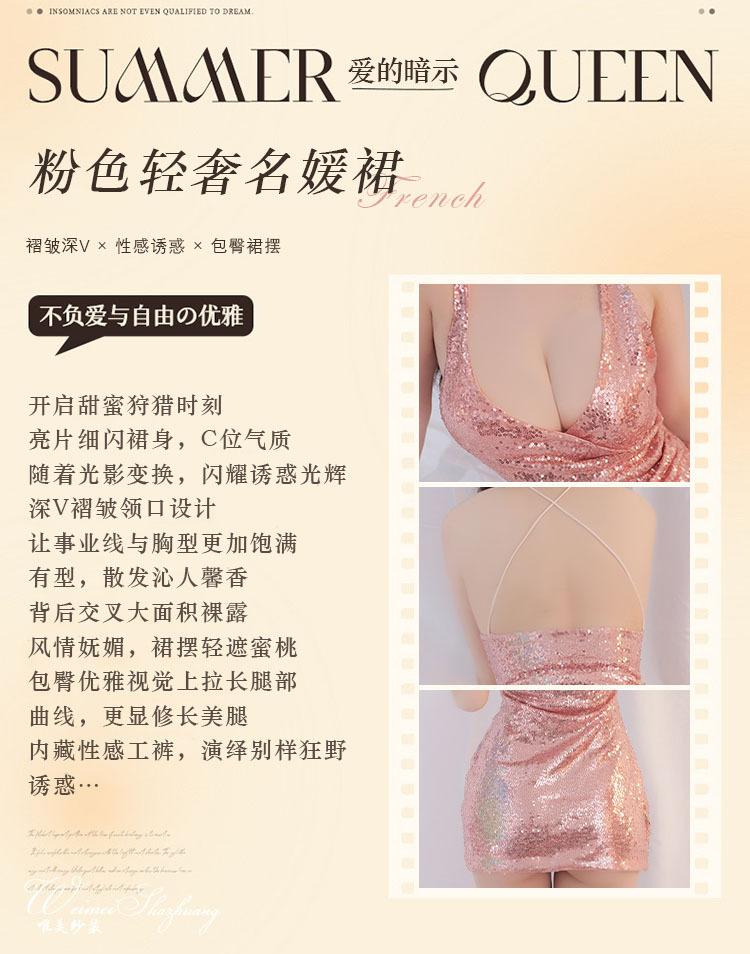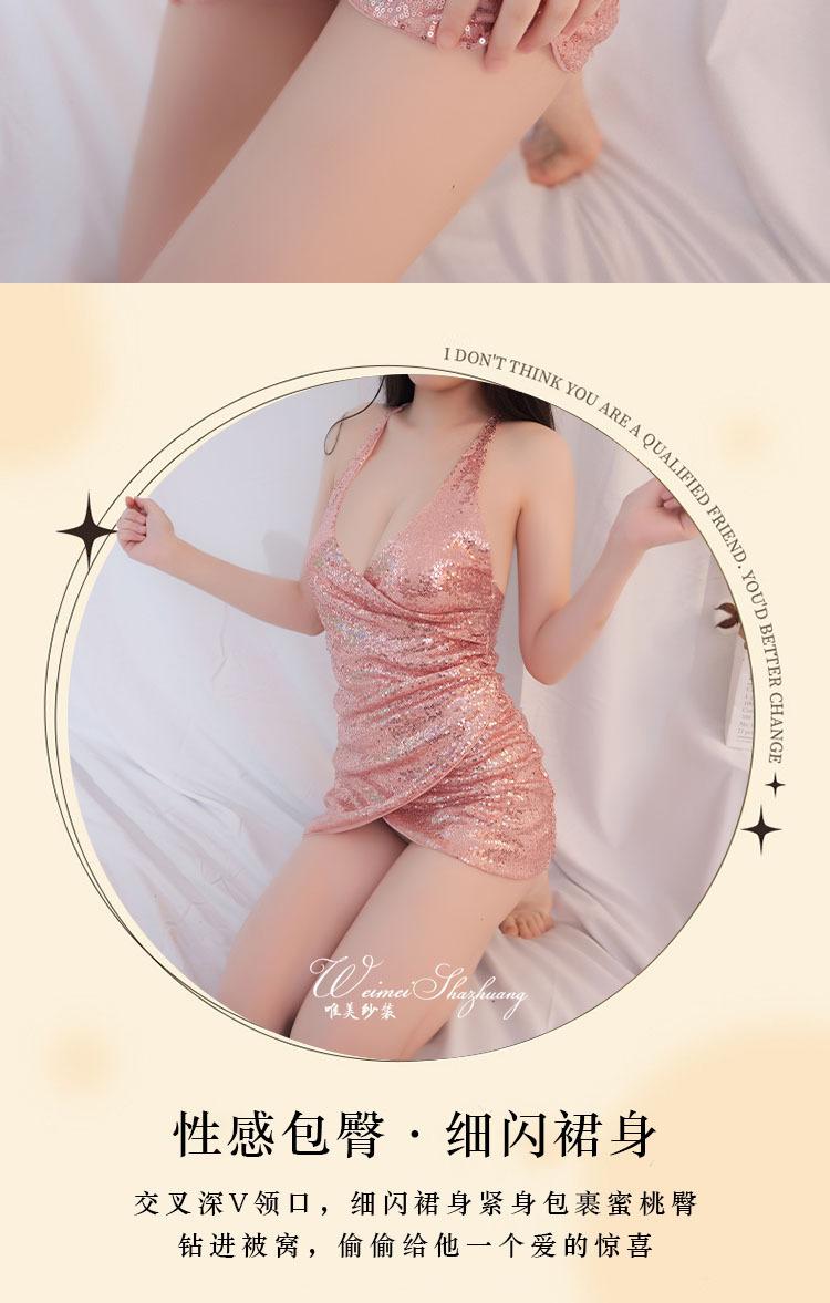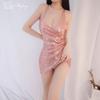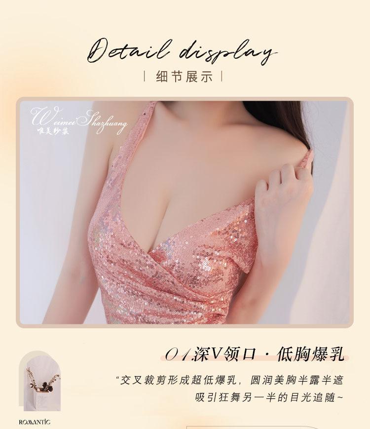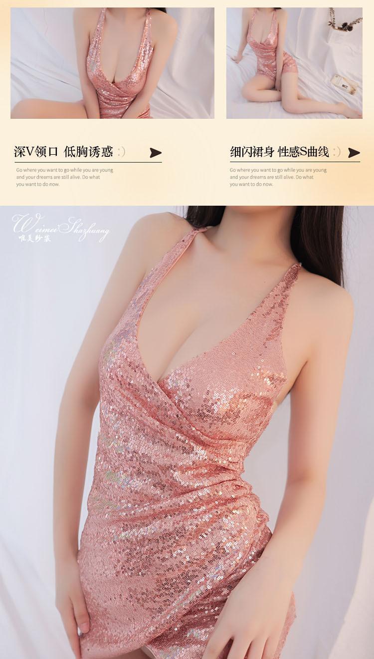 Hermoso hilo nuevo estilo sexy pijama de mujer club nocturno falda de lentejuelas finas falda de cadera profundo V revelando senos tentación lencería sexy