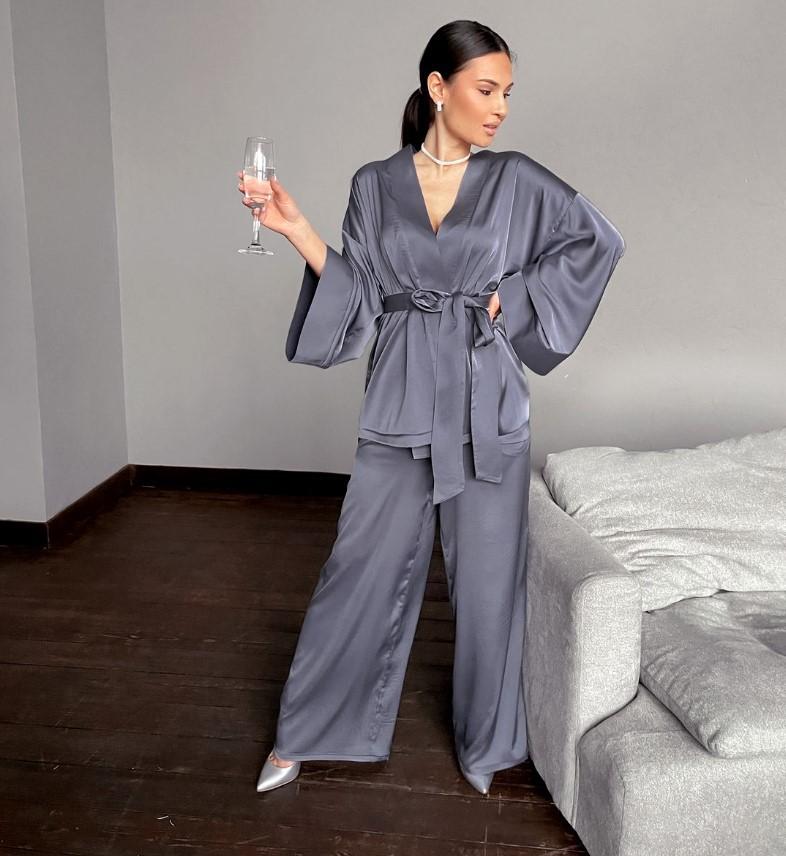 Camisón tipo cárdigan de manga larga de otoño para mujer, traje de pijama holgado con cordones y pantalones para el hogar, comercio exterior europeo y americano, venta al por mayor