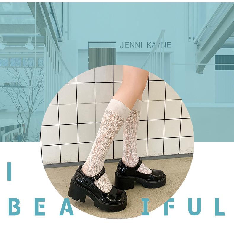 Calcetines con puños JK para mujer, bonitos calcetines hasta la rodilla Mori Lolita, de verano, finos, estilo japonés, bonitos, de color liso, a la moda.