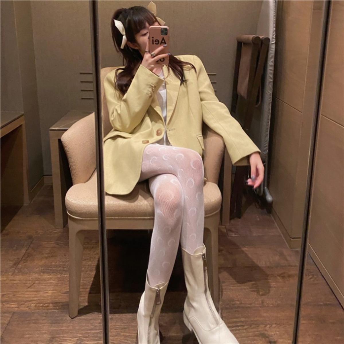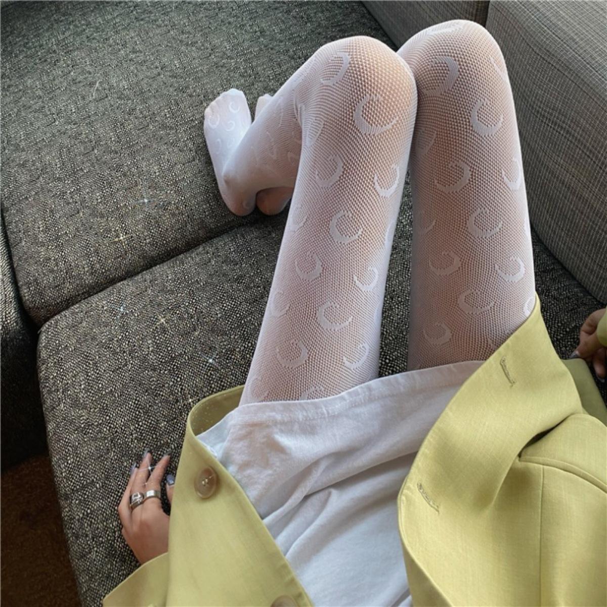 Medias blancas sexys de media luna, medias de red de tentación semitransparentes de alta elasticidad.