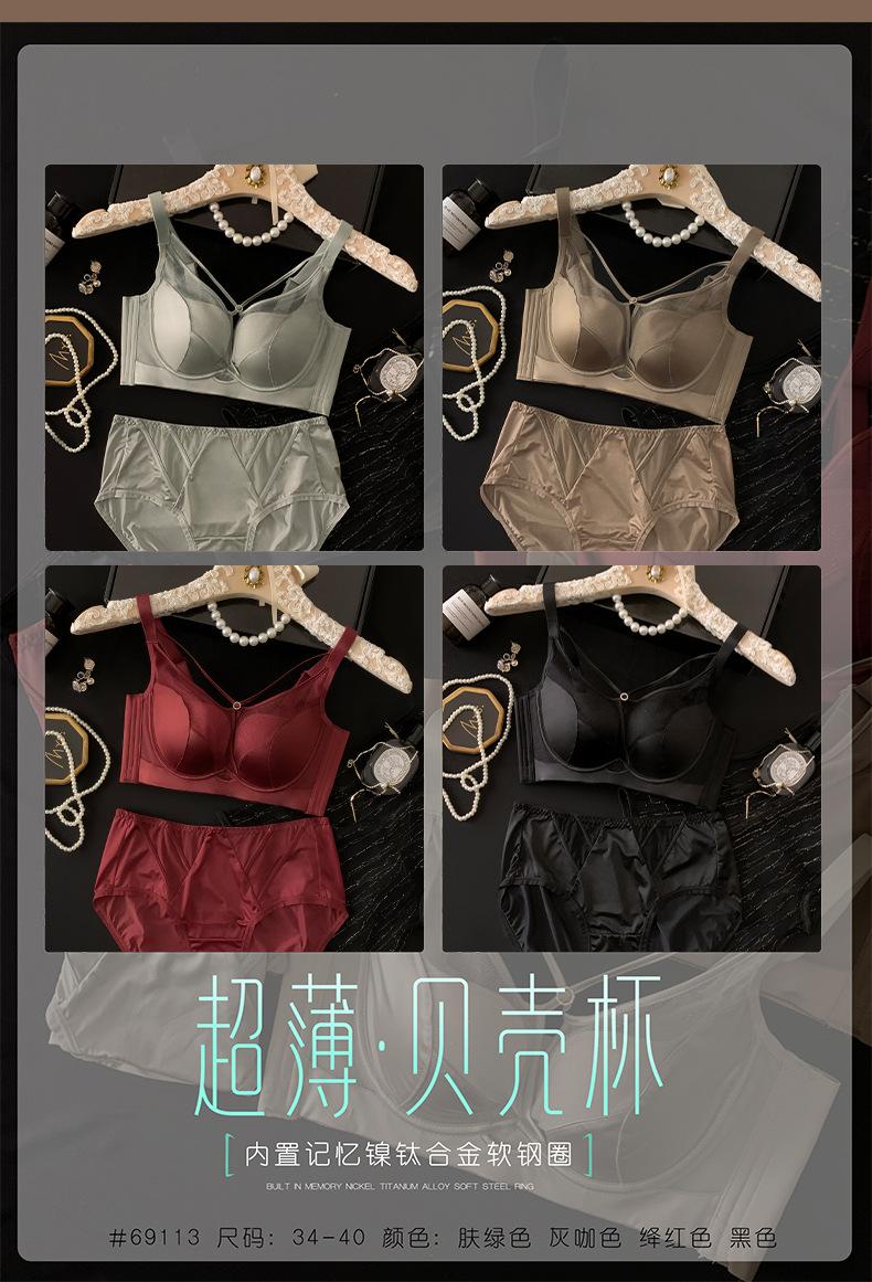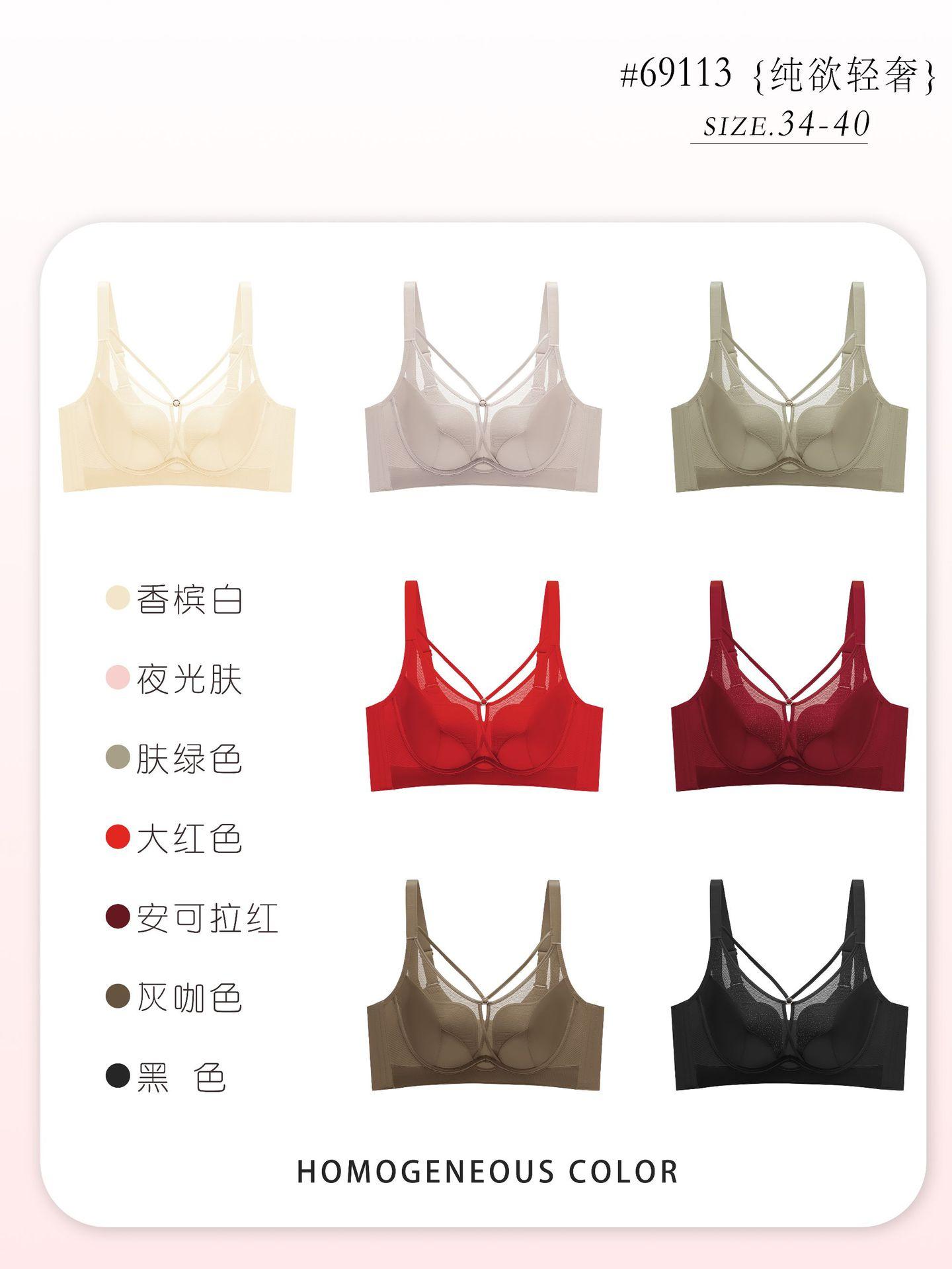 69113 Sujetador push-up de satén ultrafino y transpirable con copa de concha para mujer, con aro de acero suave y ajustable