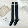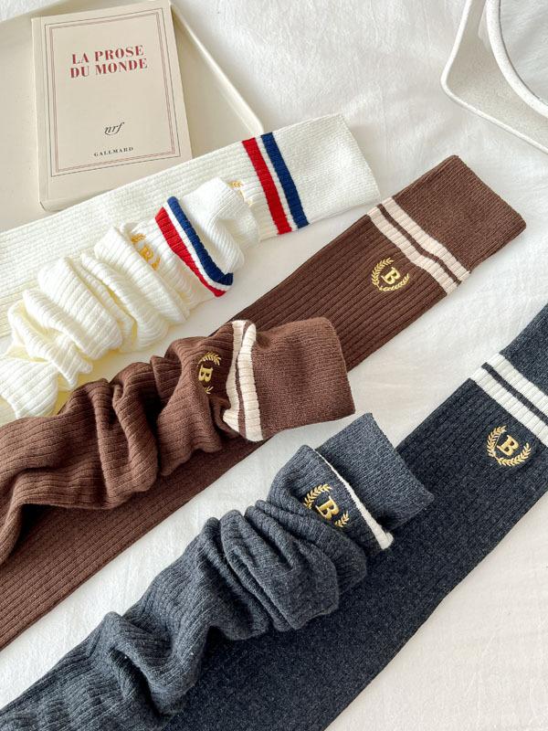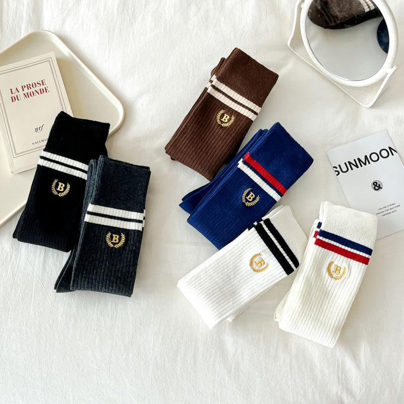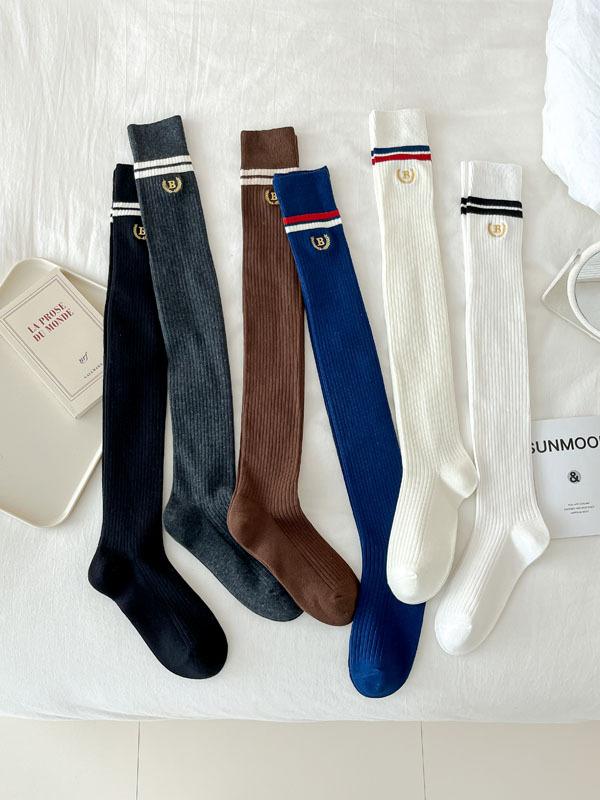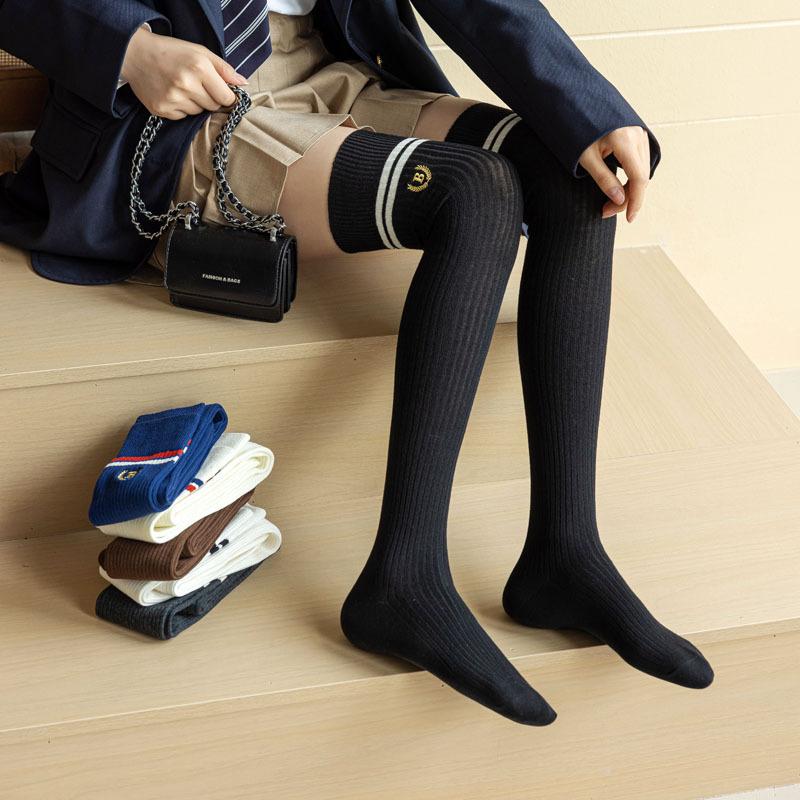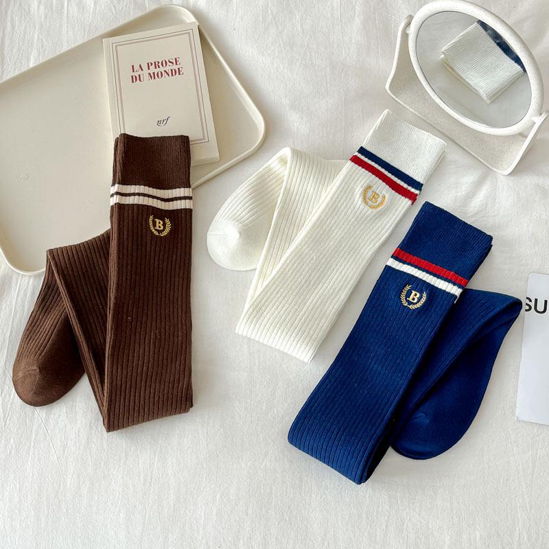 Otoño e Invierno calcetines nuevos Calcetines hasta la rodilla bordados de rayas blancas y negras retro estilo americano para mujer Chica hot Shibuya JK moda universitaria