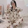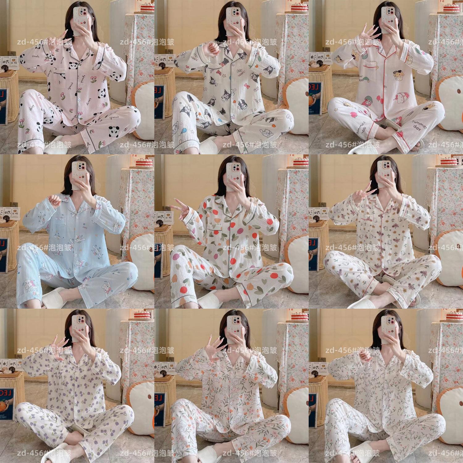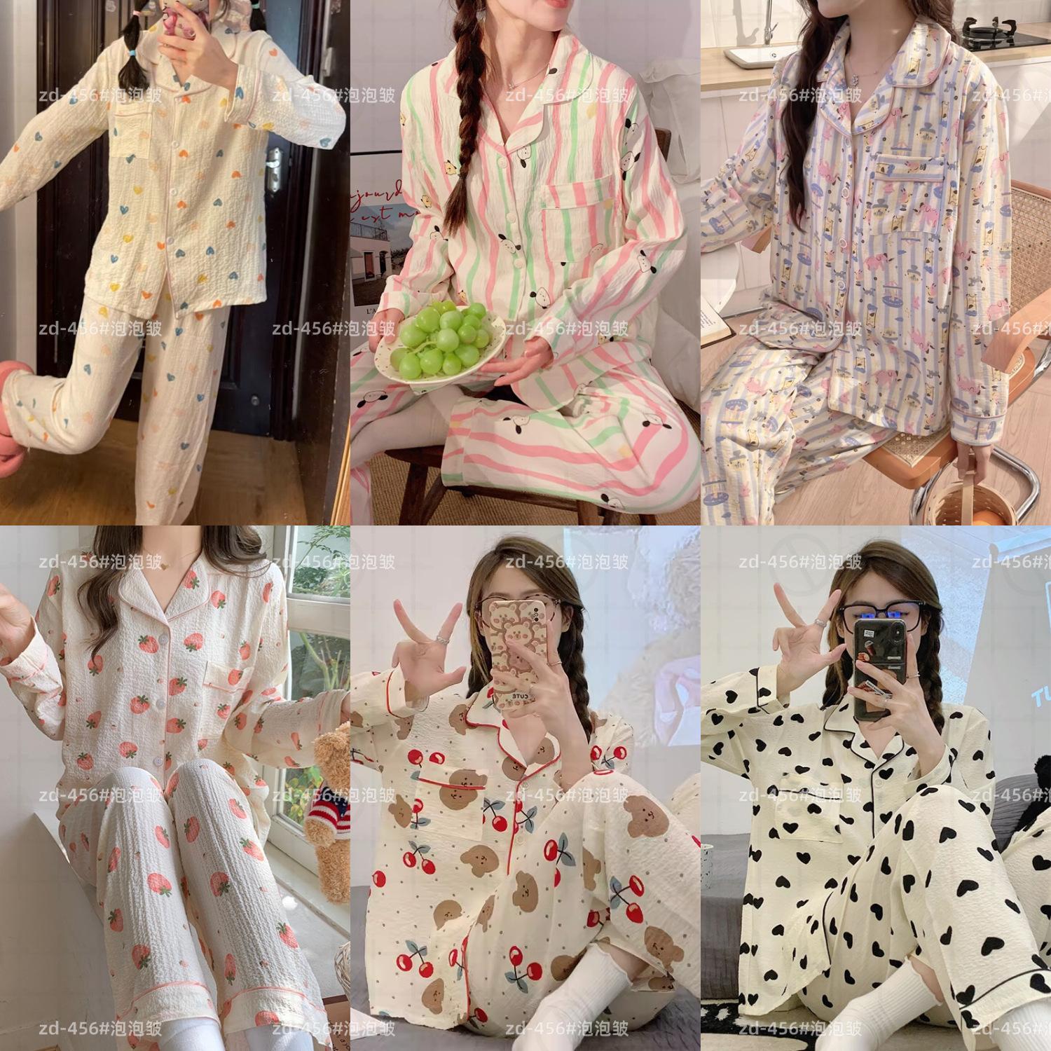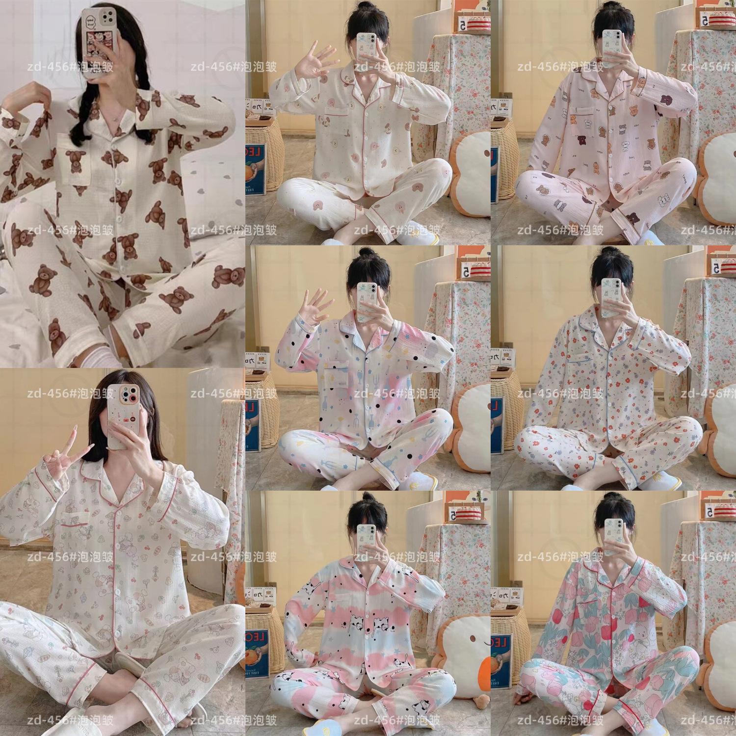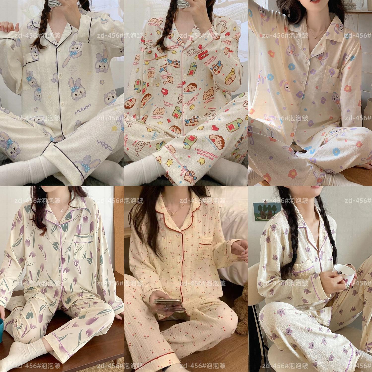Pijamas de mujer de primavera y otoño de algodón tejido de espuma arrugada de manga larga de dibujos animados estilo princesa ropa de abrigo ropa de casa traje interior