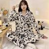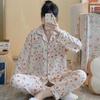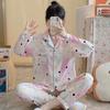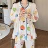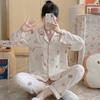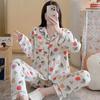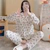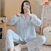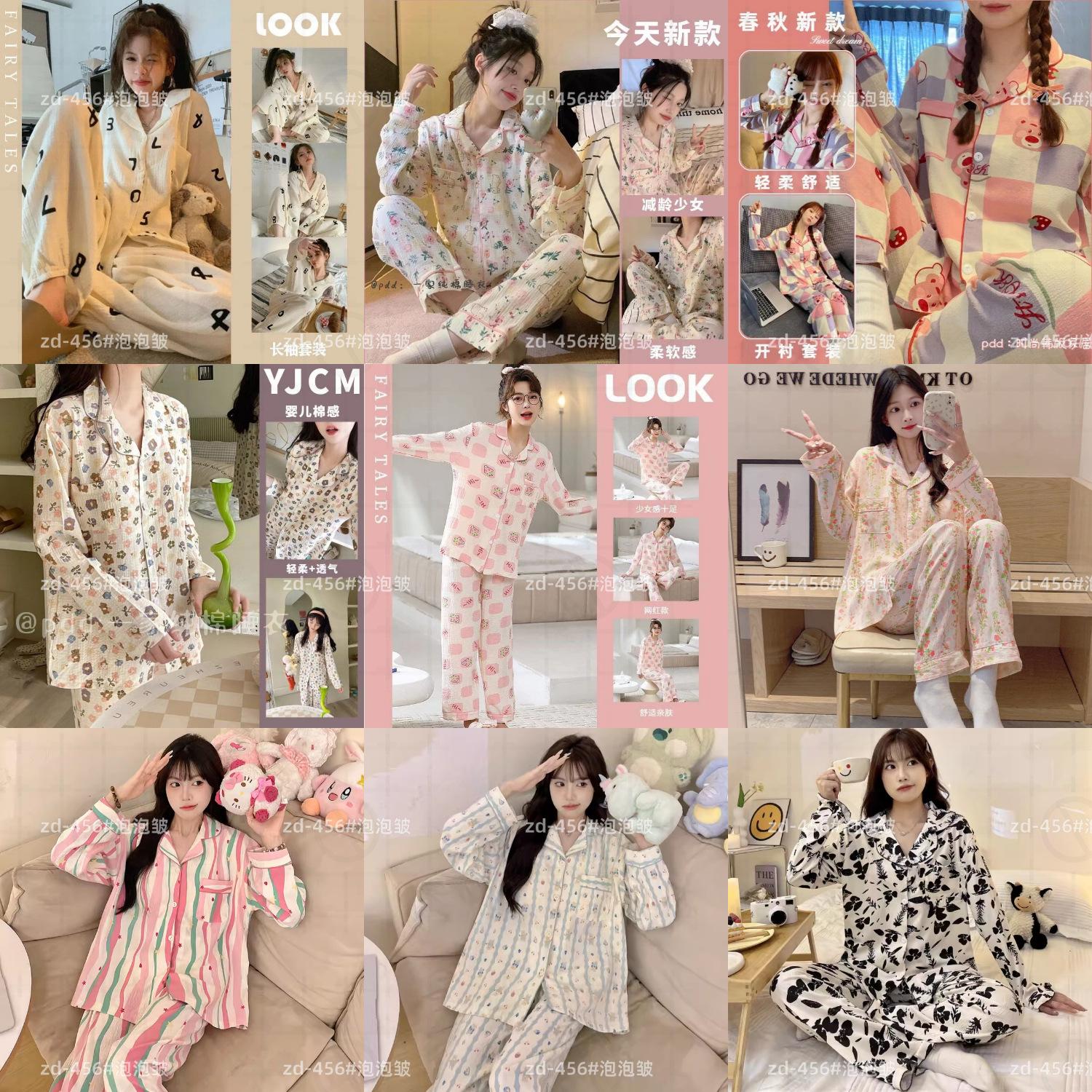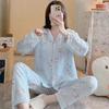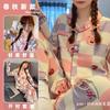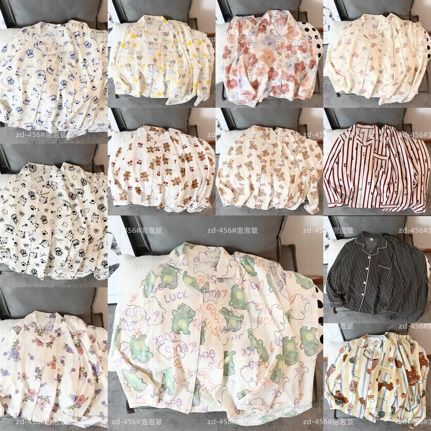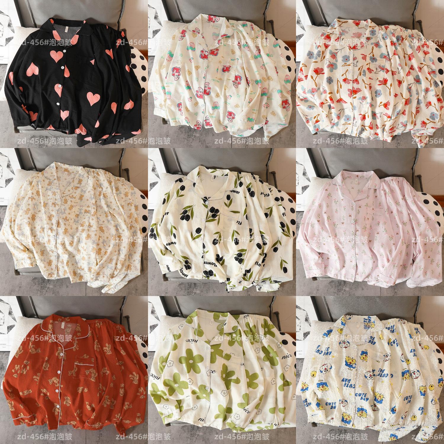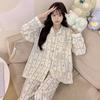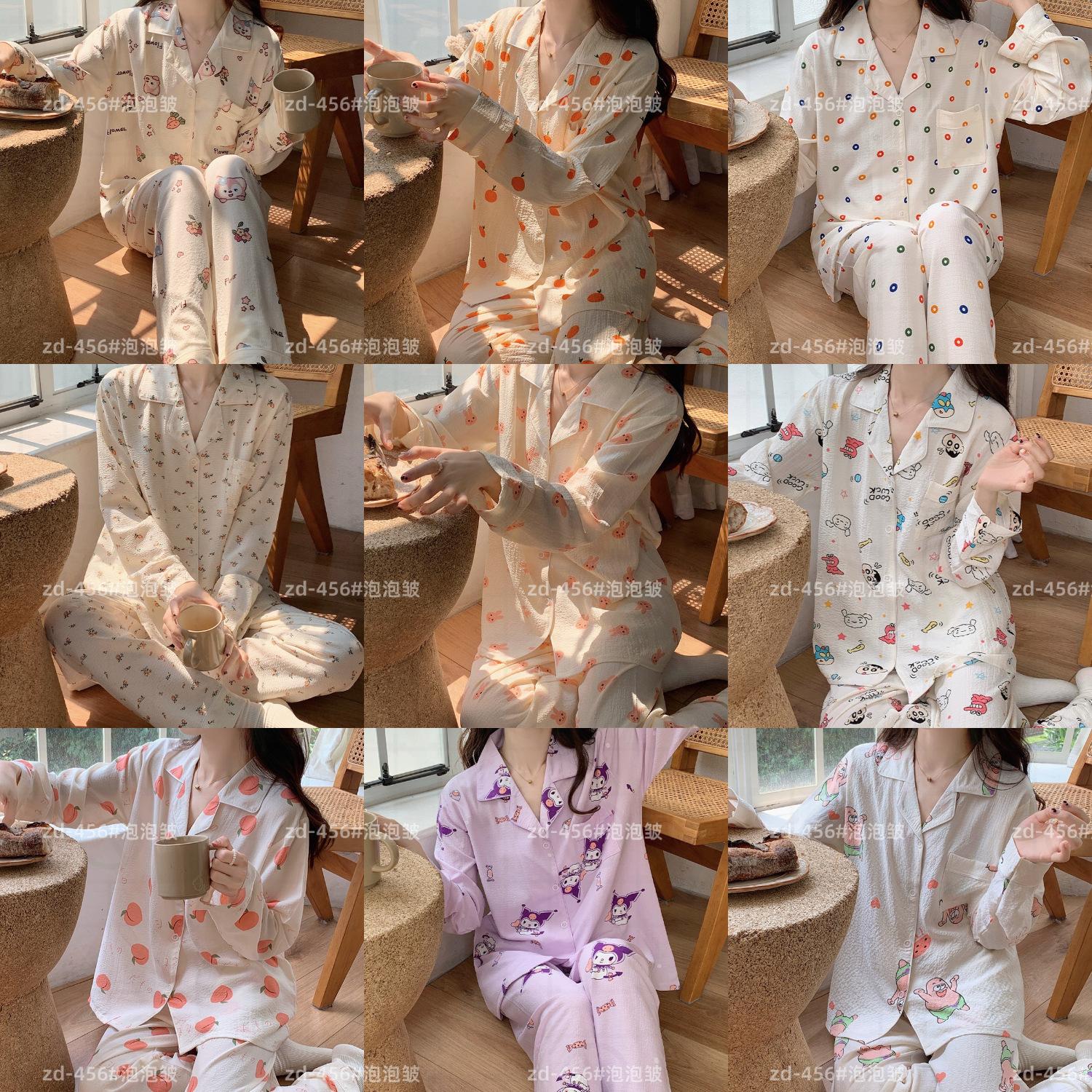 Pijamas de mujer de primavera y otoño de algodón tejido de espuma arrugada de manga larga de dibujos animados estilo princesa ropa de abrigo ropa de casa traje interior