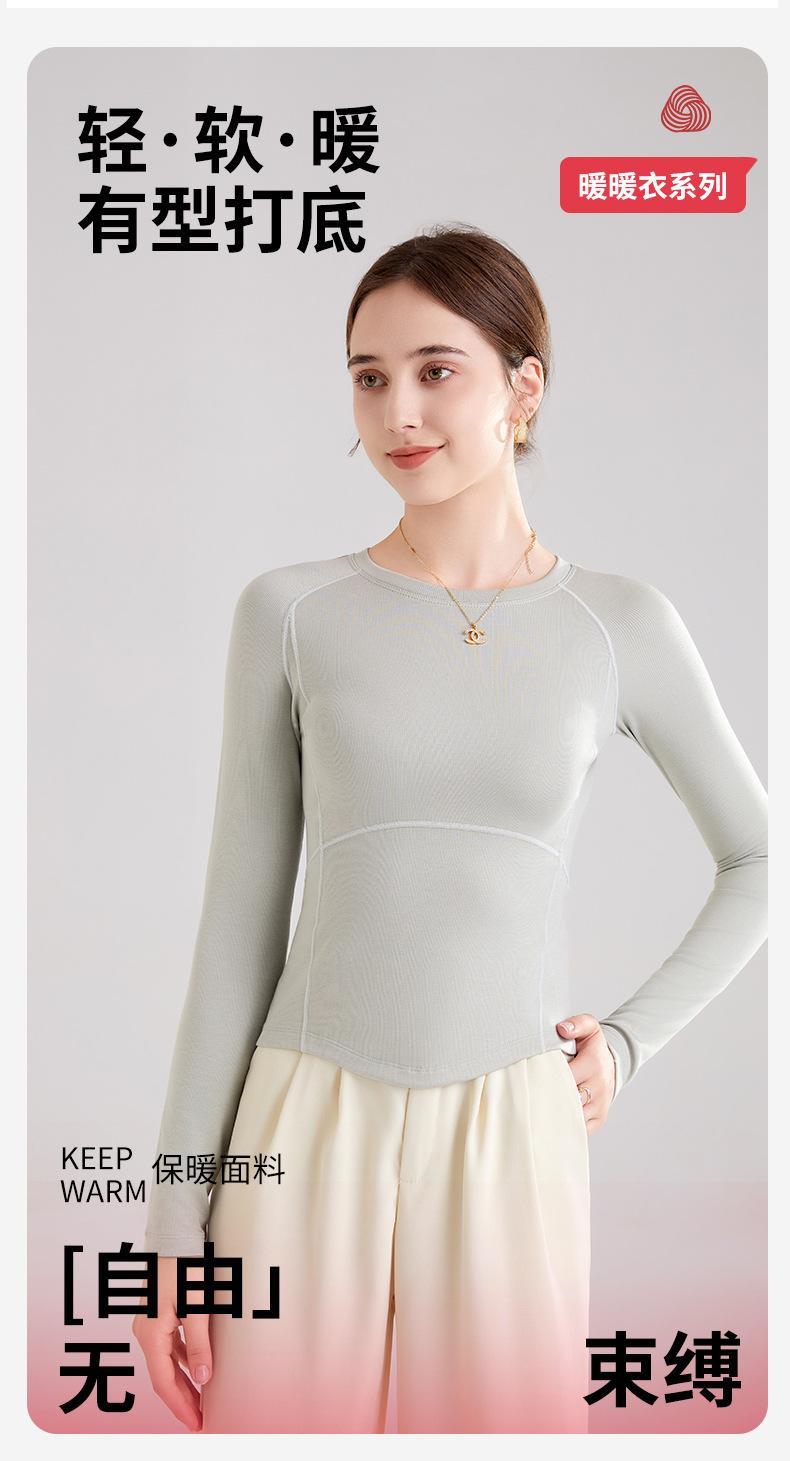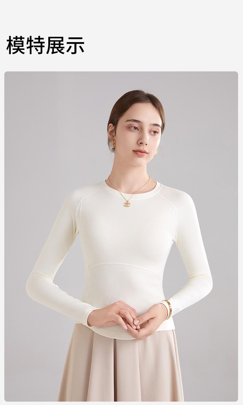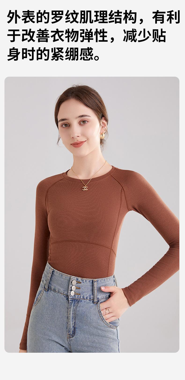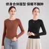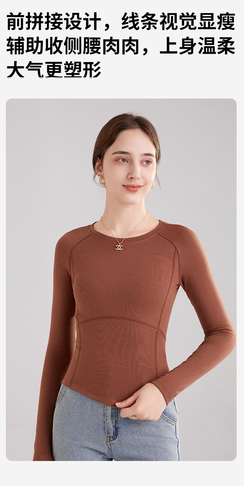 Otoño e Invierno Nuevo Cuello Redondo Costuras Ajustado Camiseta Base Ropa Exterior de Mujer Manga Larga Lana Engrosada con Forro Polar Top de Otoño para Mujer