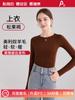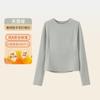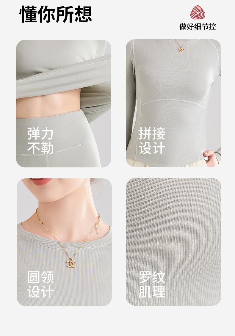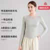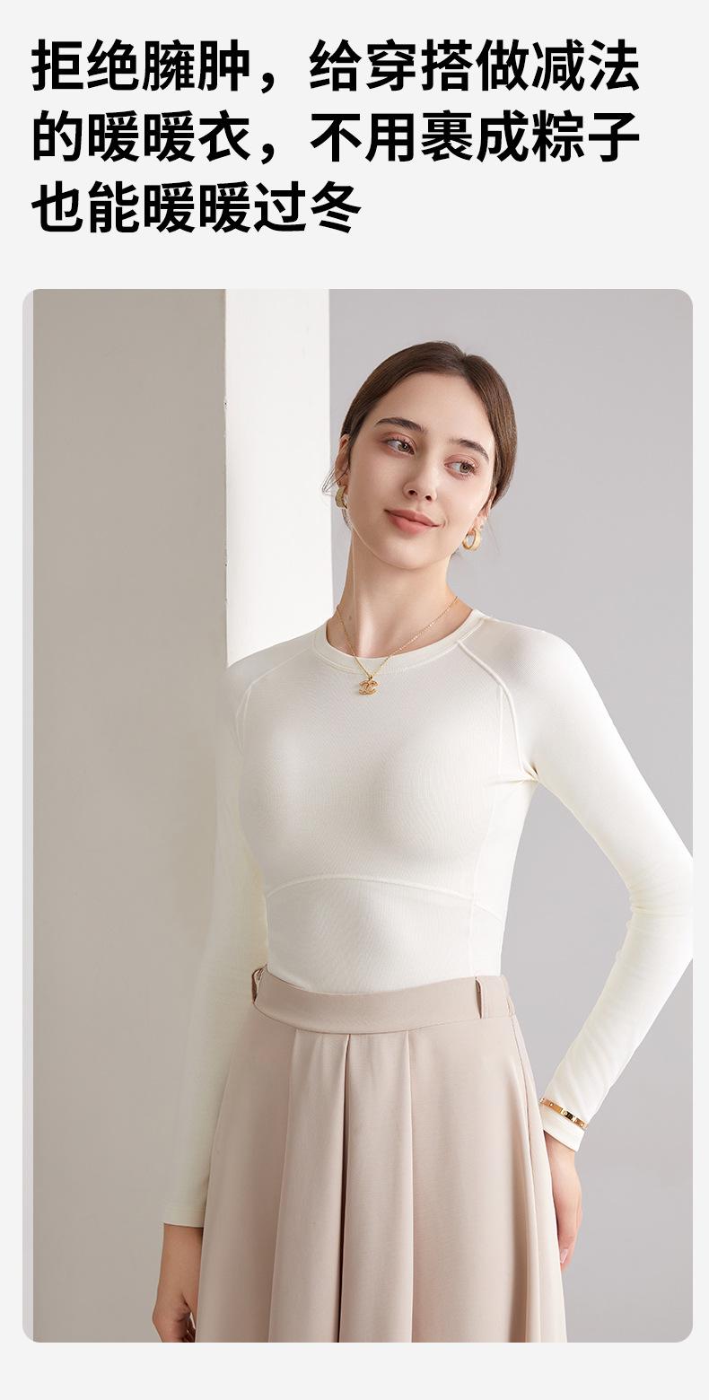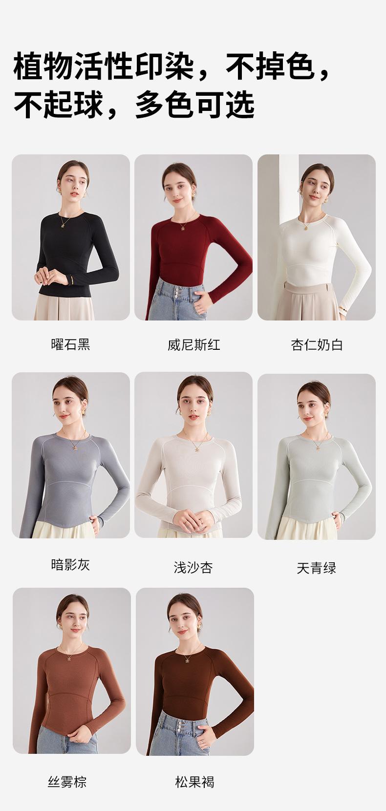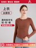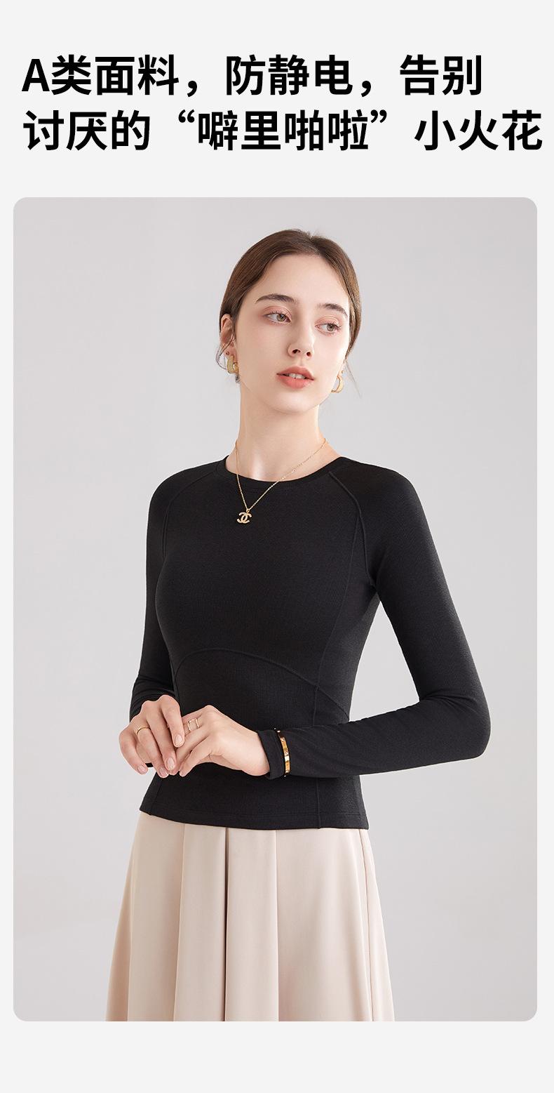 Otoño e Invierno Nuevo Cuello Redondo Costuras Ajustado Camiseta Base Ropa Exterior de Mujer Manga Larga Lana Engrosada con Forro Polar Top de Otoño para Mujer
