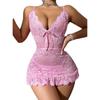 Europa y Estados Unidos comercio exterior transfronterizo vestido sexy encaje perspectiva tentación camisón tanga conjunto de dos piezas Amazon