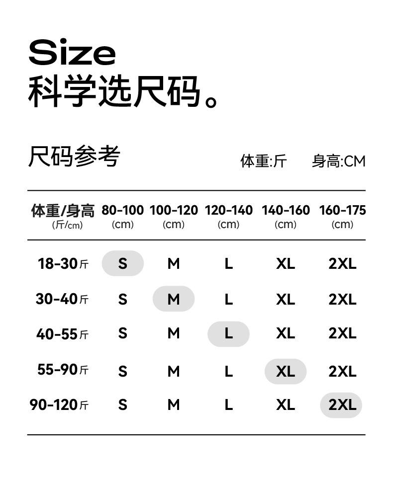 S size recommended 80-100cm, M size recommended 100-120cm, L size recommended 120-140cm, Xl size recommended 1...