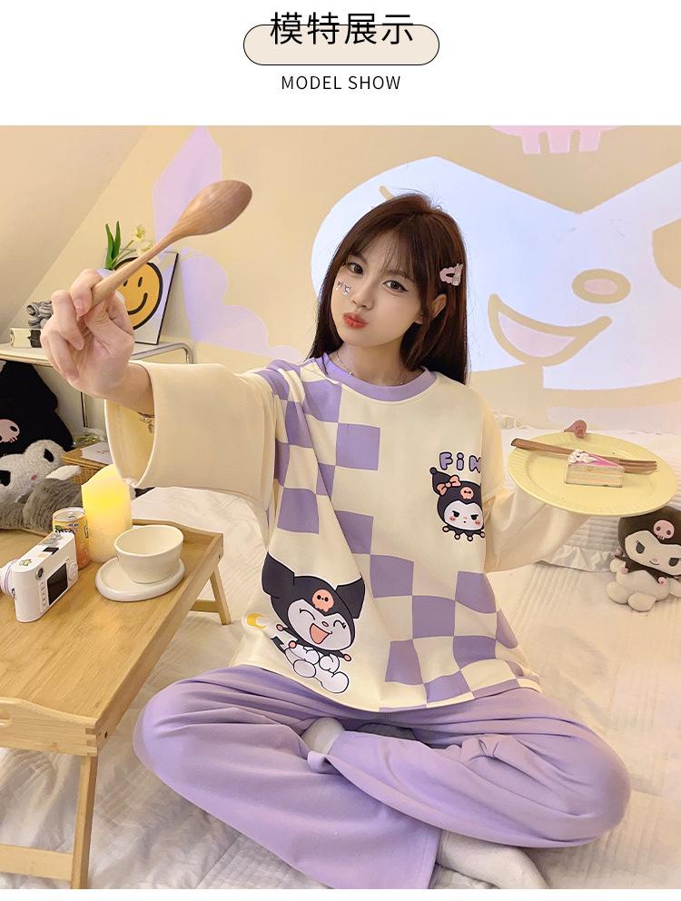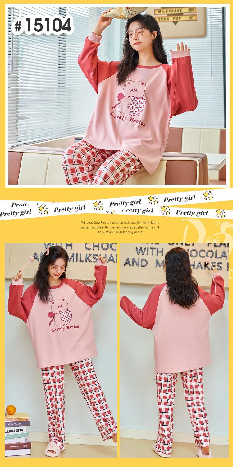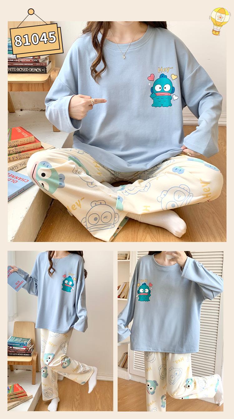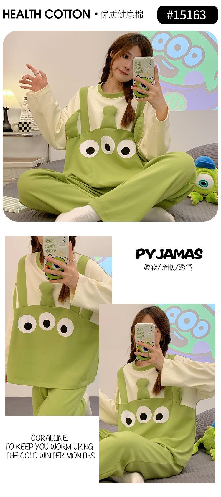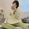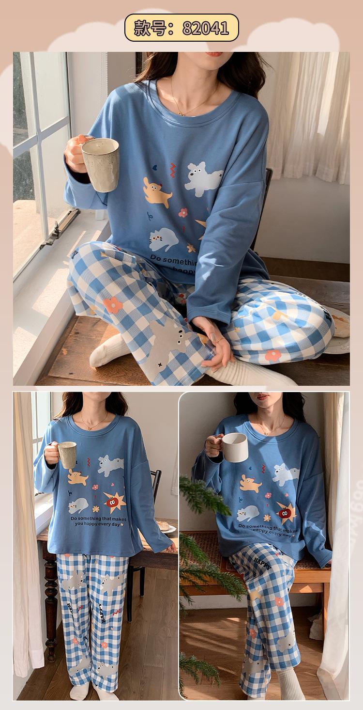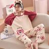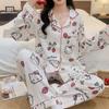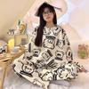 Pijamas de mujer de otoño e invierno de estilo coreano con dibujos animados de manga larga para niñas pequeñas, estudiantes de secundaria, ropa informal bonita para el hogar, prendas de vestir exteriores