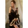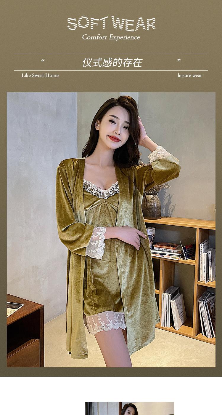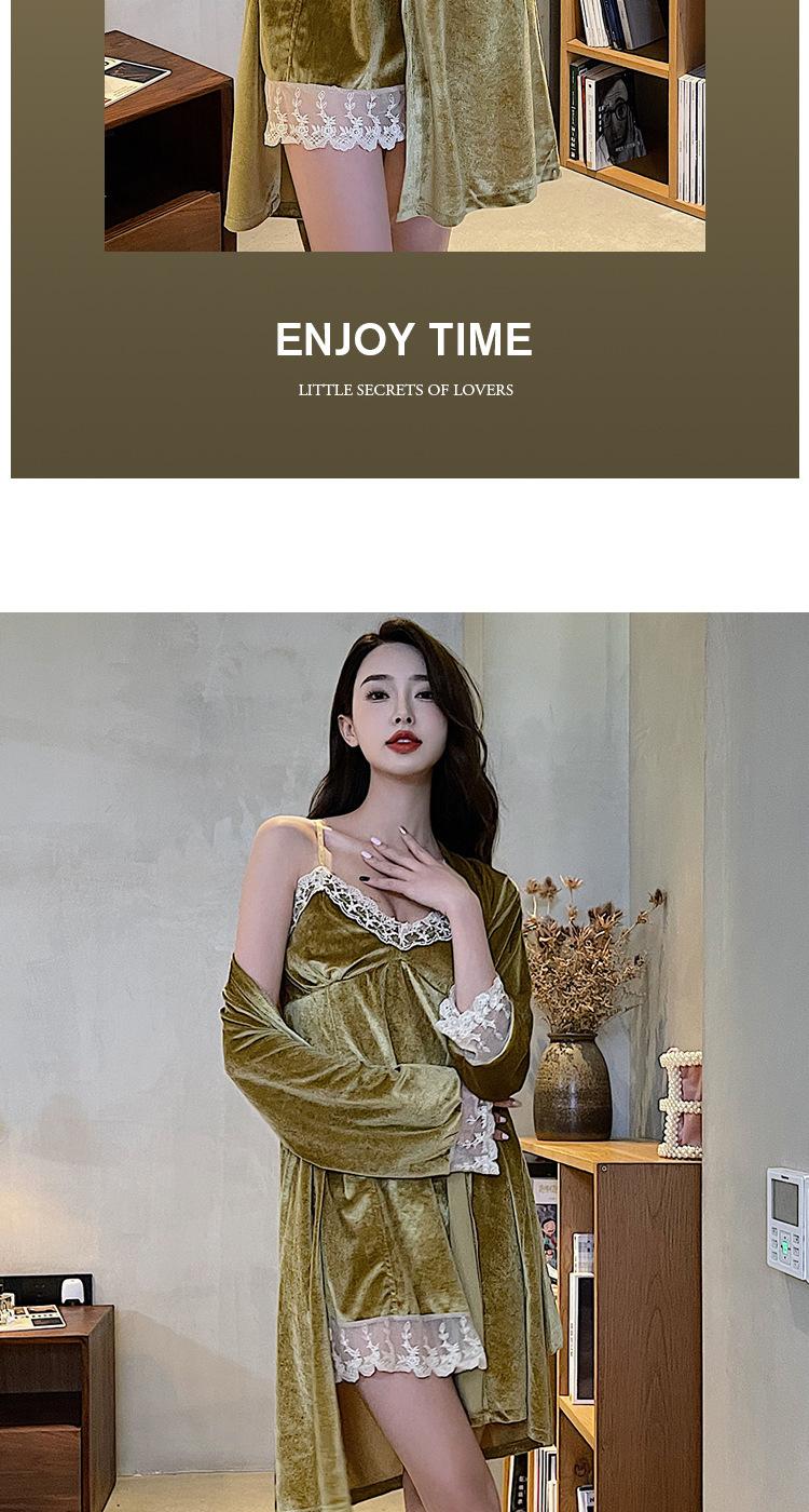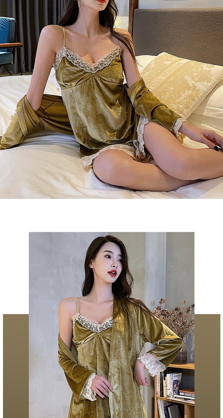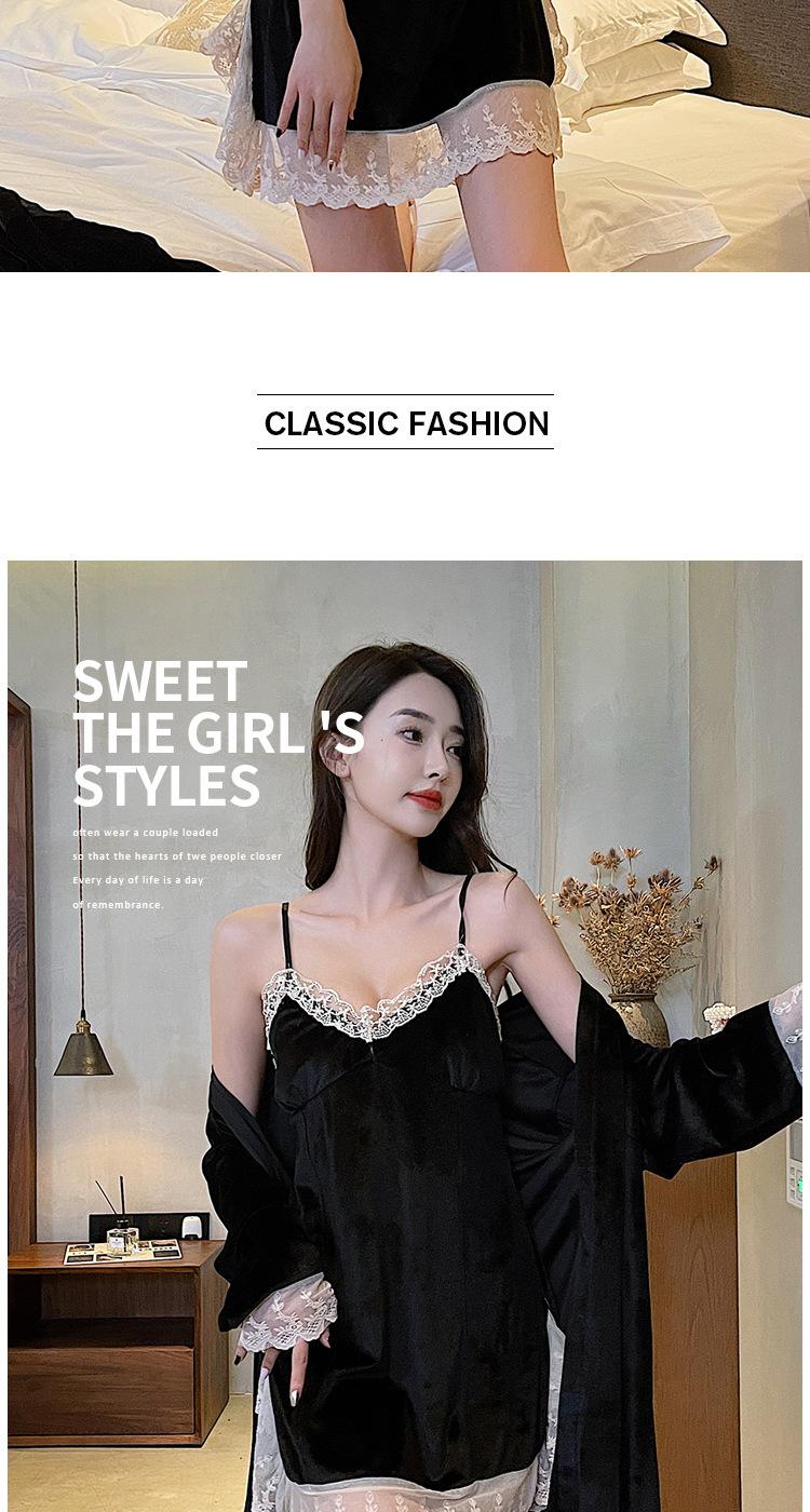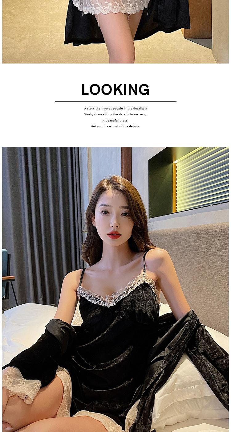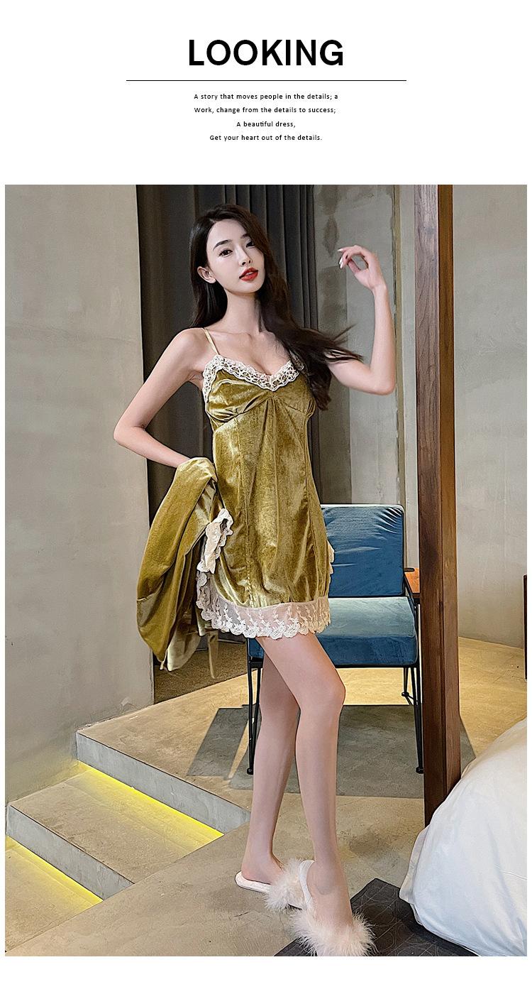 Deseo puro camisón sexy francés de alta gama terciopelo dorado para mujer otoño e invierno para el hogar encaje traje de tirantes foto real mayoreo