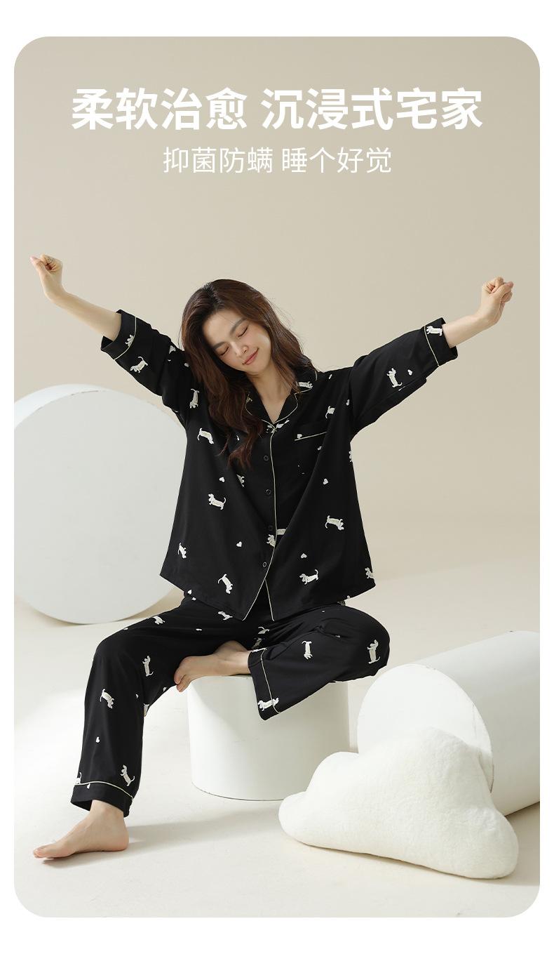 [Algodón antibacterial de Xinjiang] Otoño nuevo pijama de mujer manga larga algodón pijama de caricatura algodón de punto traje de ropa para el hogar