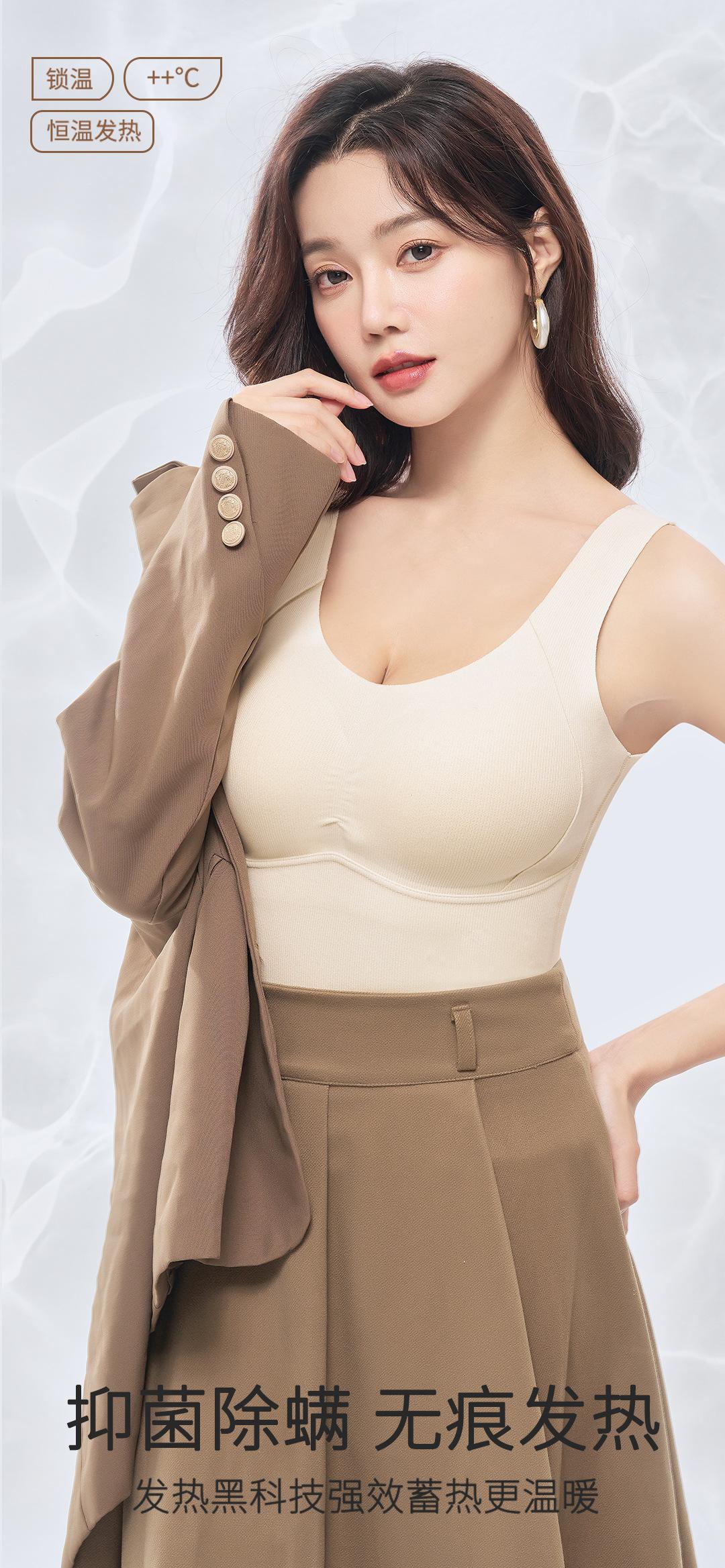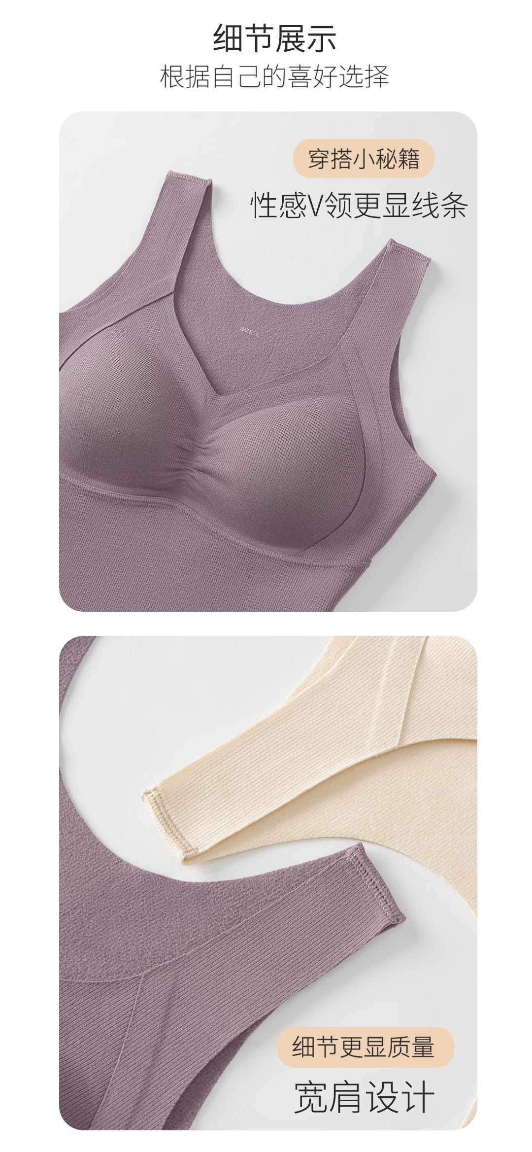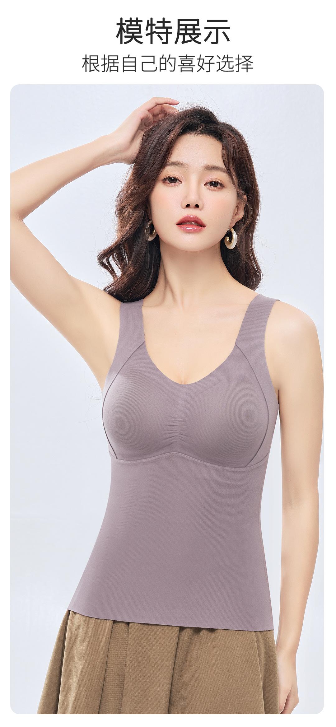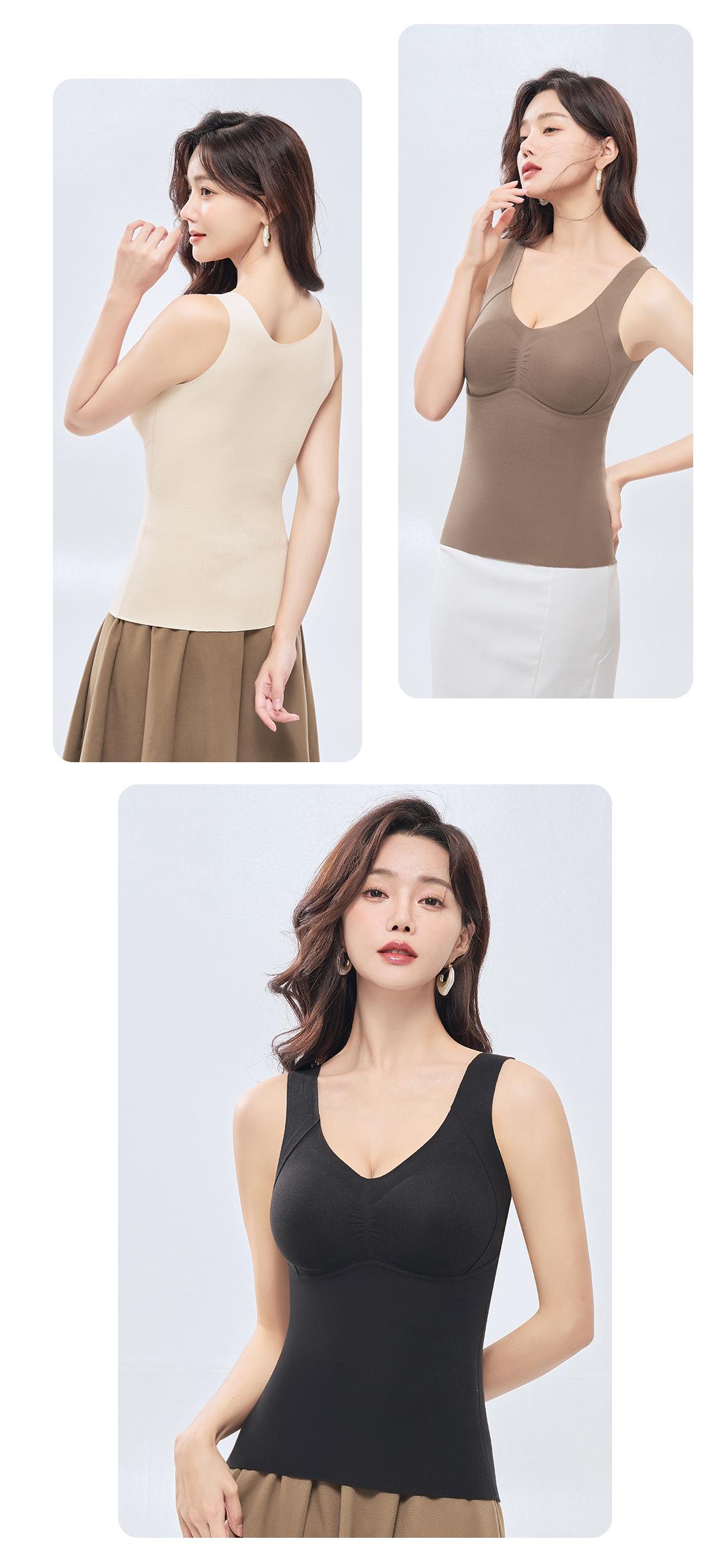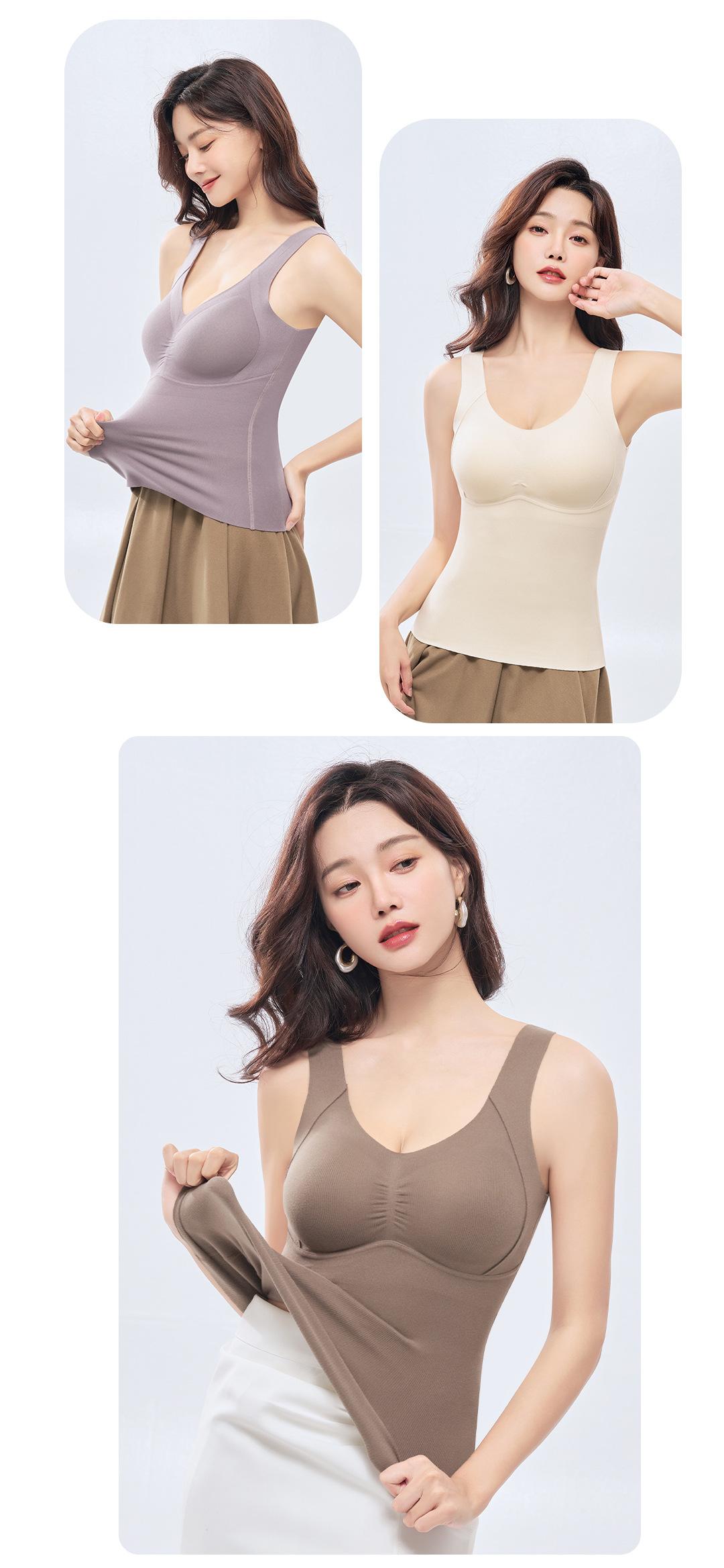Versión coreana 2024 de temperatura constante con almohadilla para el pecho, ropa interior sin costuras con cuello en V, chaleco térmico básico para mujer, forro polar de invierno grueso para mujer