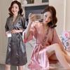 Camisón de encaje de color liso, camisón de manga larga de color liso, bata de baño de seda sintética, bata de baño de primavera y otoño, pijamas para mujer