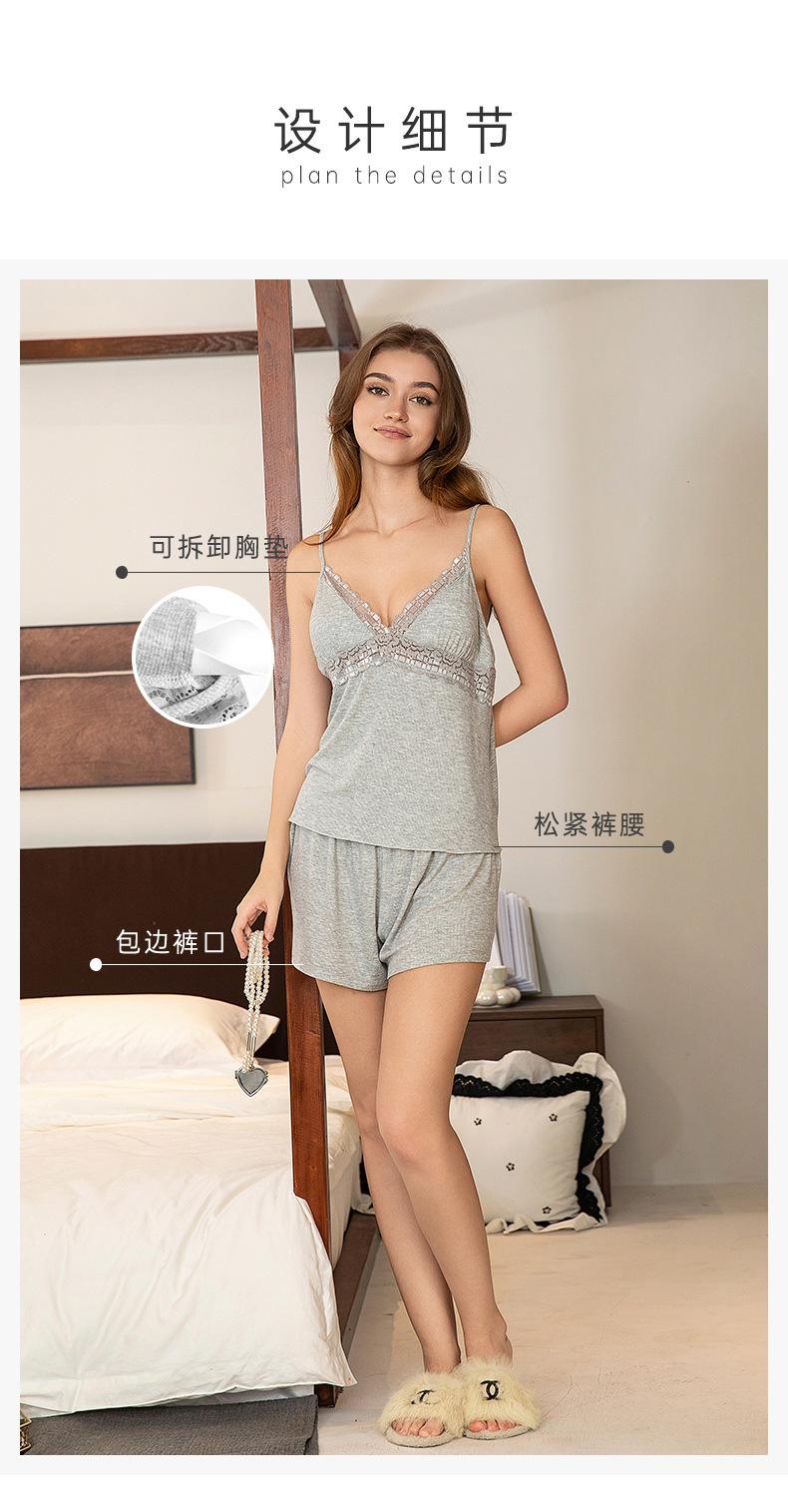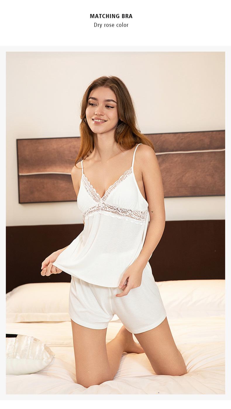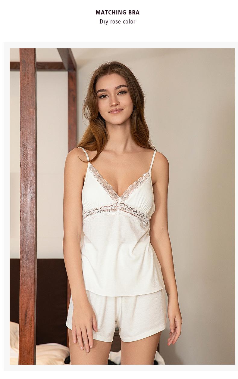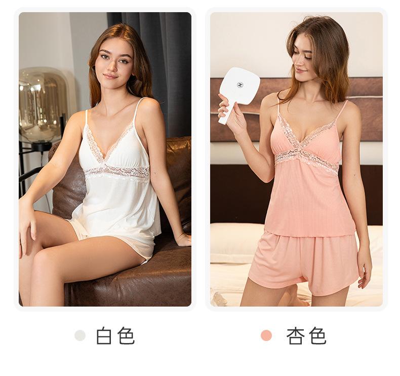 Pijama sexy con almohadillas extraíbles para el pecho, de algodón modal de color sólido transfronterizo, para mujer, estilo europeo y americano, para el hogar