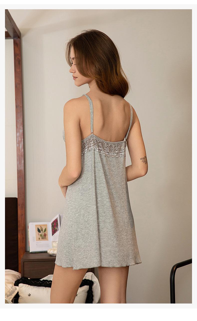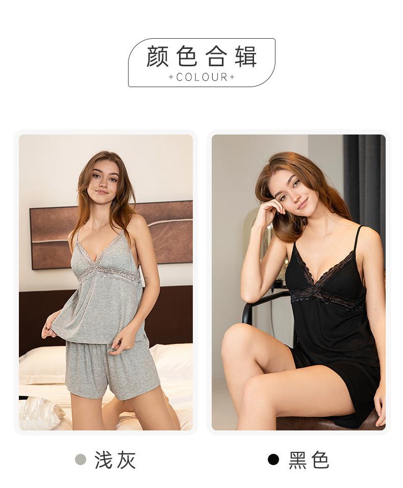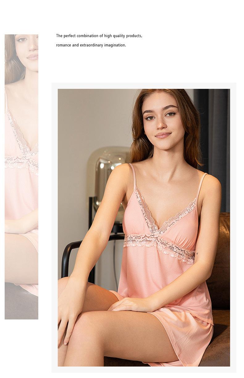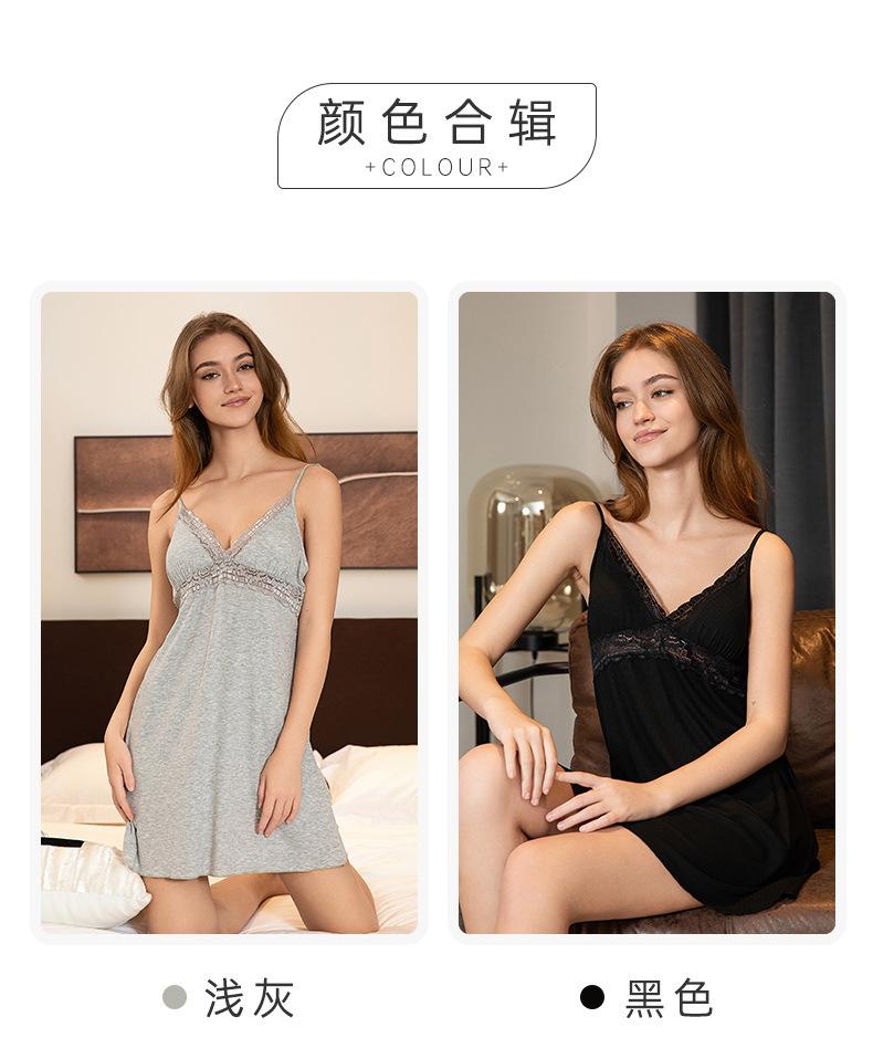 Pijama sexy con almohadillas extraíbles para el pecho, de algodón modal de color sólido transfronterizo, para mujer, estilo europeo y americano, para el hogar
