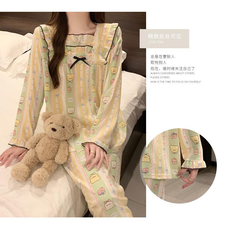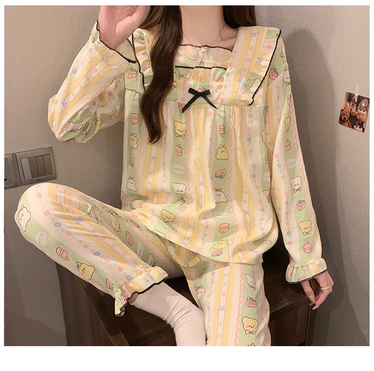 Pijamas nuevos de otoño para mujer, de algodón tejido en forma de nube, de manga larga, estilo princesa dulce, ropa para el hogar.