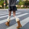 Calcetines hasta la rodilla de cachemira para mujer, otoño e invierno, color sólido, forro polar, gruesos, calcetines altos, estilo japonés, calcetín caqui, lana, cálidos hasta el muslo